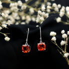 Cushion Cut Created Orange Sapphire Solitaire Drop Earrings