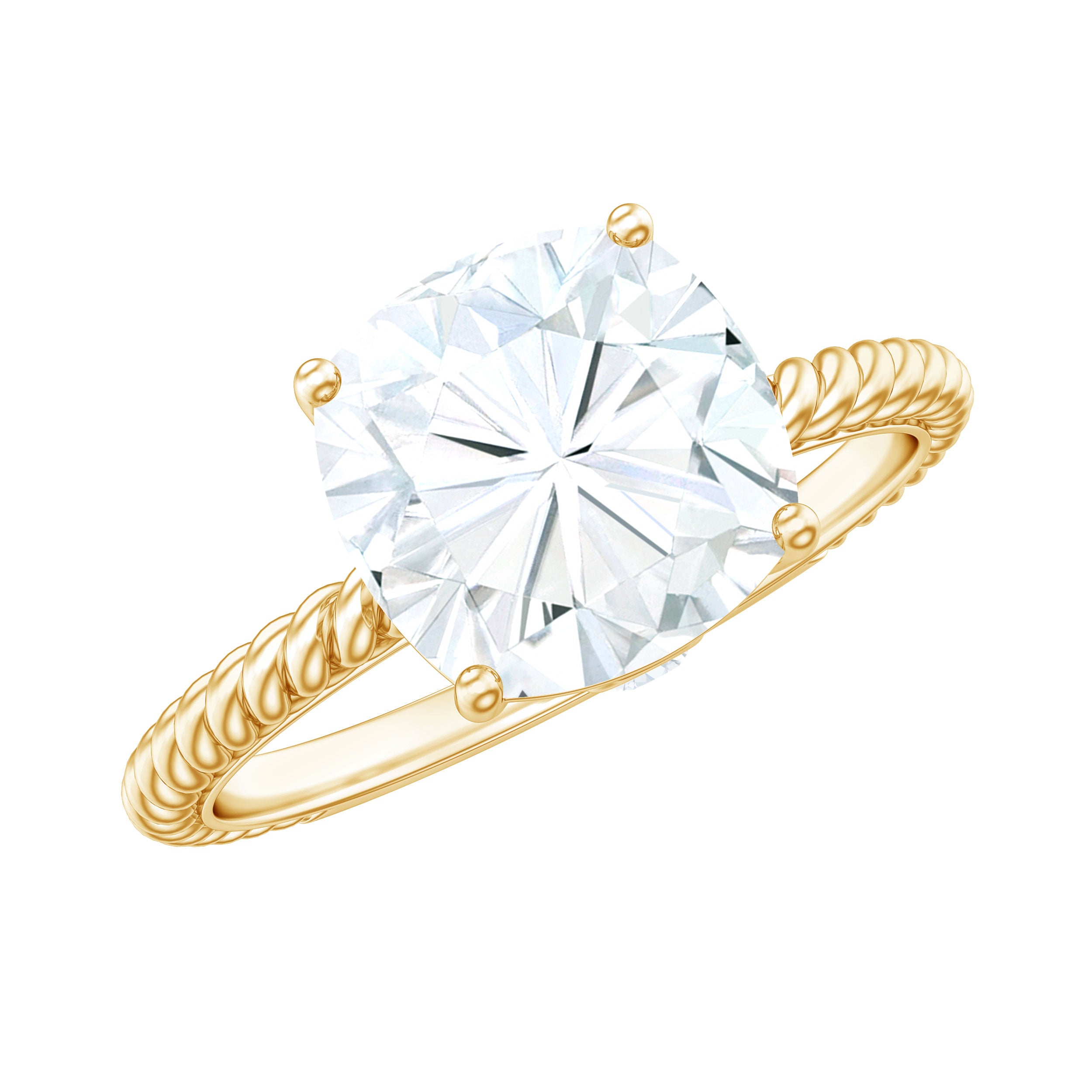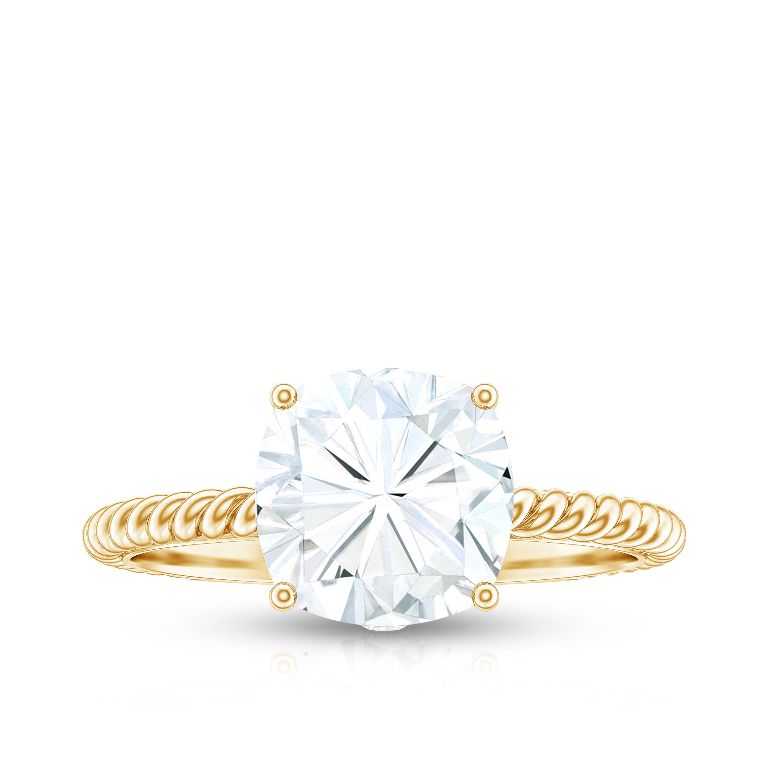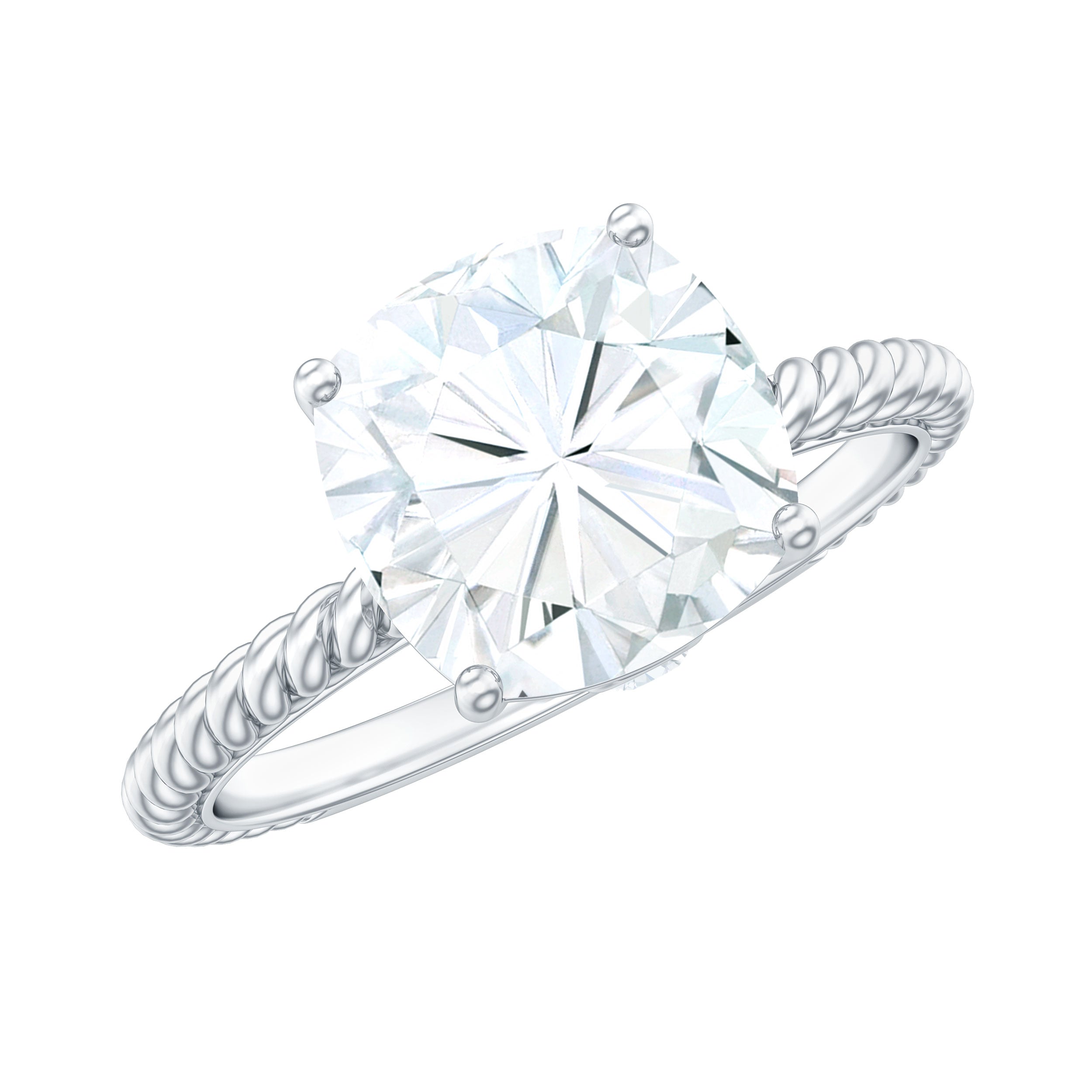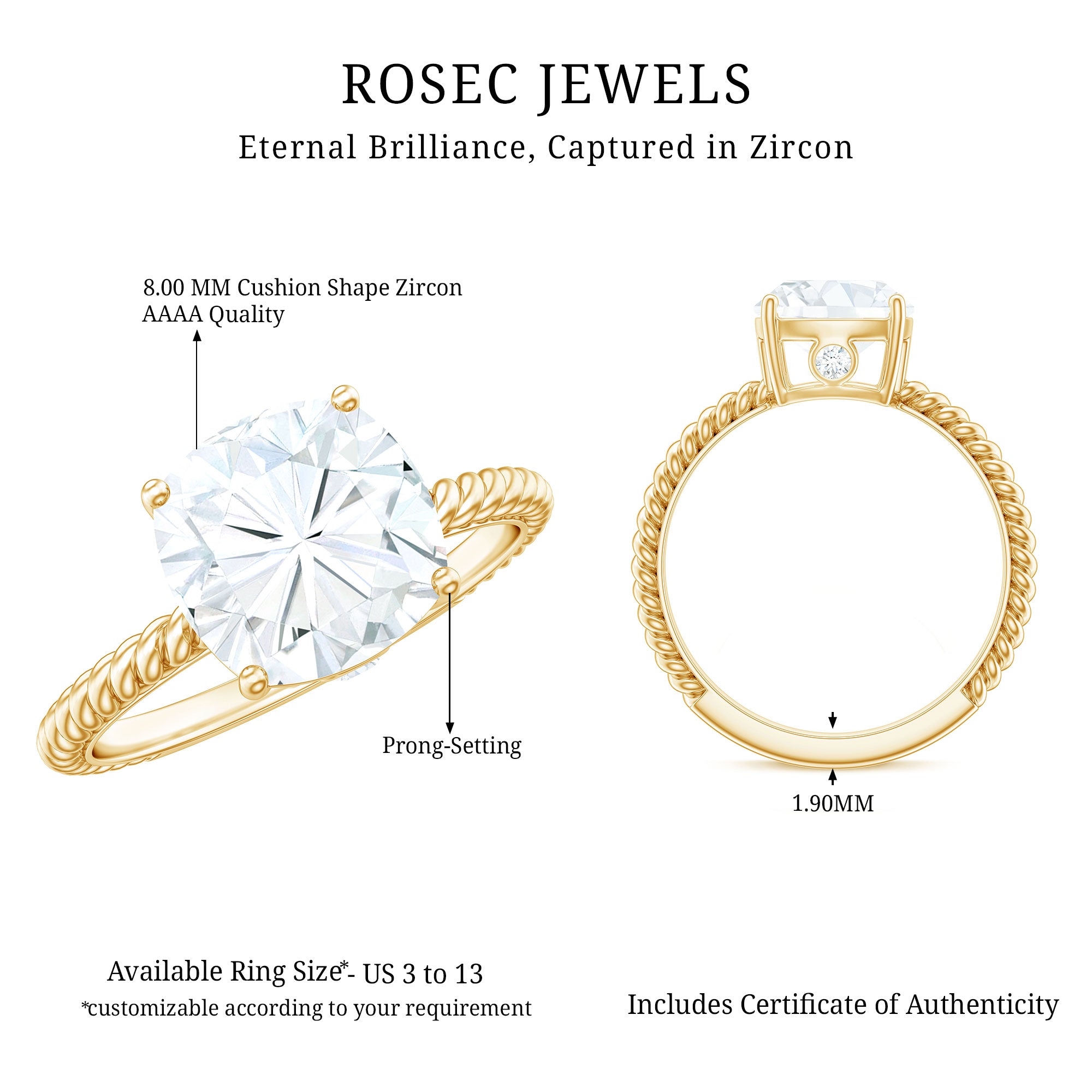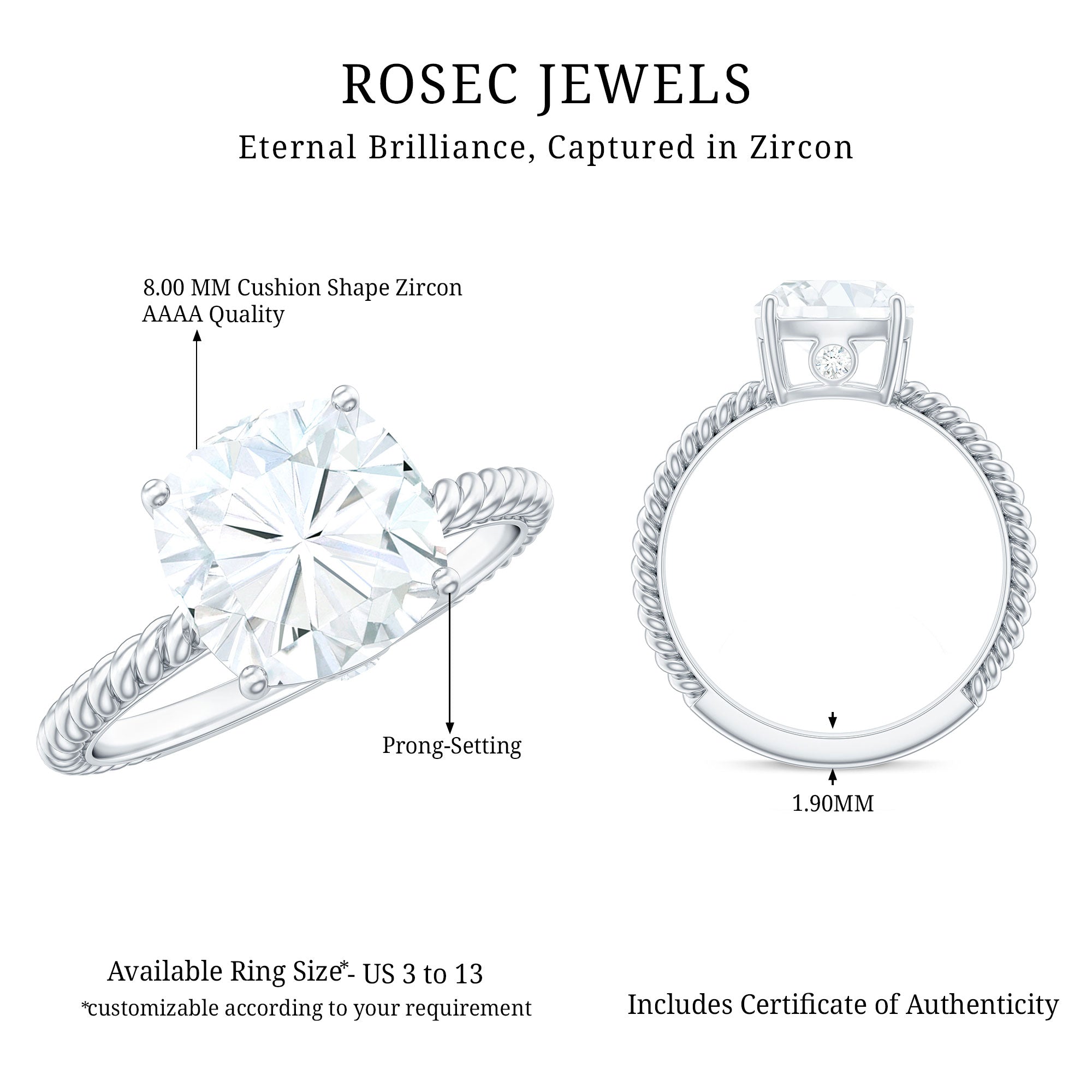 The Solitaire Engagement Ring is adorned with 8 MM Cushion Cut Zircon secured in 4 Prong Setting and twisted rope shank adds a touch of uniqueness. Flaunt the Zircon Ring with your other favorite pieces effortlessly to create unique looks. The Cubic Zirconia Ring makes a precious anniversary gift for your lady love.