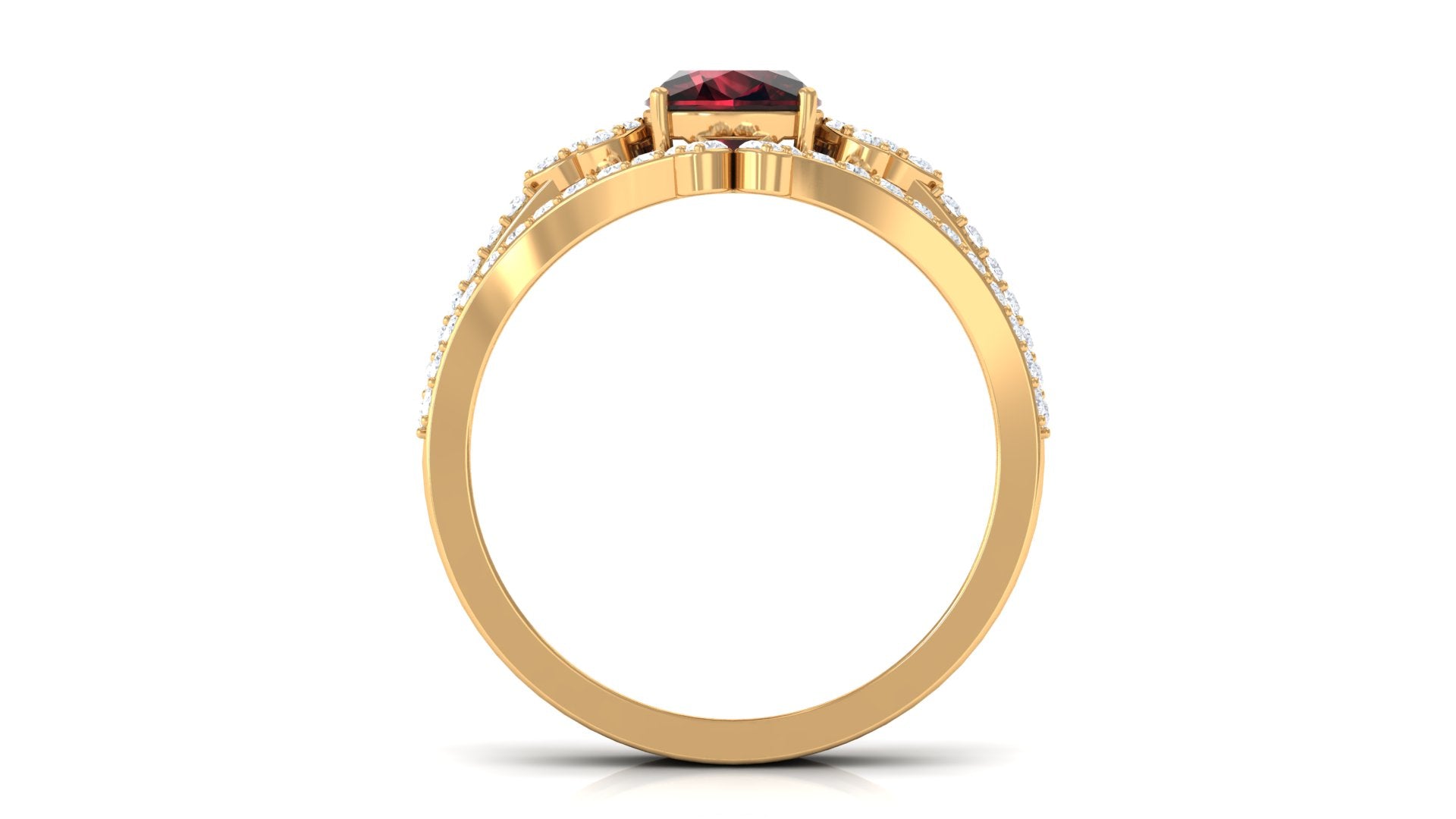 Cushion Cut Garnet and Diamond Designer Wedding Ring Set For Her