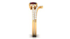 Mark the start of your unique love story with this beautiful Garnet Wedding Ring Set, designed to blend classic charm with modern elegance. This Garnet Bridal Set includes two rings, a stunning engagement ring and a matching wedding band, that come together perfectly to tell your love story. At the heart of the engagement ring is an 8 MM cushion cut garnet, symbolizing passion and devotion. It is held securely in prong setting and flanked by sparkling round diamonds along the band, adding a touch of shine and sophistication. The designer wedding band features a unique curved design, carefully set with round diamonds that beautifully complement the engagement ring. Together, the two rings create a timeless look that feels both elegant and meaningful. Crafted with comfort and care, each ring fits smoothly on the finger, making it ideal for everyday wear. Whether worn together or separately, this Garnet and Diamond Bridal Set is a timeless reminder of love and connection. Presented in a beautiful jewelry box, this Designer Engagement Ring Set makes a heartfelt gift for your engagement, anniversary, or any moment worth cherishing forever.