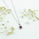 Surprise someone special with a gift that is both chic and classic with this gorgeous Garnet Pendant. The cushion cut garnet gemstone is elegantly set in 4 prong setting and surrounded by a halo of sparkling round shape Moissanite stones, all crafted in a stunning metal. This Cushion Cut Necklace is the epitome of sophistication and style, and is sure to become a cherished keepsake. Designed to rest effortlessly along the neckline, it hangs from a finely crafted matching chain, making it ideal for everyday wear or special occasions. Whether marking a birthday, anniversary, or meaningful milestone, this Halo Necklace serves as a heartfelt reminder of memories, devotion, and unbreakable bonds. If you want to show your affection, this Garnet and Moissanite Necklace is the perfect choice. So why wait? Make someones day by giving them this adorable garnet pendant today!
