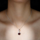 Cushion Cut Garnet Solitaire Pendant with Diamond Twisted Bail