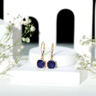 Cushion Cut Lab Grown Blue Sapphire Drop Hoop Earrings