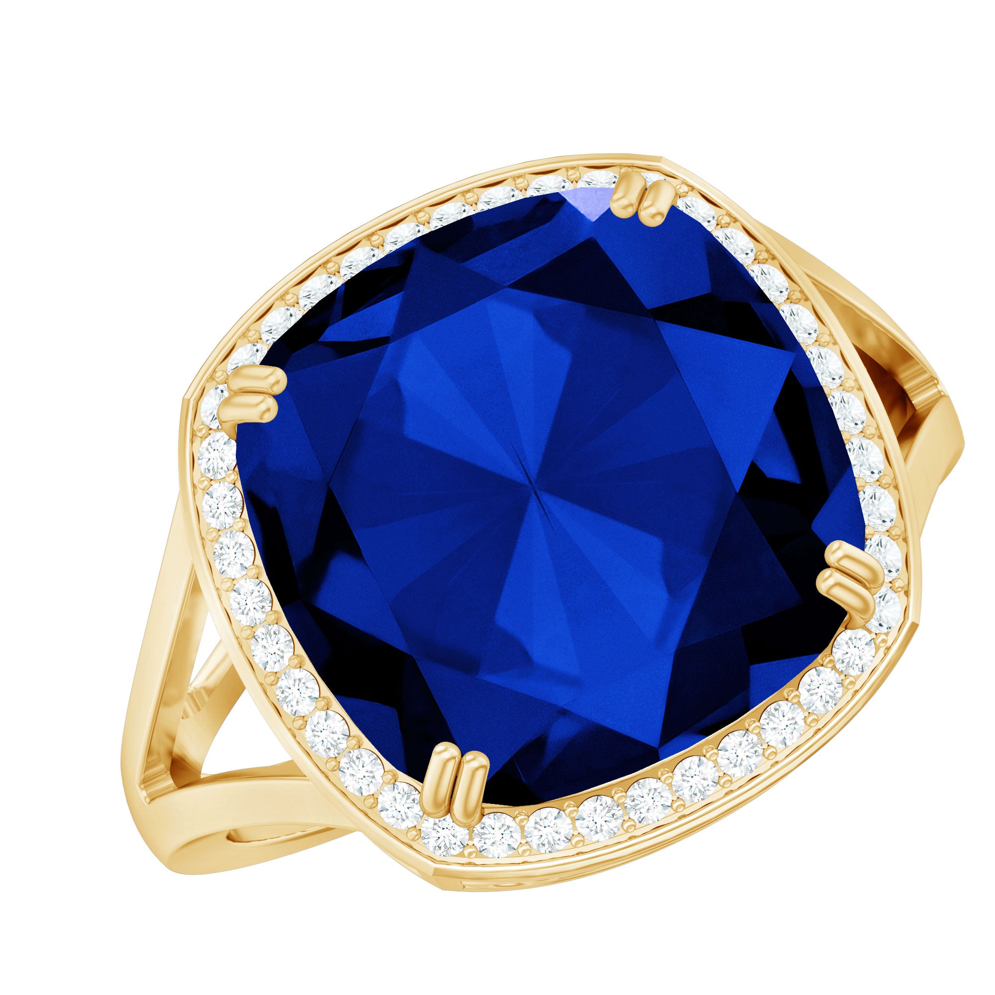 Grab our Engagement Ring encased with Cushion Cut Lab Grown Blue Sapphire shine in the center secured by Double Prong Setting while Round Diamond studded as Halo. You can style this Lab Grown Sapphire Ring with your favorite outfits to stand out from the crowd.