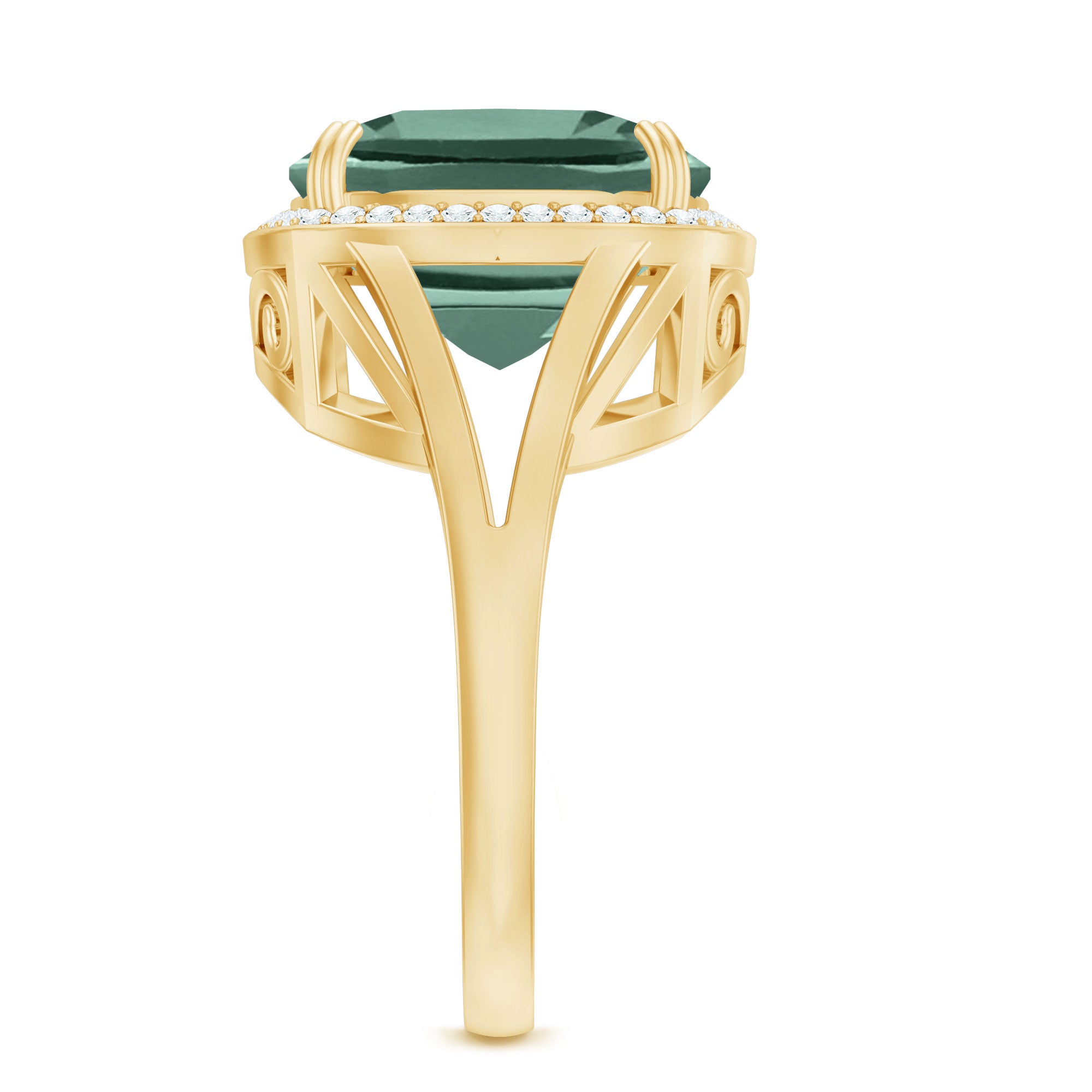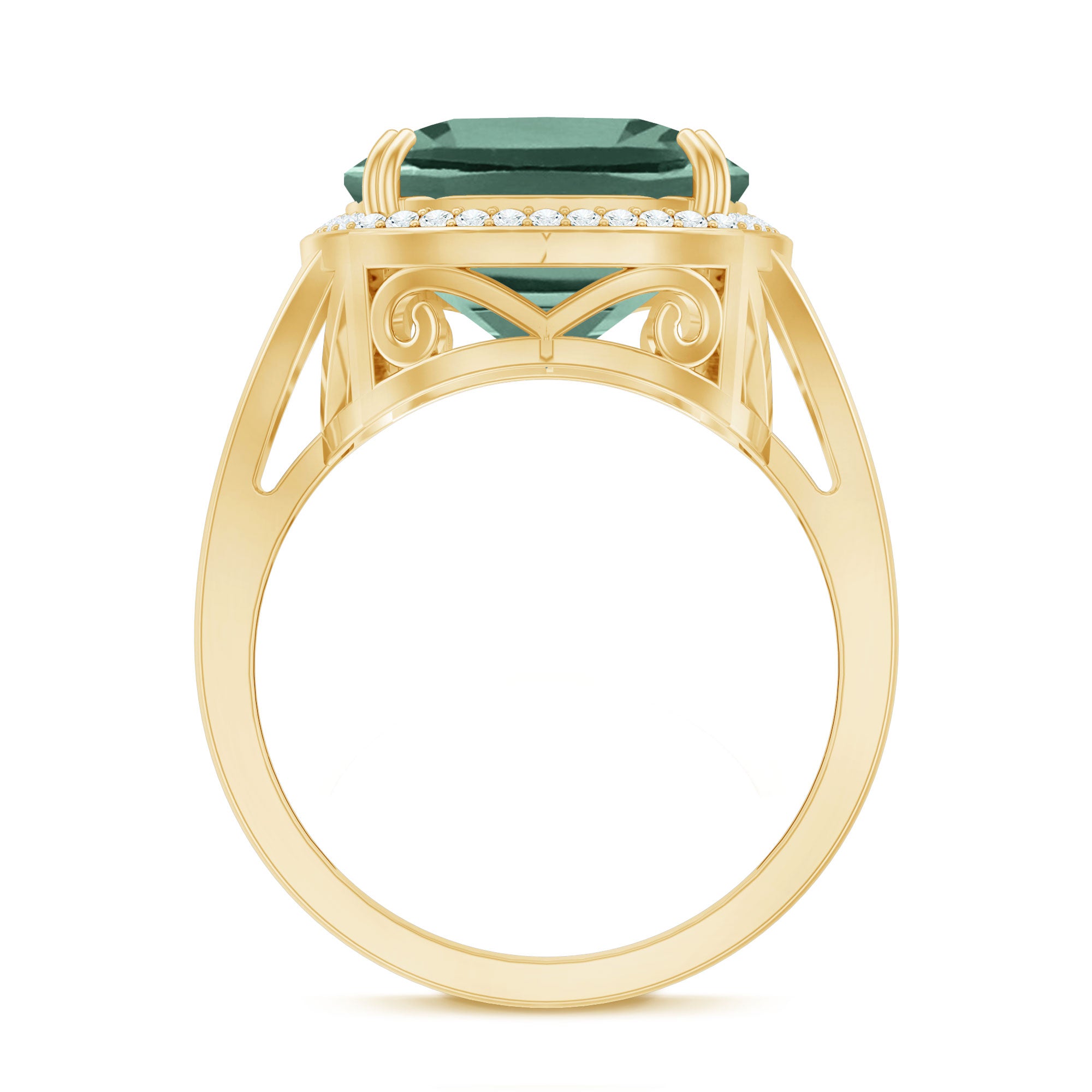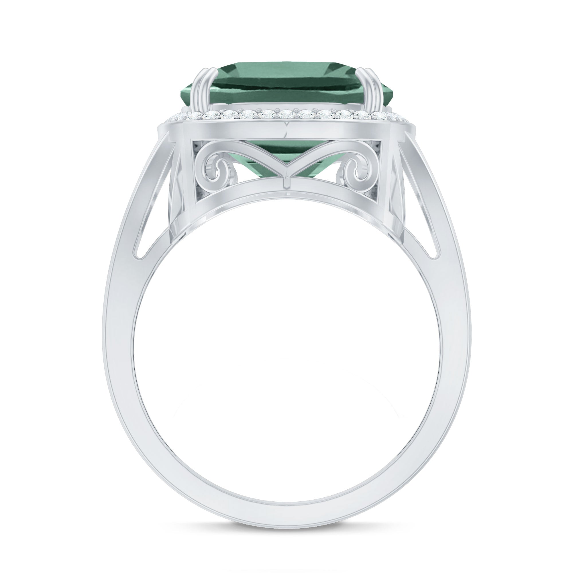 Cushion Cut Lab Grown Green Sapphire Engagement Ring with Moissanite