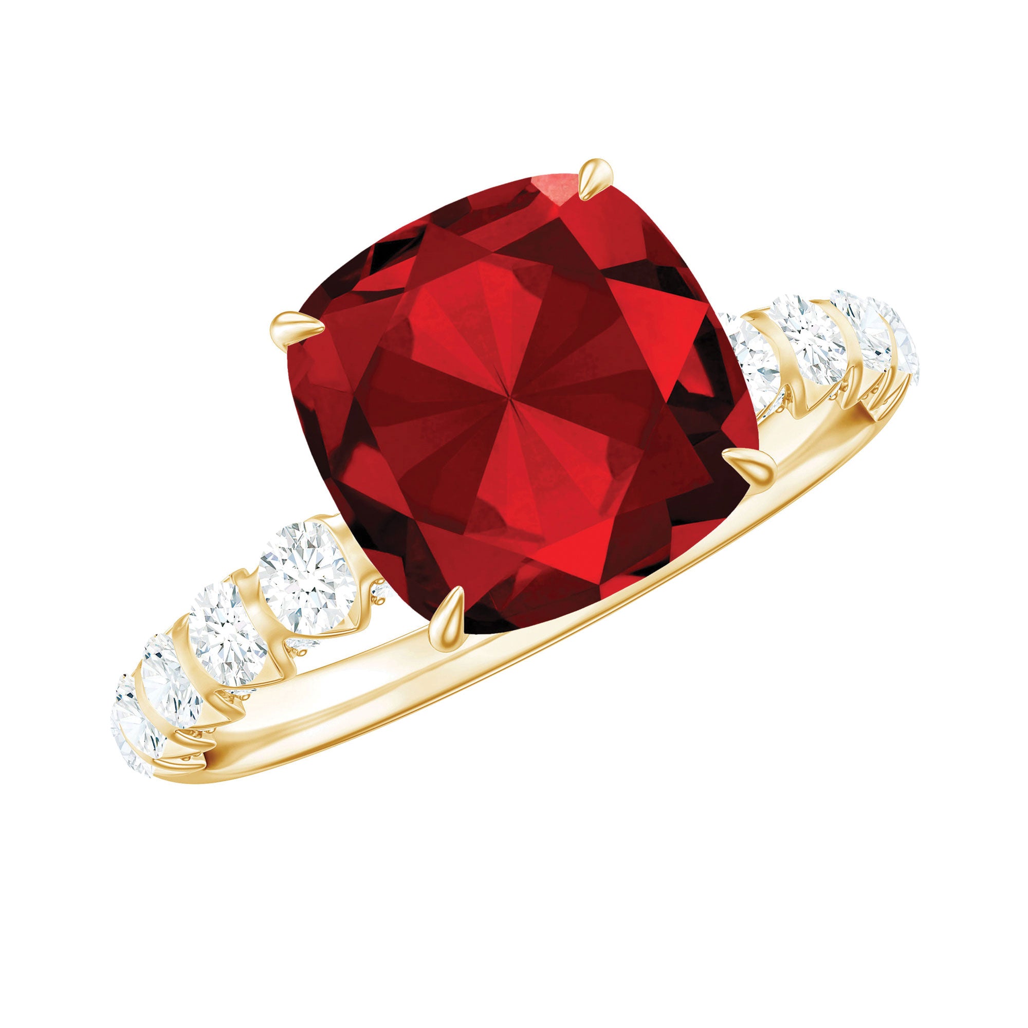 Cushion Cut Lab Grown Ruby Solitaire Ring with Diamond