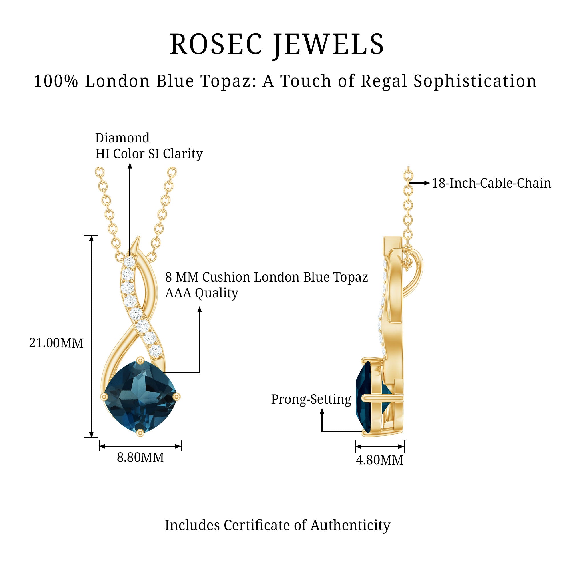 Cushion Cut London Blue Topaz Solitaire Infinity Pendant with Diamond