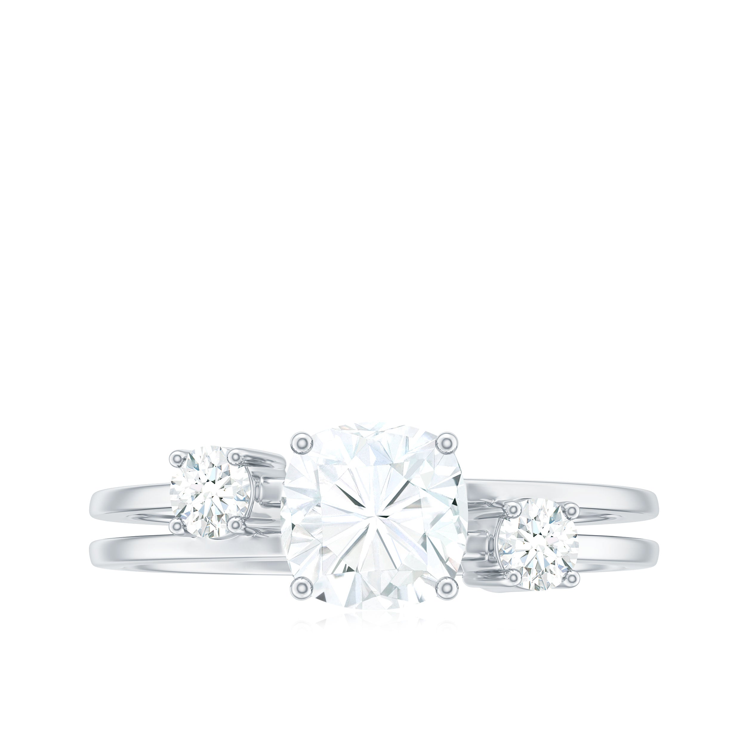 Certified Moissanite Solitaire Double Band Engagement Ring