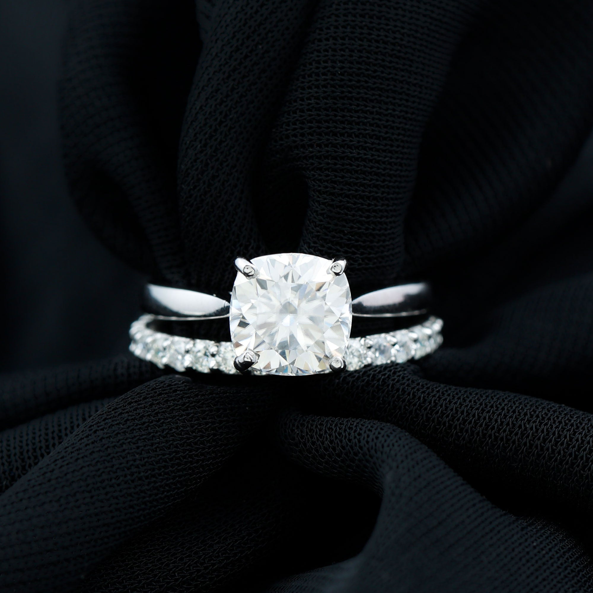 Cushion Cut Moissanite Solitaire Bridal Set with Certificate
