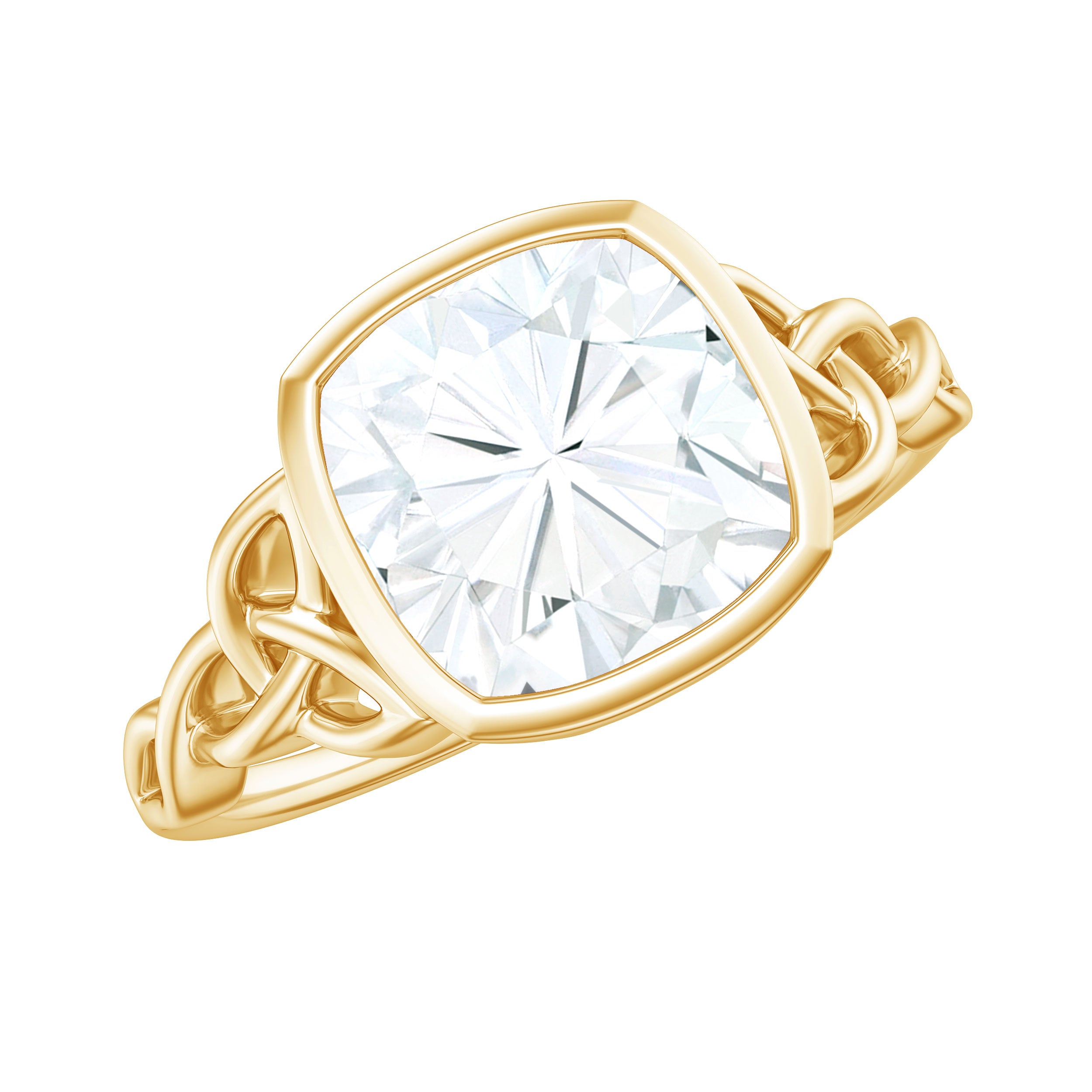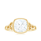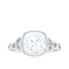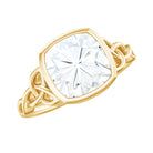 Cushion Cut Moissanite Solitaire Celtic Knot Ring in Bezel Setting