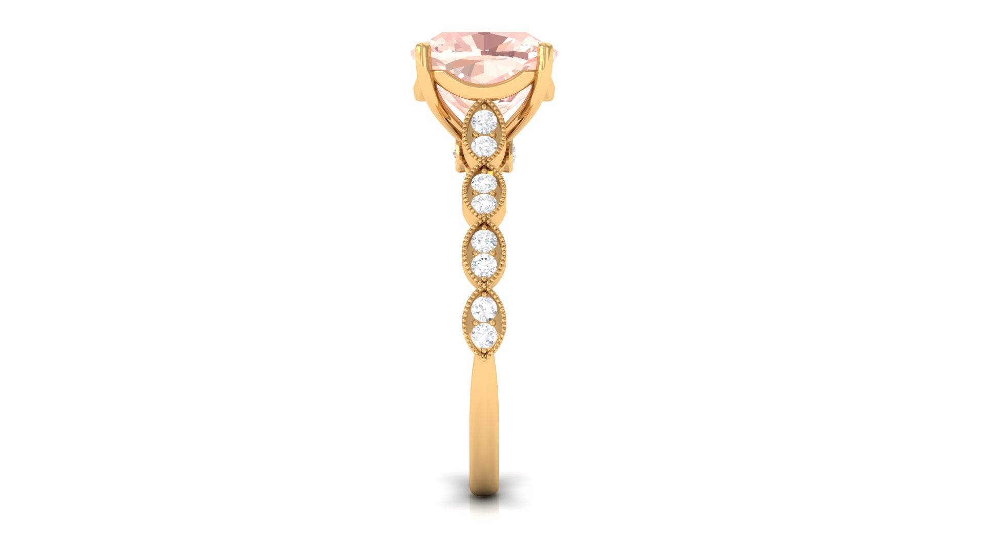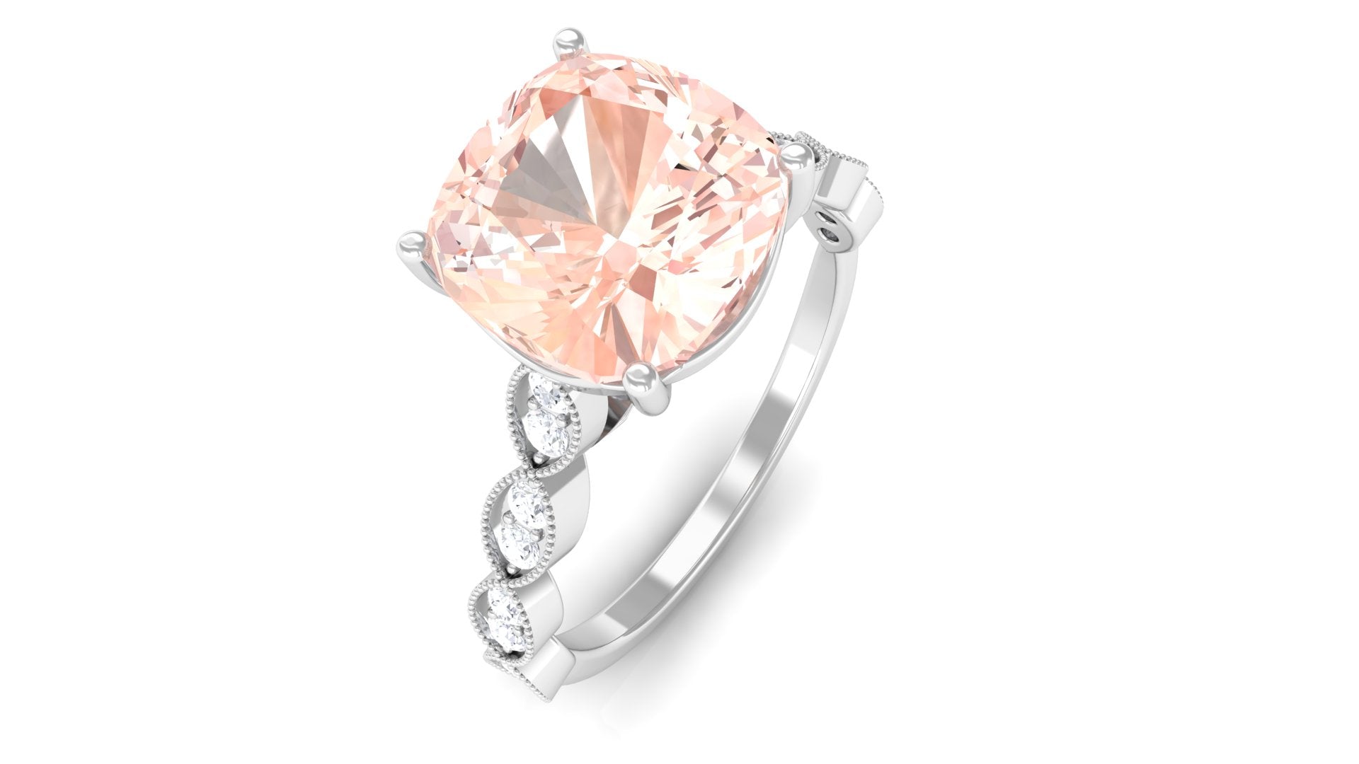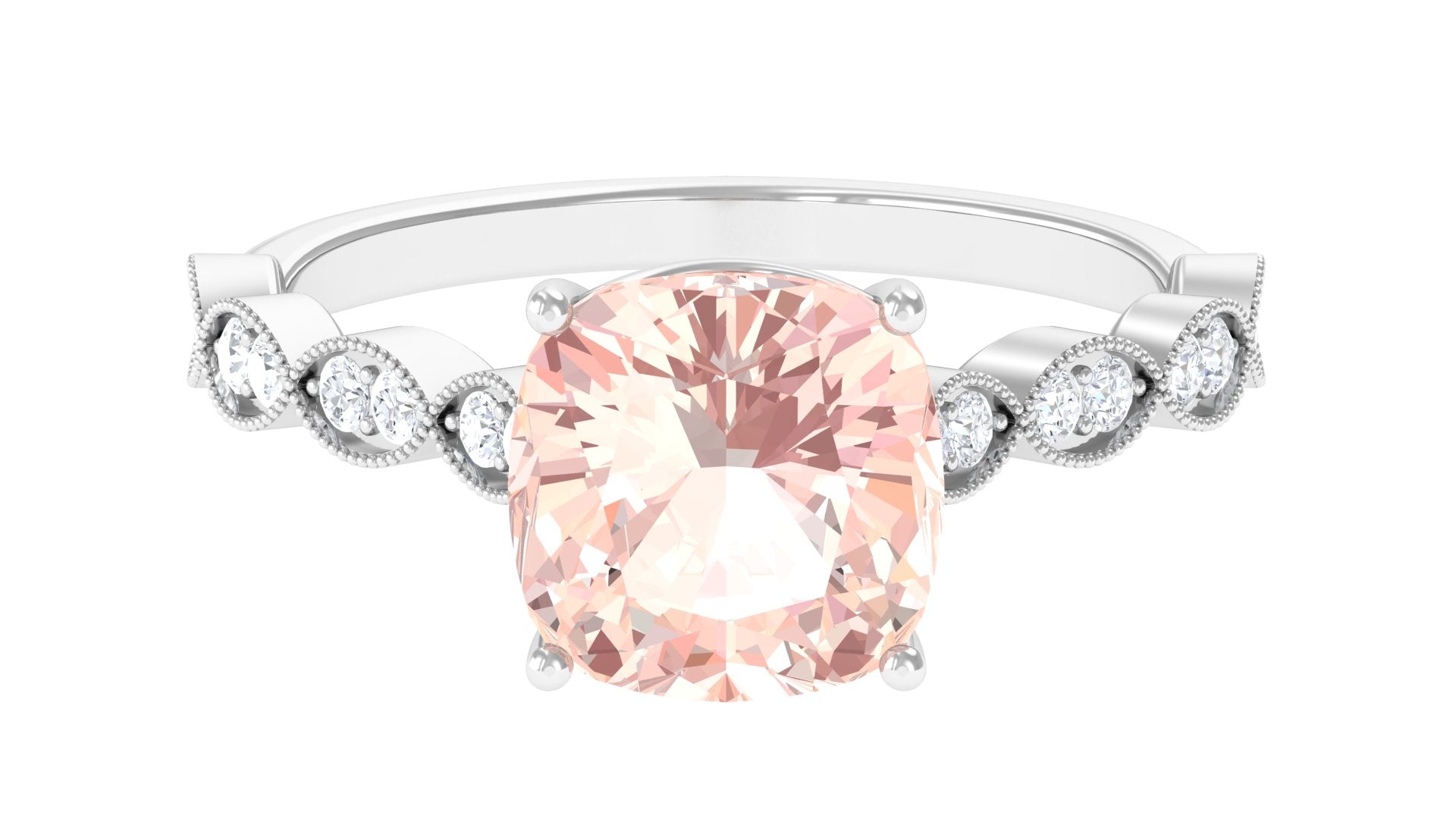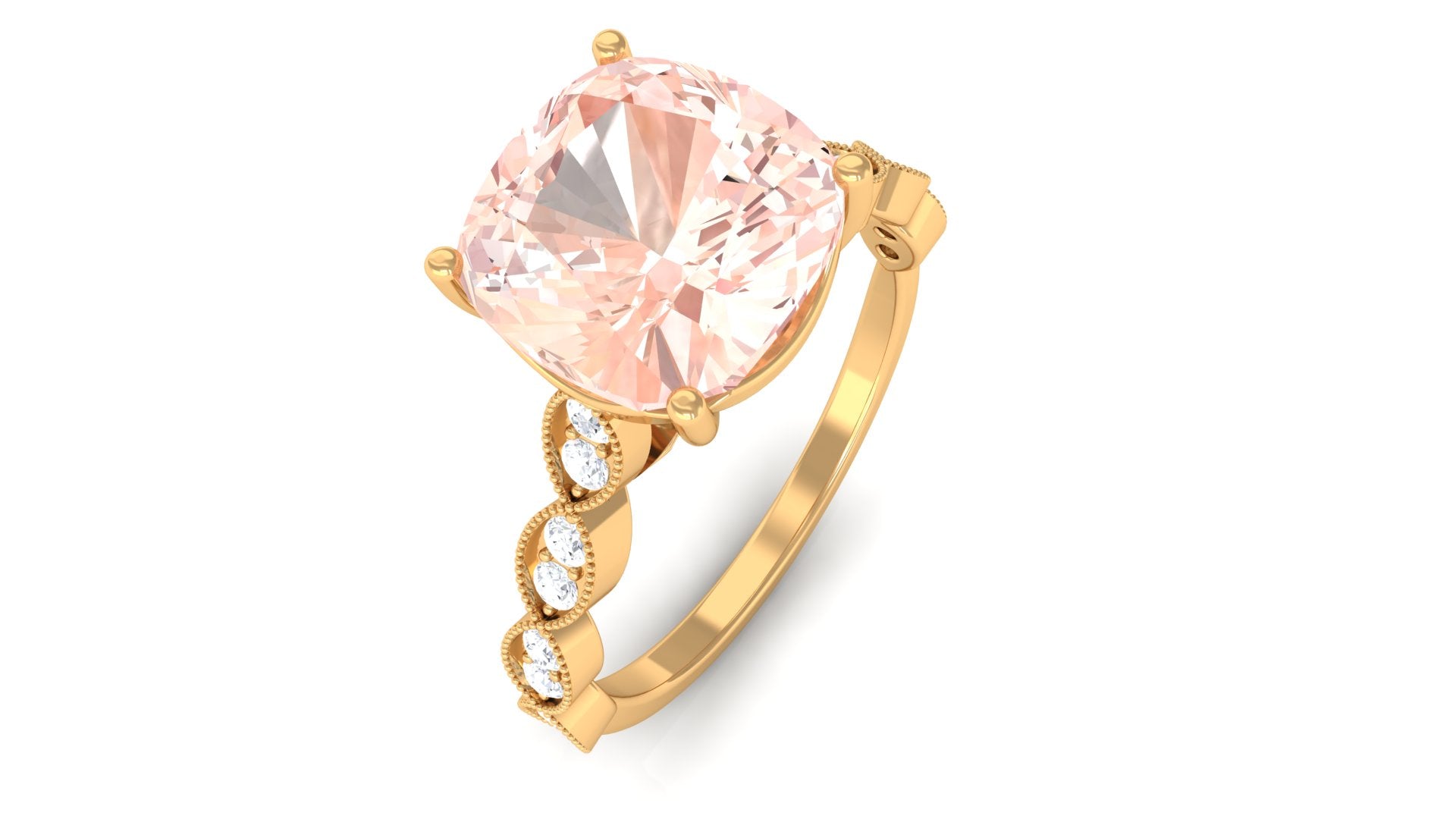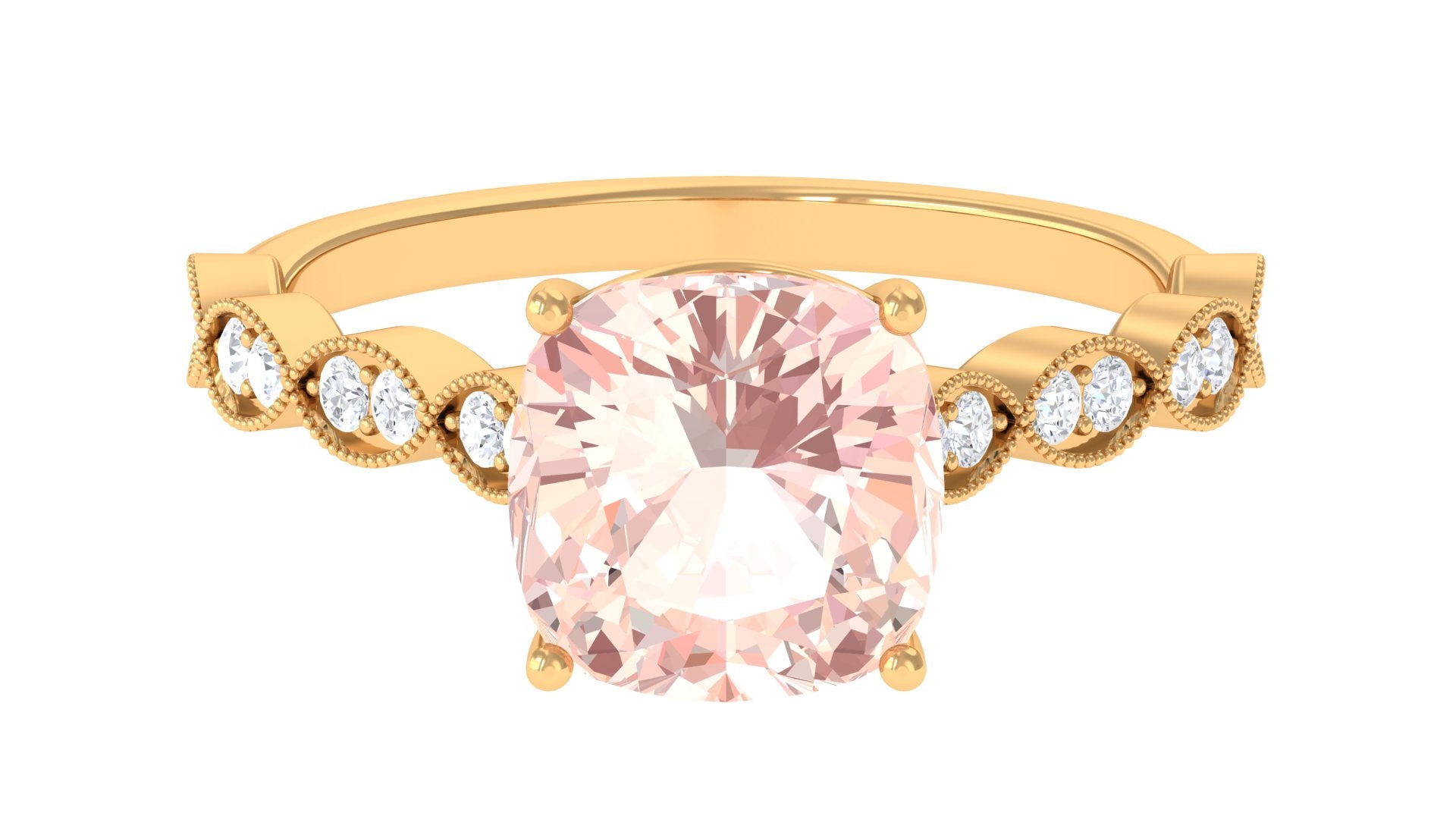Cushion Cut Morganite Engagement Ring with Moissanite and Gold Milgrain