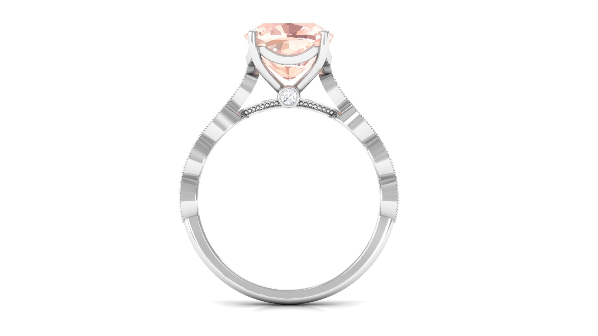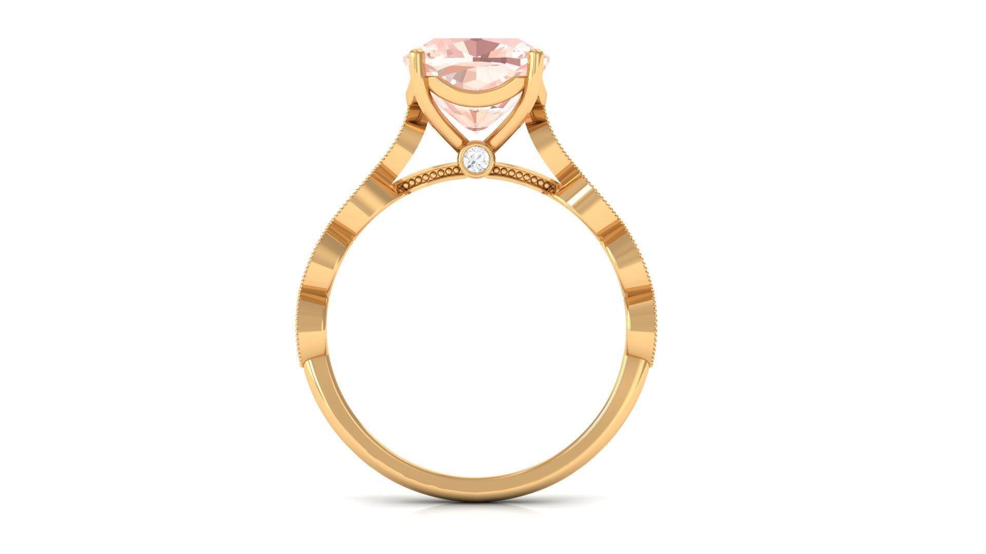 Crafted with a Cushion Cut Morganite and Round Cut Moissanite, the Gold Milgrain Engagement Ring boasts a stunning 8 MM Morganite Solitaire at its center. This exquisite piece of jewelry is sure to make a statement and be an exotic addition to any womans collection.