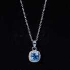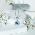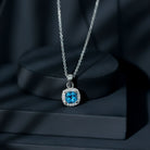 Cushion Cut Swiss Blue Topaz Moissanite Halo Necklace with Silver Chain