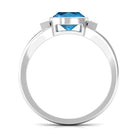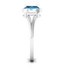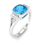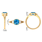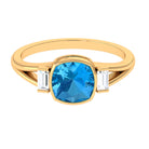 Cushion Cut Swiss Blue Topaz Solitaire Ring with Diamond in Split Shank