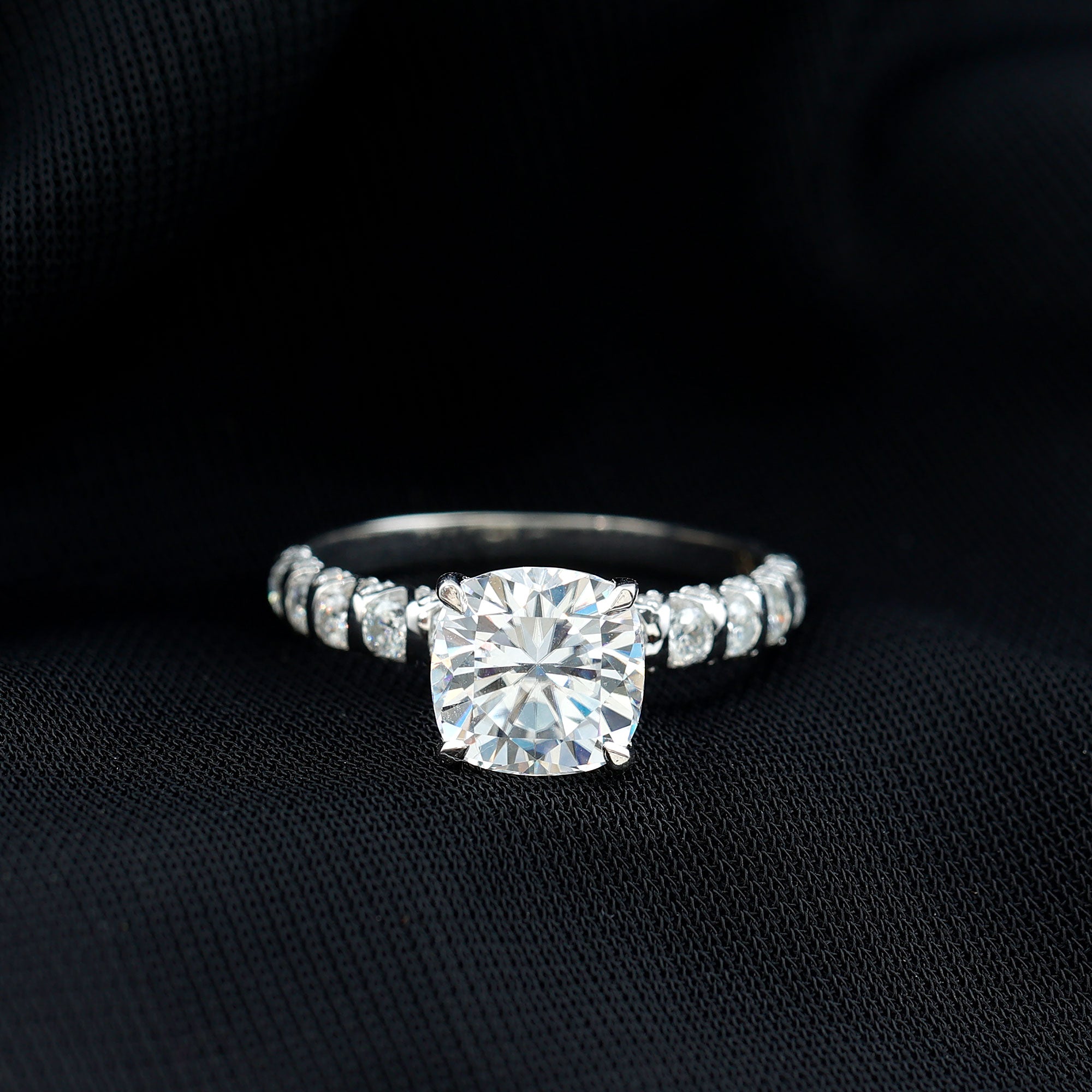 Cushion Cut Zircon Engagement Ring with Side Stones