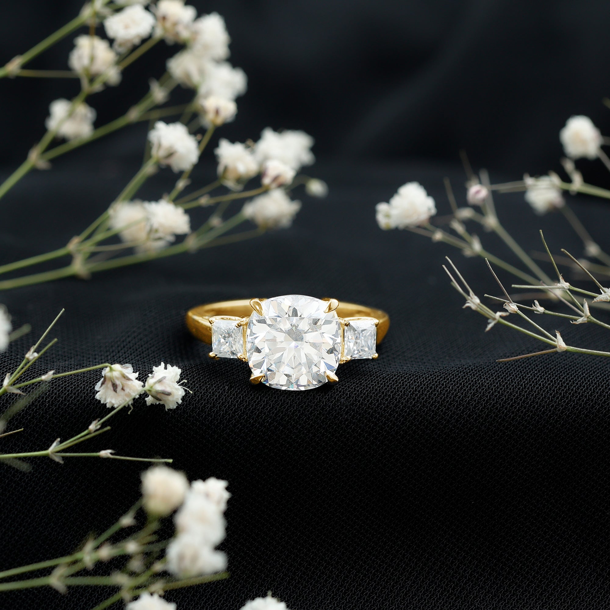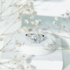 Cushion Cut Zircon Solitaire Engagement Ring with Side Stones