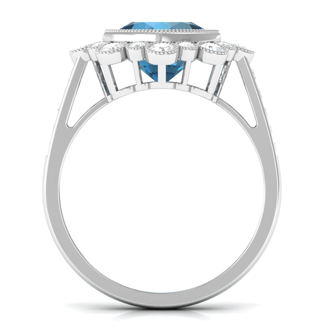 Cushion London Blue Topaz Cocktail Ring with Diamond