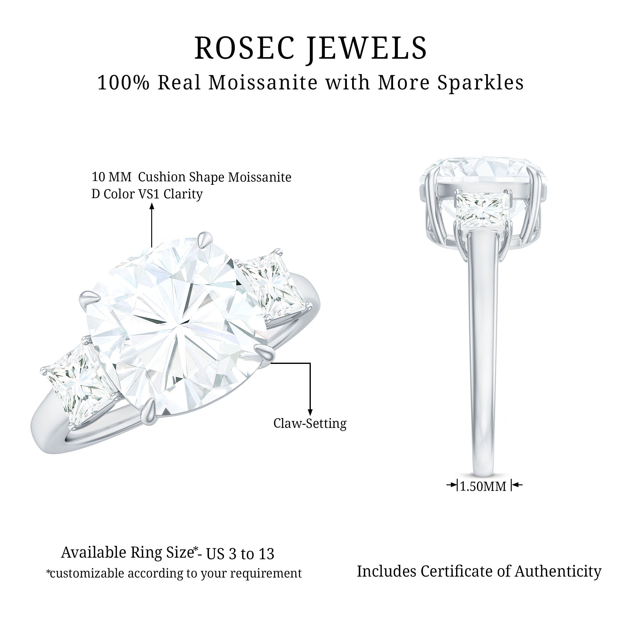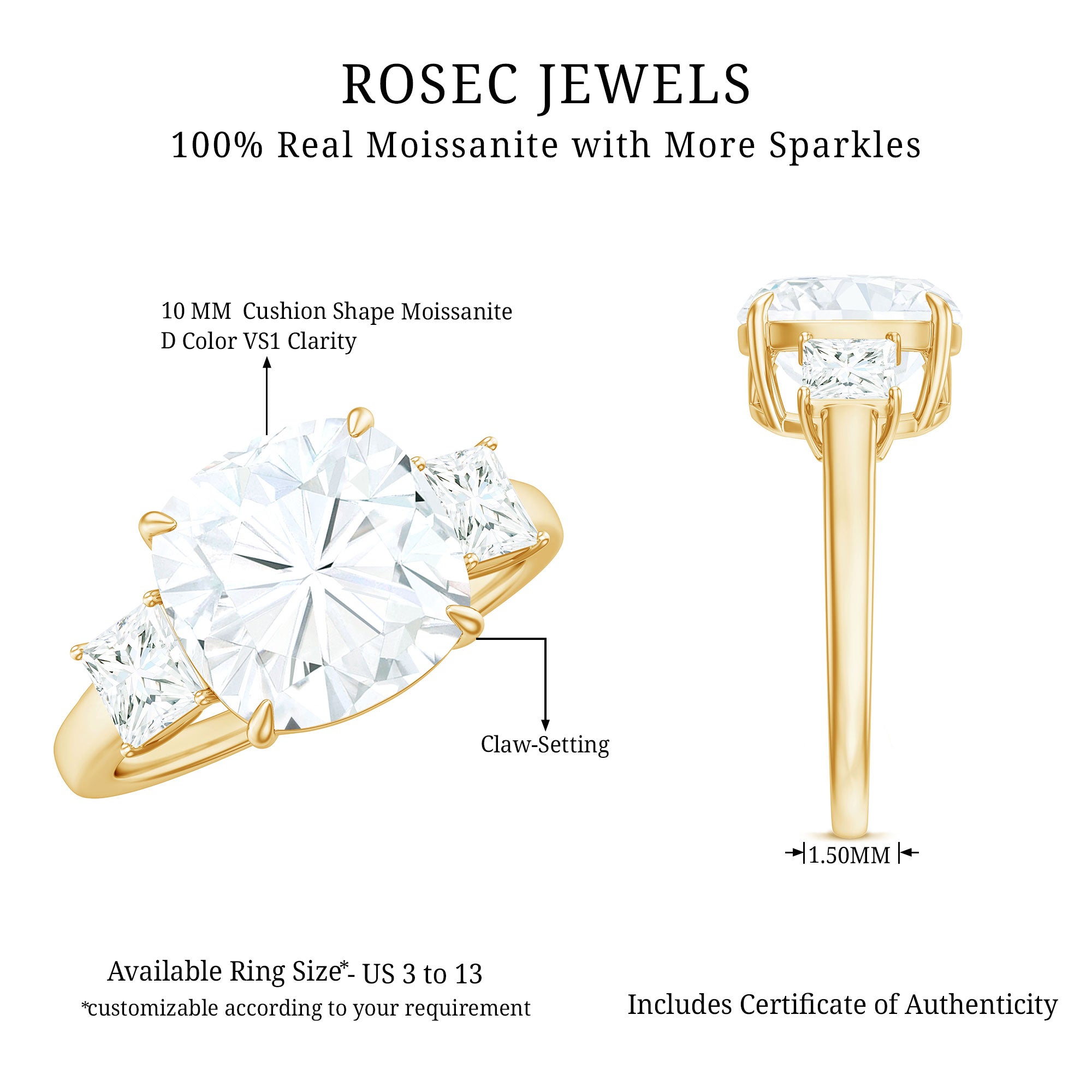 Big love deserves bold brilliance, and this breathtaking Moissanite Engagement Ring delivers just that. Crafted to celebrate every unforgettable moment, this show-stopping piece features a dazzling 10 MM Cushion Cut Moissanite at the center, secured in claw setting that lets the light flood in from every angle. On either side, two 4 MM Princess Cut Moissanites add a bold yet balanced touch, bringing sleek geometry and a modern edge to the romantic cushion centerpiece. The result is a stunning harmony of softness and structure that’s impossible to ignore. With its premium sparkle and fire, each moissanite gleams with diamond-like brilliance, making this Cushion Cut Engagement Ring the perfect choice for those who want luxury without compromise. Whether you are drawn to timeless elegance or contemporary flair, this Big Engagement Ring effortlessly blends both worlds, no need to choose. From proposals and milestones to simply celebrating you, this Moissanite 3 Stone Ring is more than jewelry, it is an expression. It turns heads at brunch, glows under candlelight, and makes every glance at your hand feel like the first time. Wear it as a bold symbol of your love, your power, or your promise to yourself, because you deserve a ring that sparkles just as brightly as your story. Let your love shine with intention, passion, and a little extra brilliance.