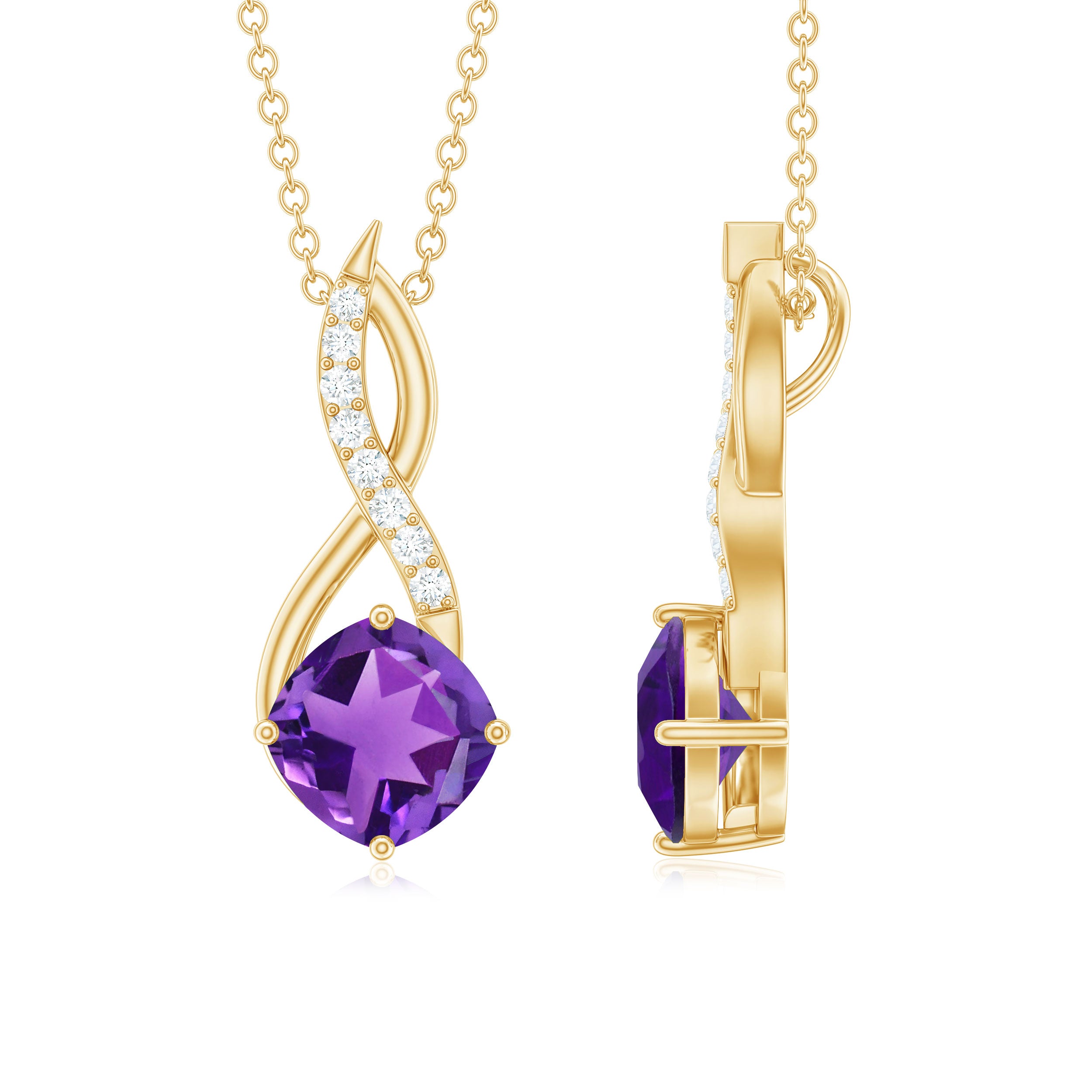 Cushion Shape Amethyst Infinity Pendant Necklace with Diamond Accent