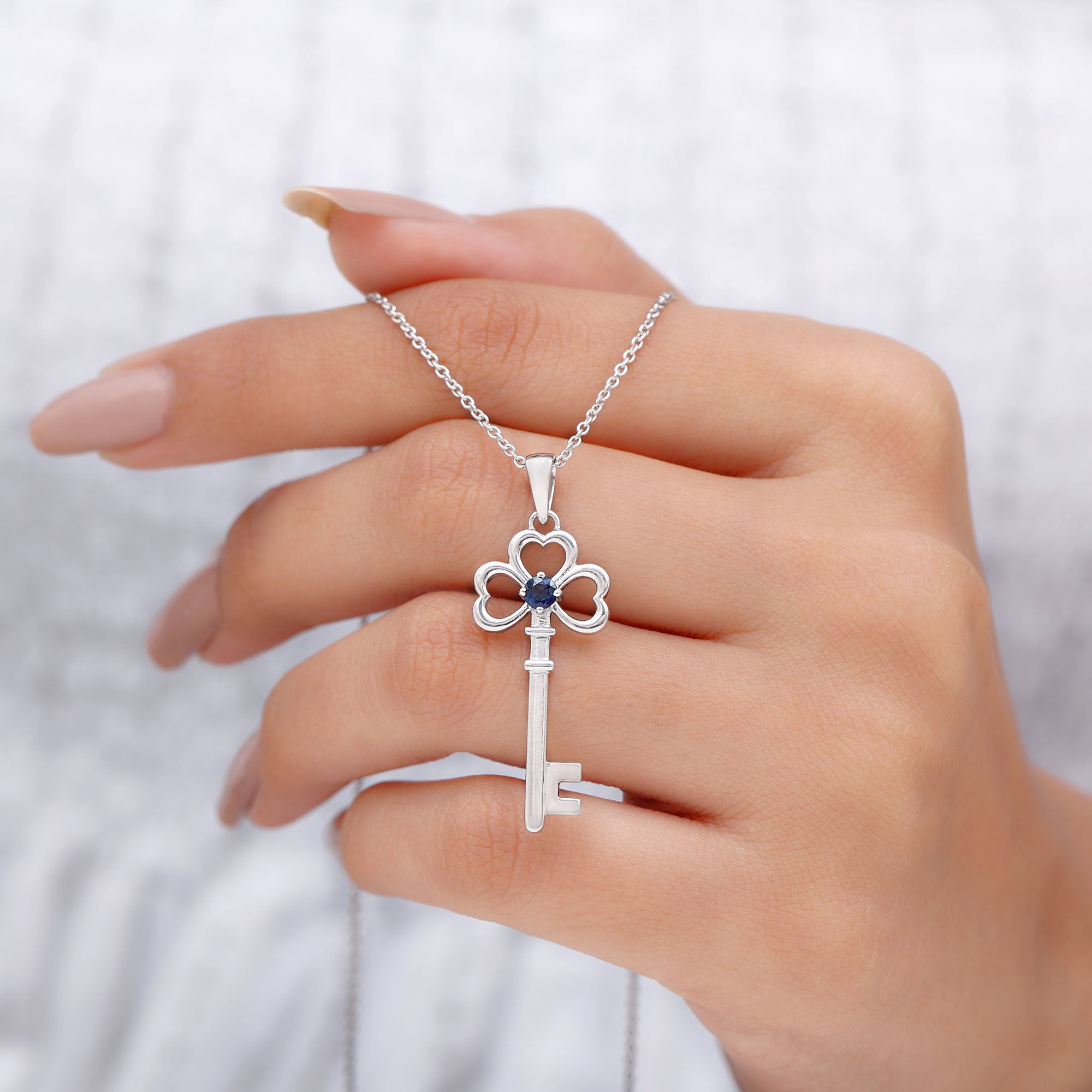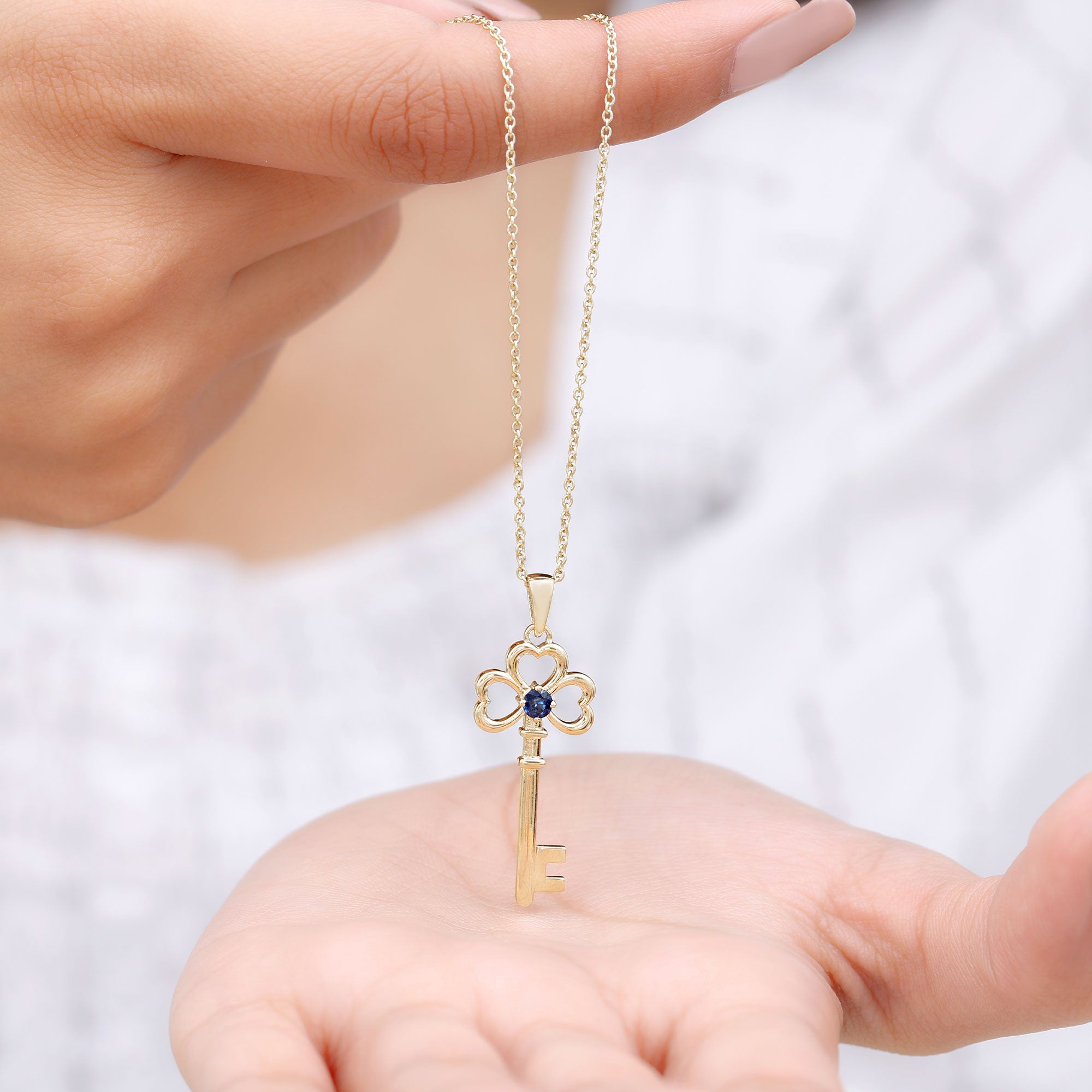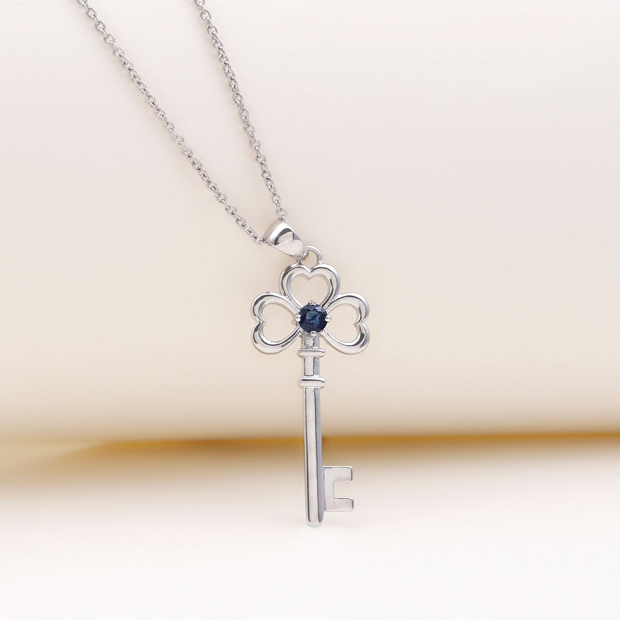 Cute Blue Sapphire Dangle Key Pendant Necklace