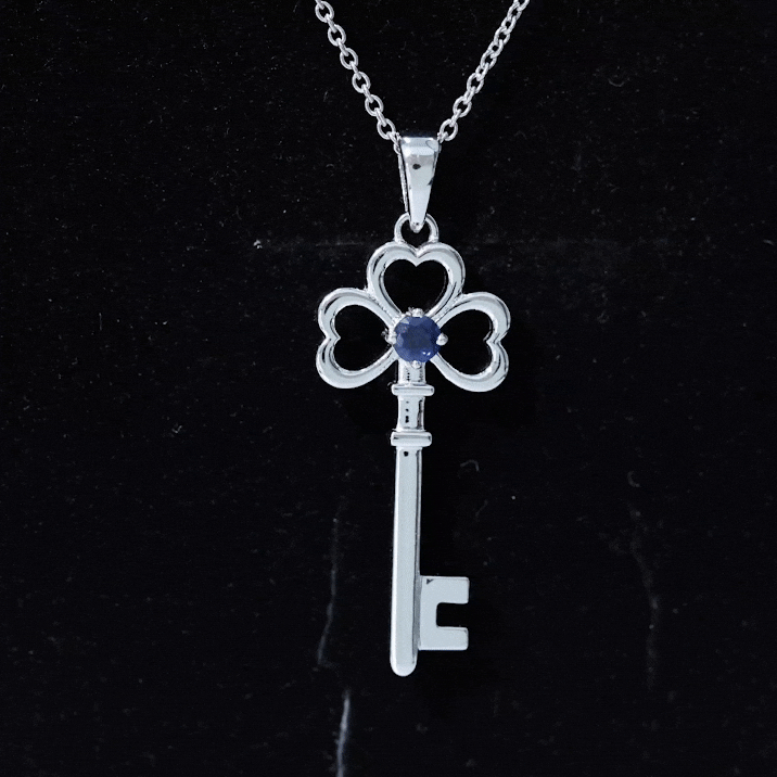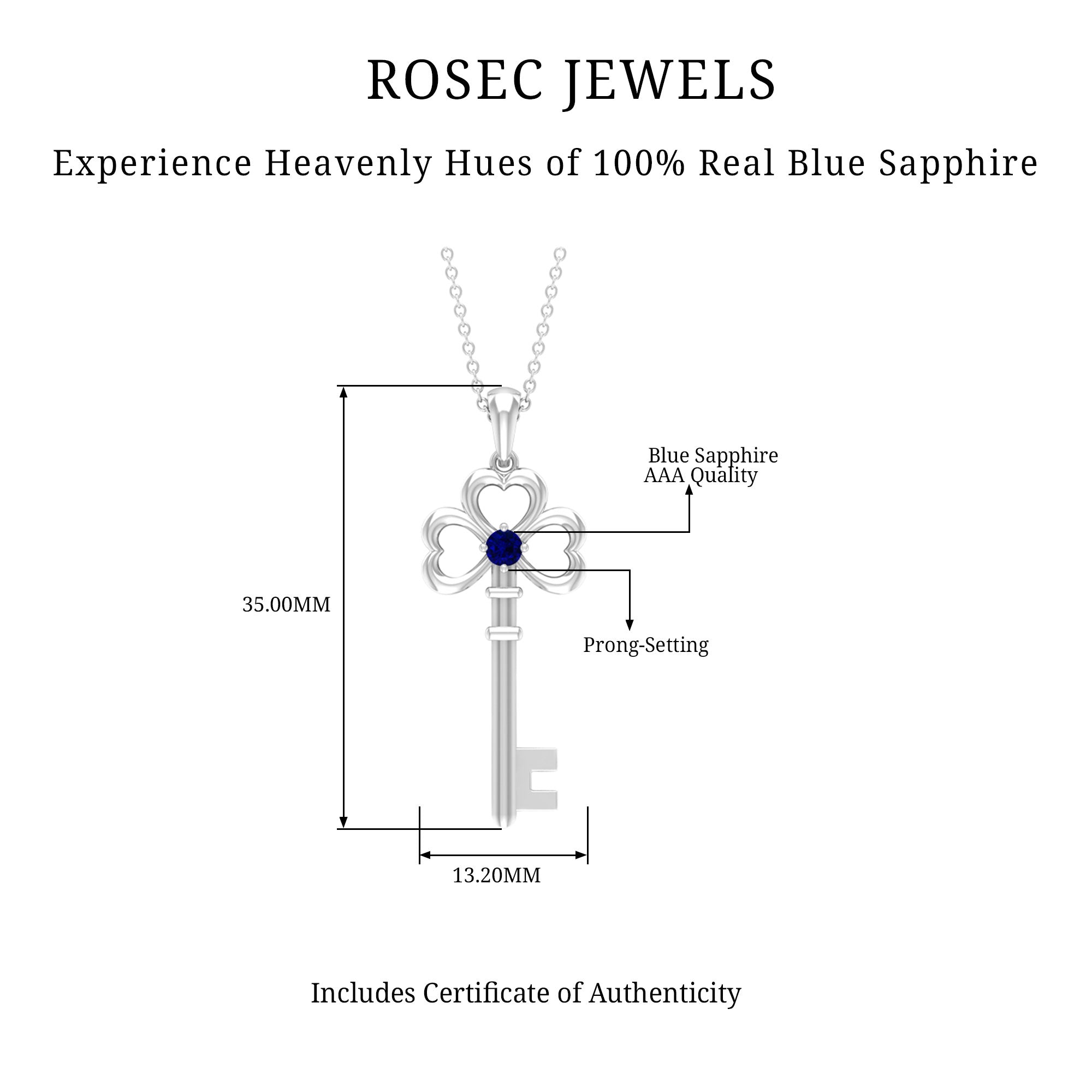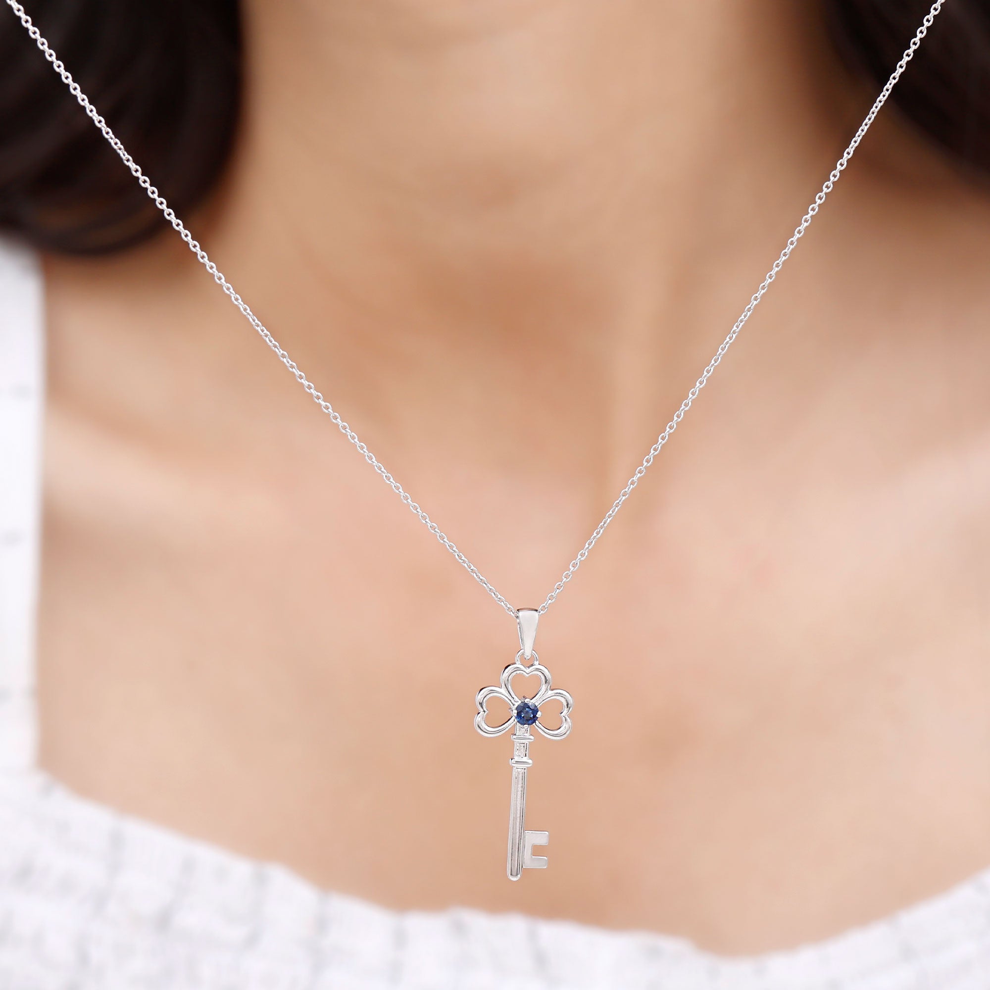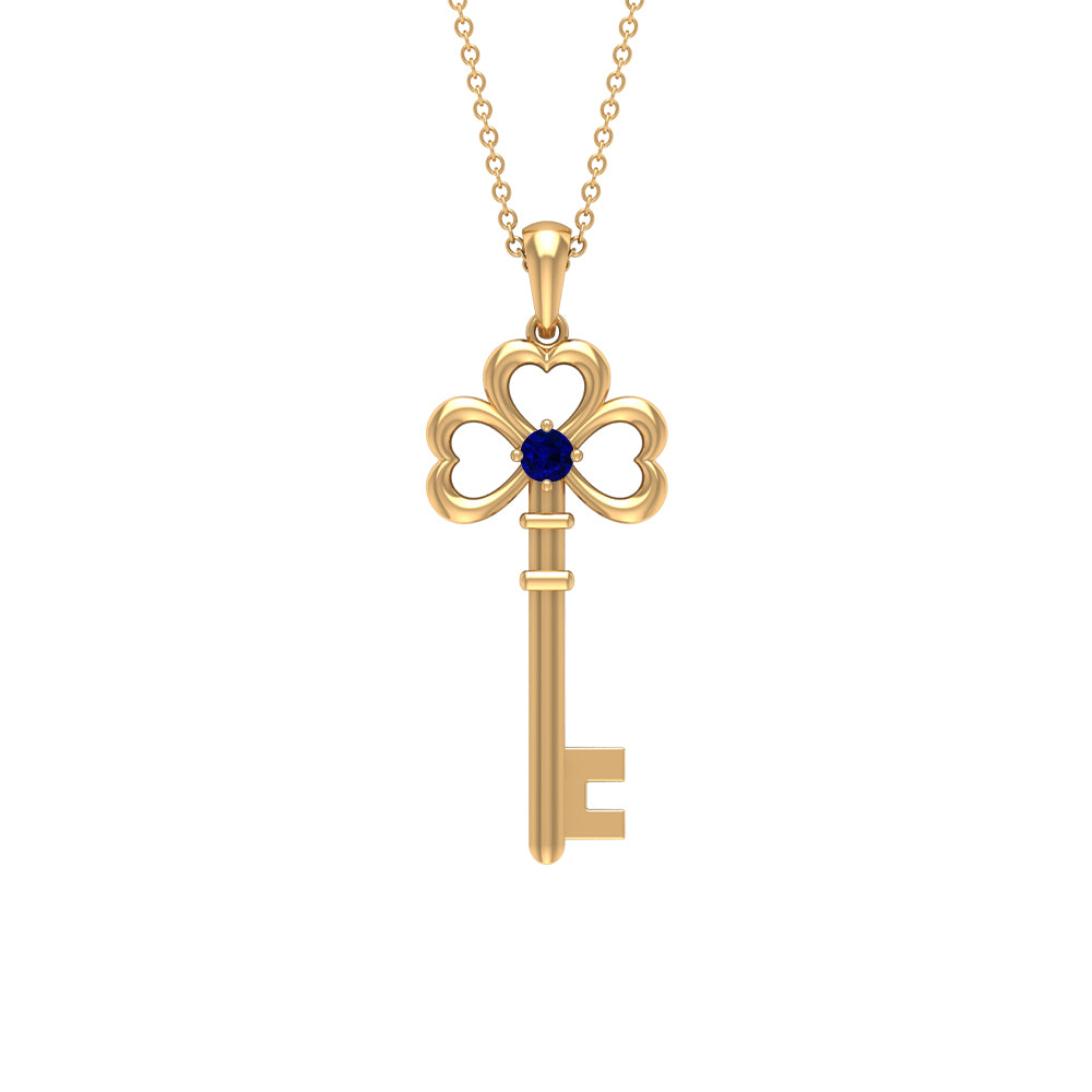 Cute Blue Sapphire Dangle Key Pendant Necklace