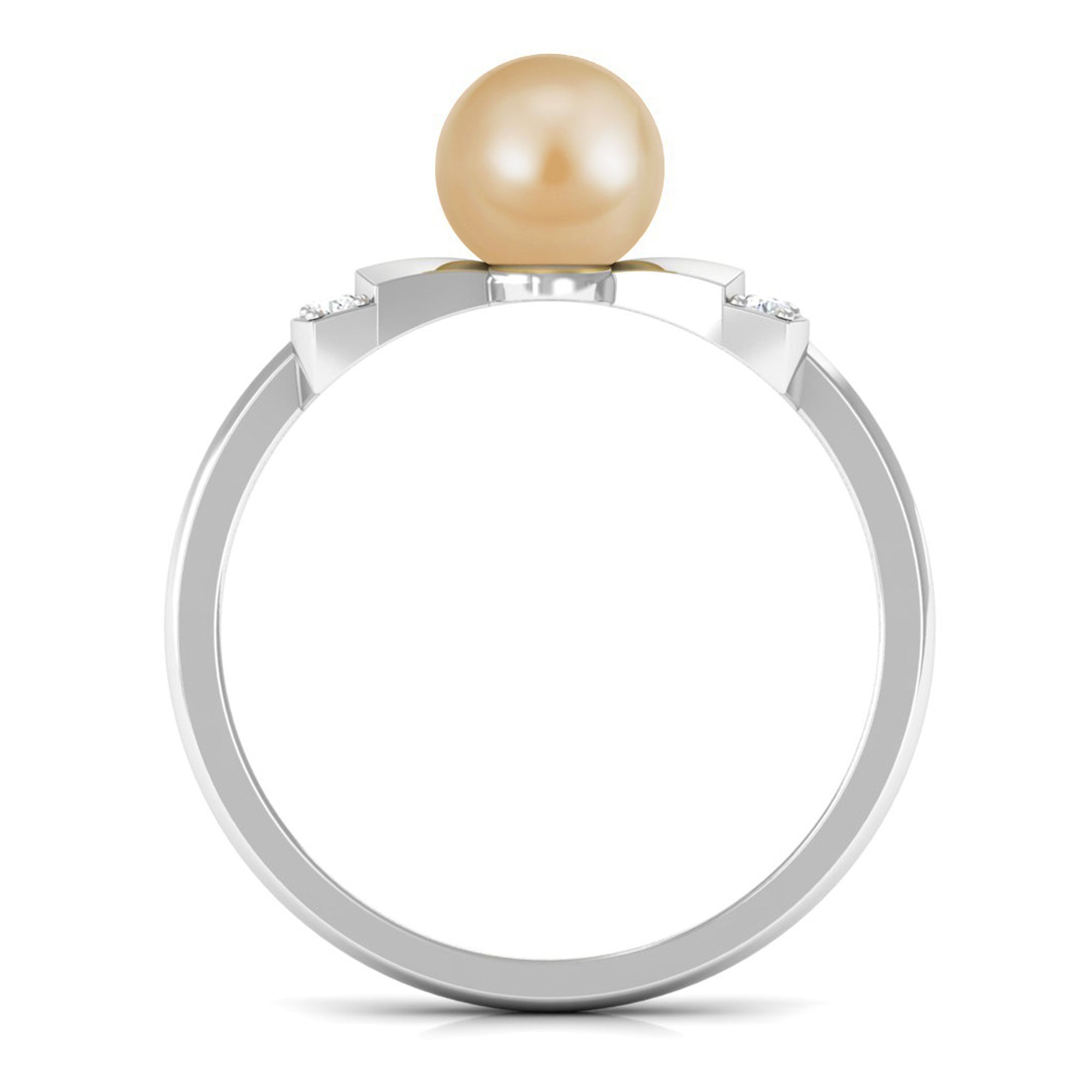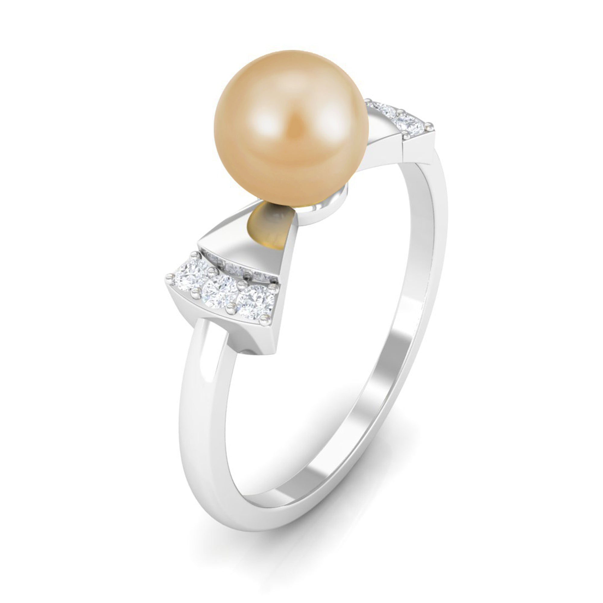 Make her day with this adorable bow-style pearl engagement ring, the sweetest jewelry for her. Crafted from gold, this pearl ring features a round south sea pearl in a bead setting as its solitaire, accented with a Diamond for added sparkle. With its charming design and elegant details, this golden pearl ring is sure to glitter and shine on her finger, just as she does in your life.