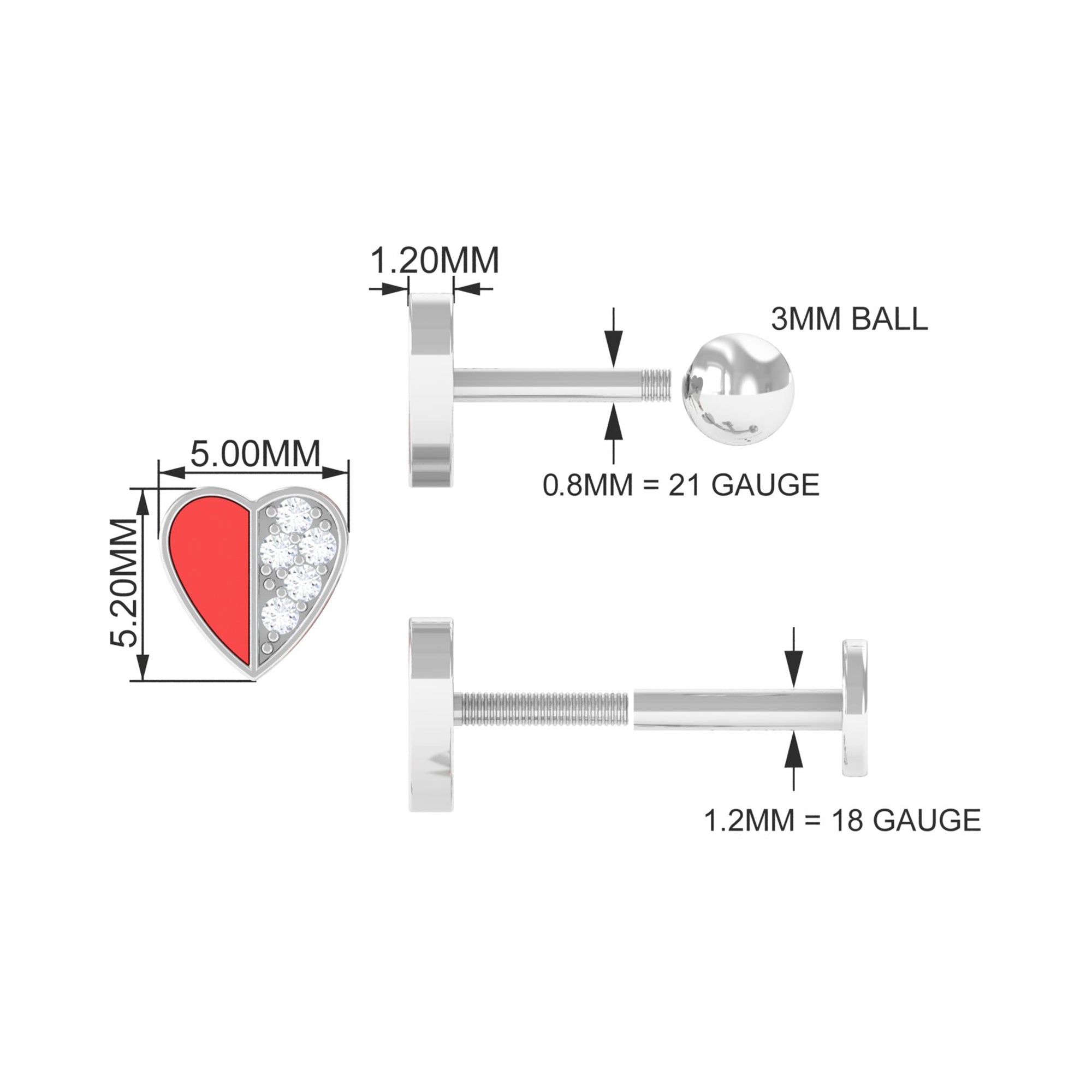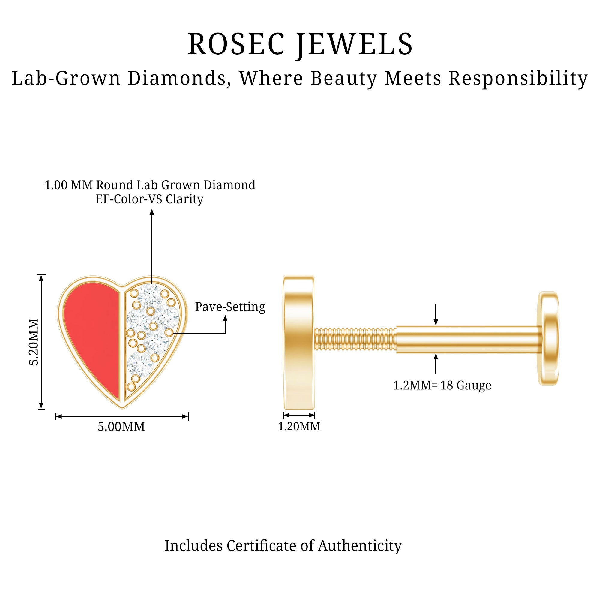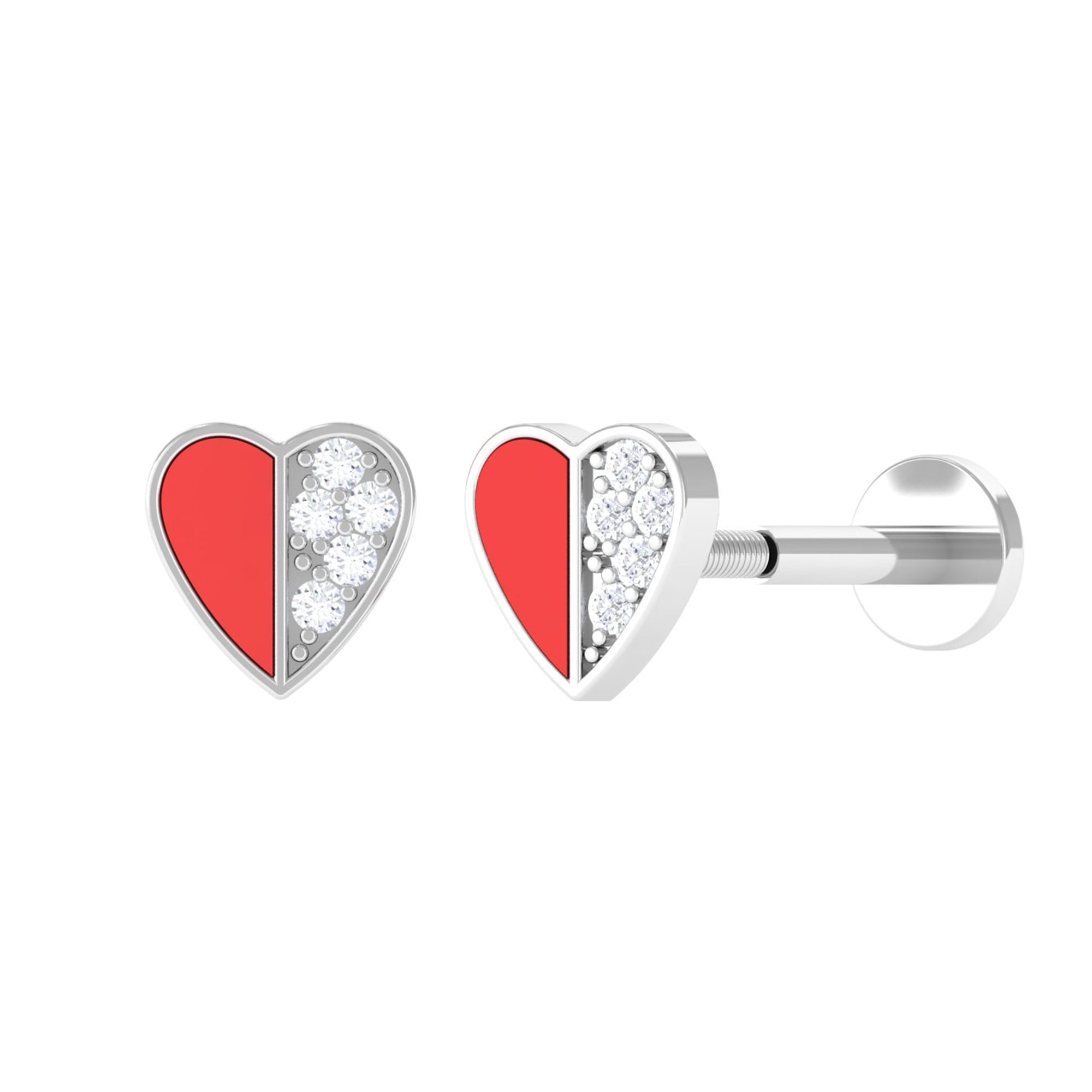 Our Diamond Heart Earring – like, seriously, could it get any cuter? This earring features a colorful splash of red enamel, including Round Diamonds set in Pave Setting on the half side of the heart design, crafted with Hallmarked Metal. With its flat back closure, this Heart Earring seamlessly combines style and ease—perfect for adorning your Conch, Helix, Cartilage, or Lobe Piercing. This exquisite and adorable Diamond Earring is the answer to your style queries. Its time to adorn yourself with some pop of color and beauty.
