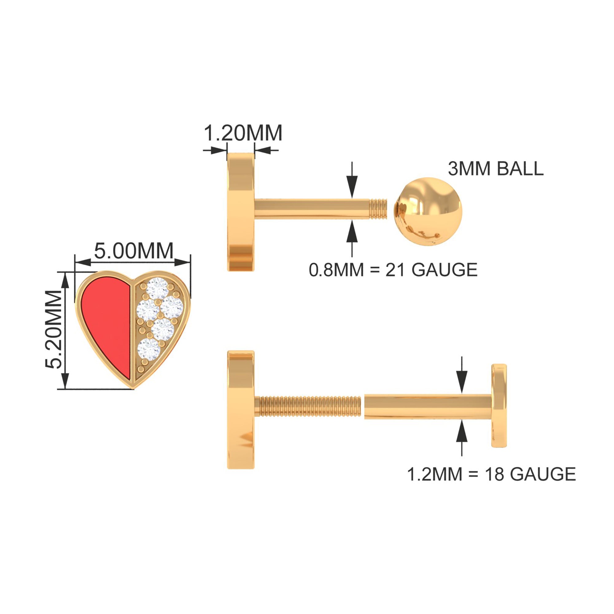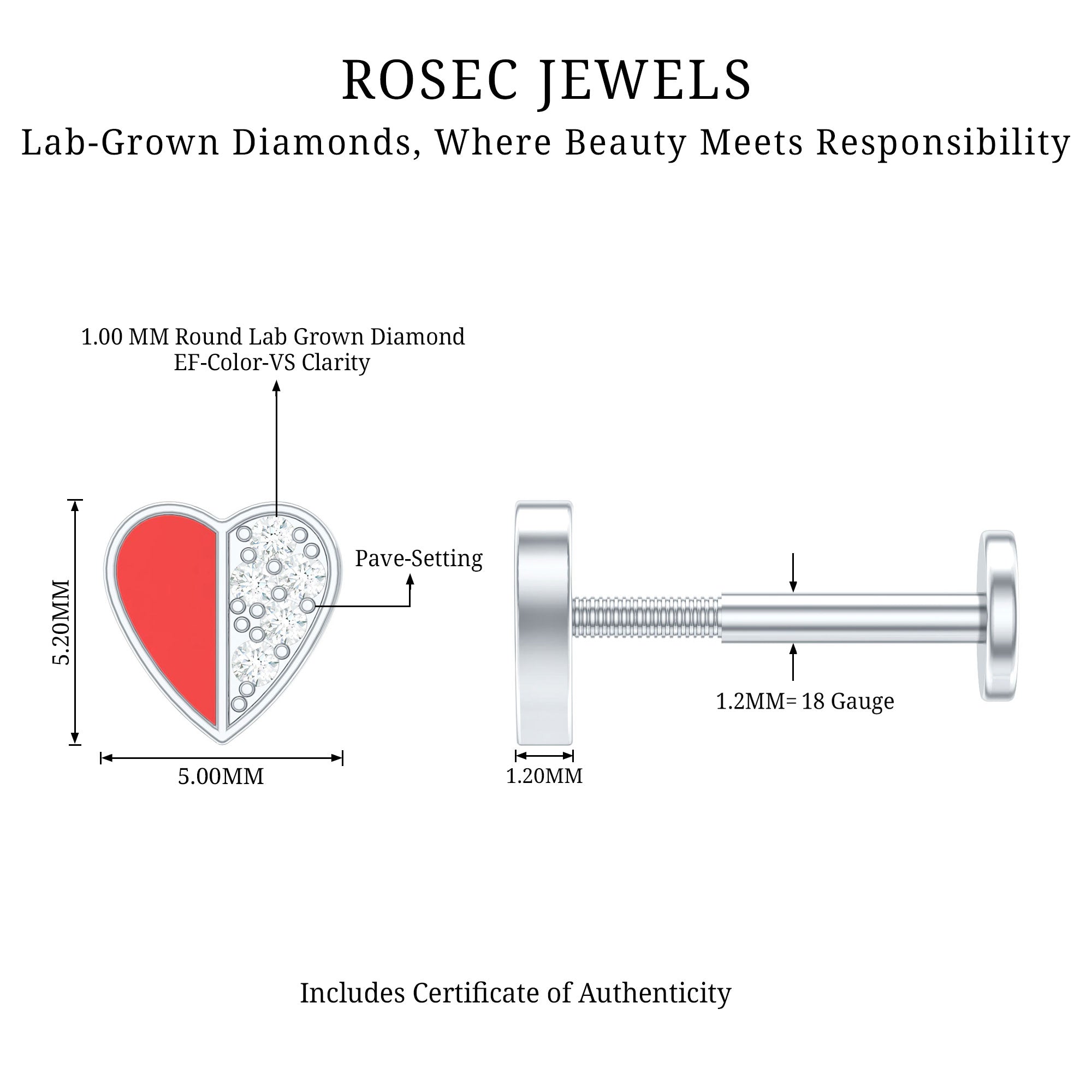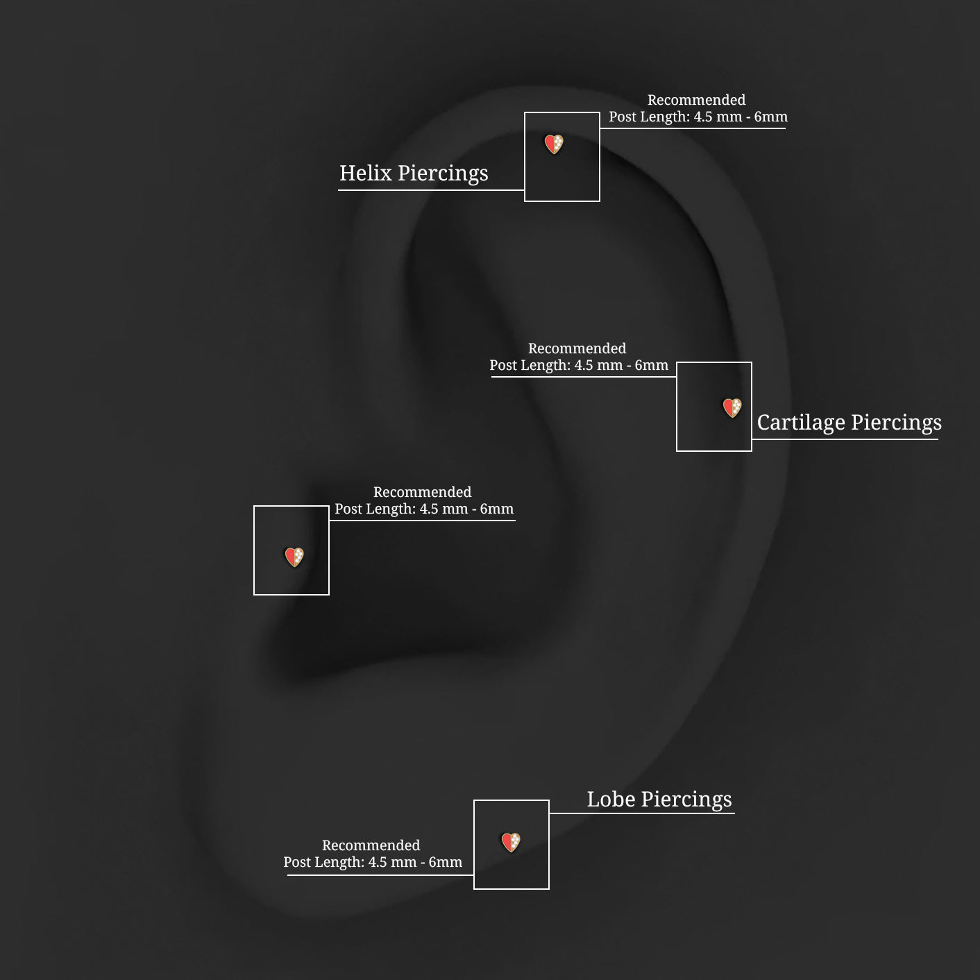 Our Diamond Heart Earring – like, seriously, could it get any cuter? This earring features a colorful splash of red enamel, including Round Diamonds set in Pave Setting on the half side of the heart design, crafted with Hallmarked Metal. With its flat back closure, this Heart Earring seamlessly combines style and ease—perfect for adorning your Conch, Helix, Cartilage, or Lobe Piercing. This exquisite and adorable Diamond Earring is the answer to your style queries. Its time to adorn yourself with some pop of color and beauty.
