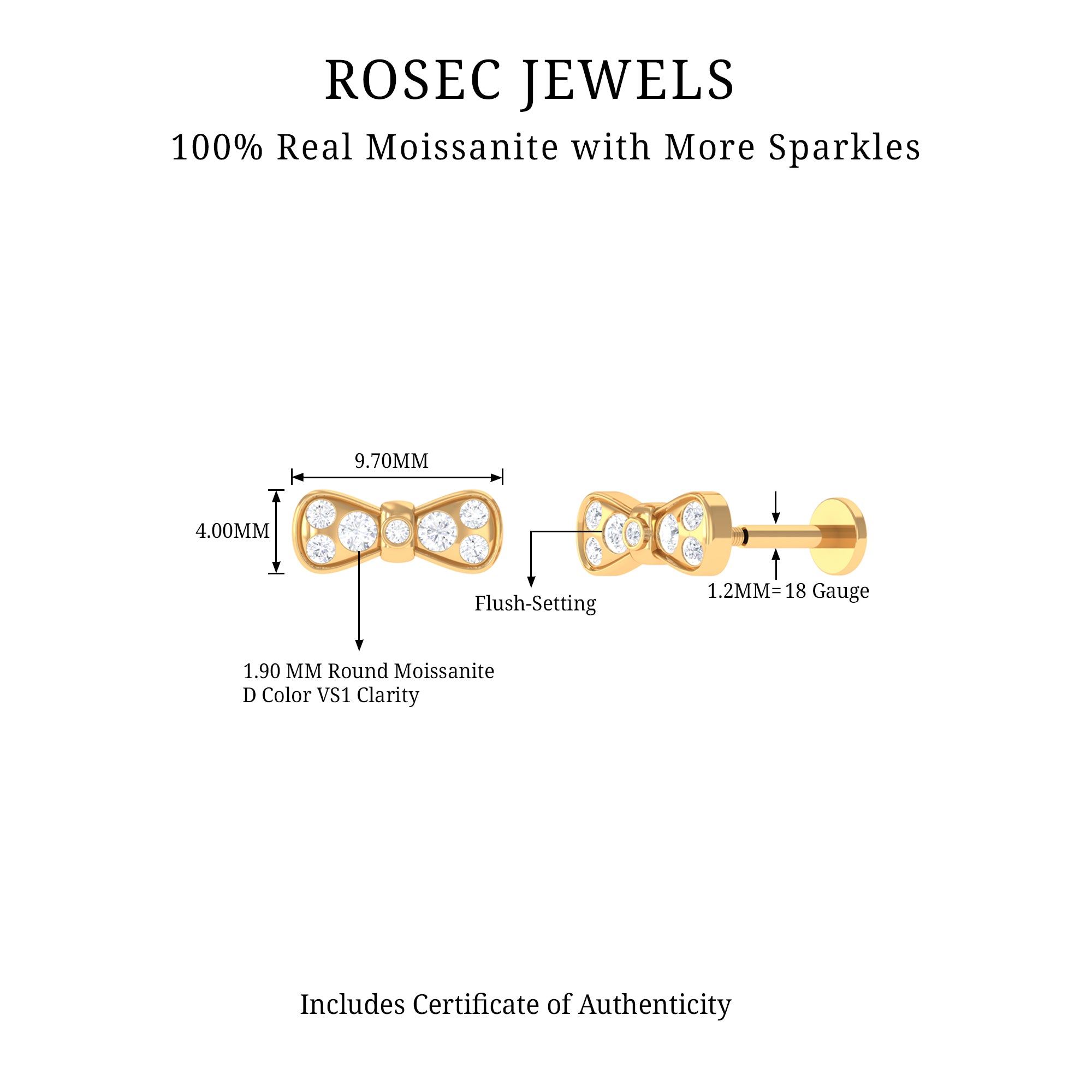 This stunning Moissanite Bow Cartilage Earring is the perfect addition to any outfit, designed to make you stand out with its opulent look. Embellished with Round Cut Moissanite in Flush Setting, this Gold Bow Earring will leave everyone in awe. This makes a great gift for a special girl on her birthday, anniversary, or graduation day, adding to the memorable moments of her life.