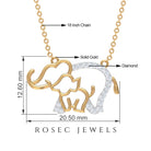 Rosec Jewels Cute Elephant Necklace beautifully represents the special bond between a mother and child. It features an outline of a mama and baby elephant in a heartwarming design with a row of shimmering round moissanite stones, adding a touch of sparkle. Style yourself with the sparkling beauty of this Moissanite Necklace and shine with confidence. This Cute Necklace makes a thoughtful and heartfelt gift for Mothers Day, as it embodies everything a mother represents - love, protection, and devotion. Whether you are celebrating a new mom, honoring your own, or expressing gratitude to someone who is like your mother, this piece serves as a lasting reminder of the love you share.