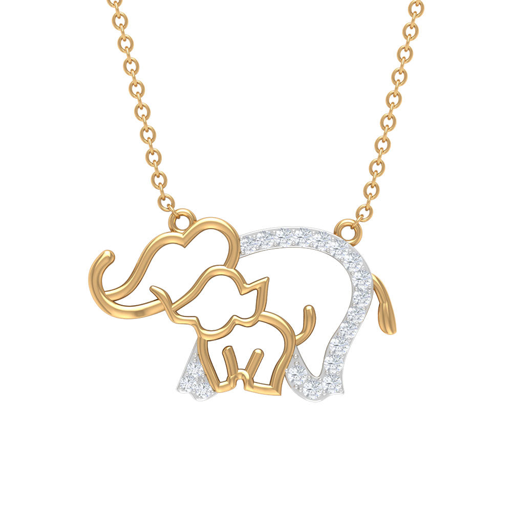 Cute Mother and Baby Elephant Necklace with Moissanite
