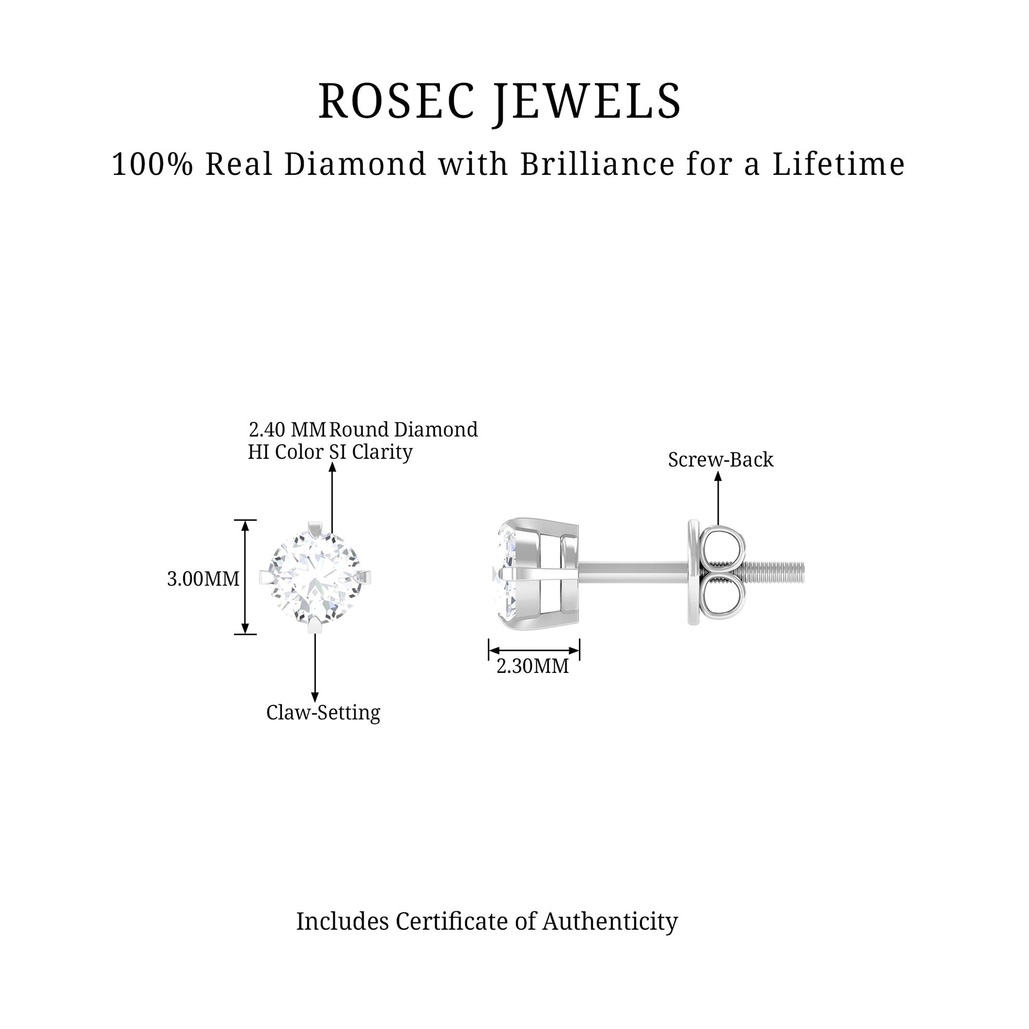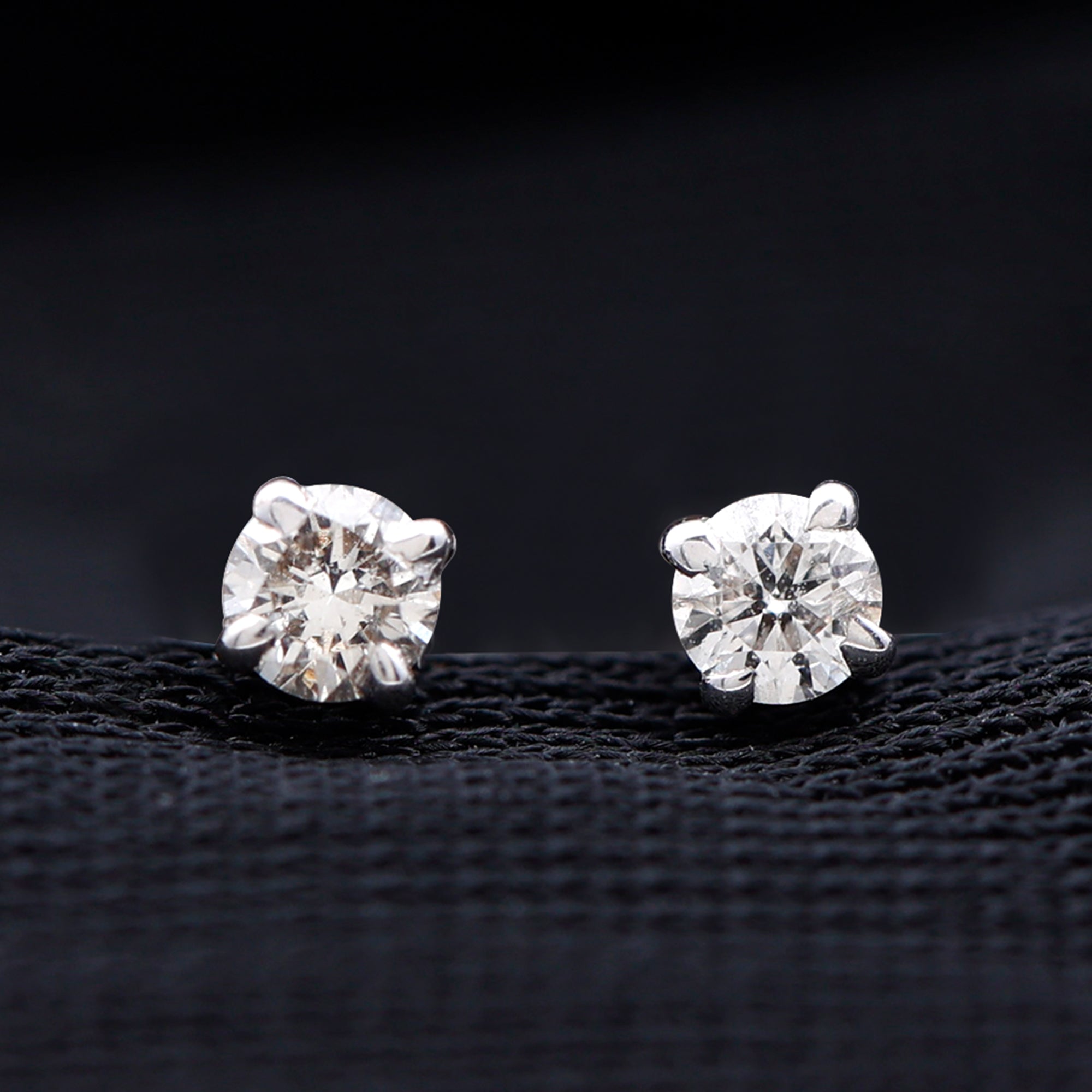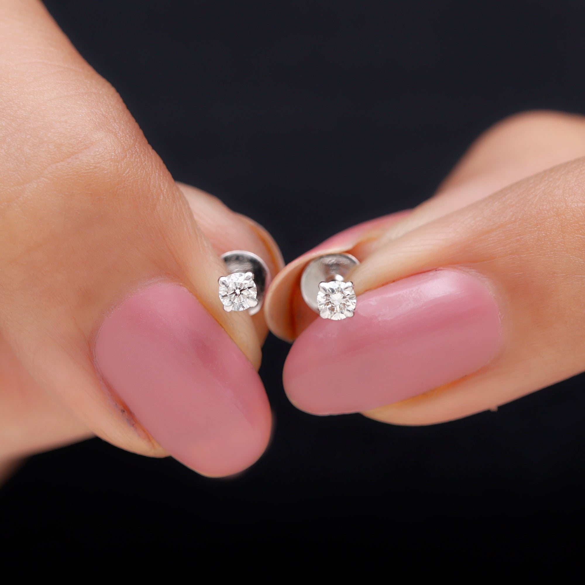 The Solitaire Earrings are a pair youll wear often as they will complement all your casual, formal, and special attires with ease. The Simple Stud Earrings showcase a Round Shape Diamond set in a 4 Prong setting and crafted with Hallmarked Metal. Add eye-catching interest to any look by flaunting these Stud Earrings that secure comfortably with screw-backs. Celebrate the auspicious occasion of her graduation by getting these precious Diamond Earrings as a graduation gift for her.