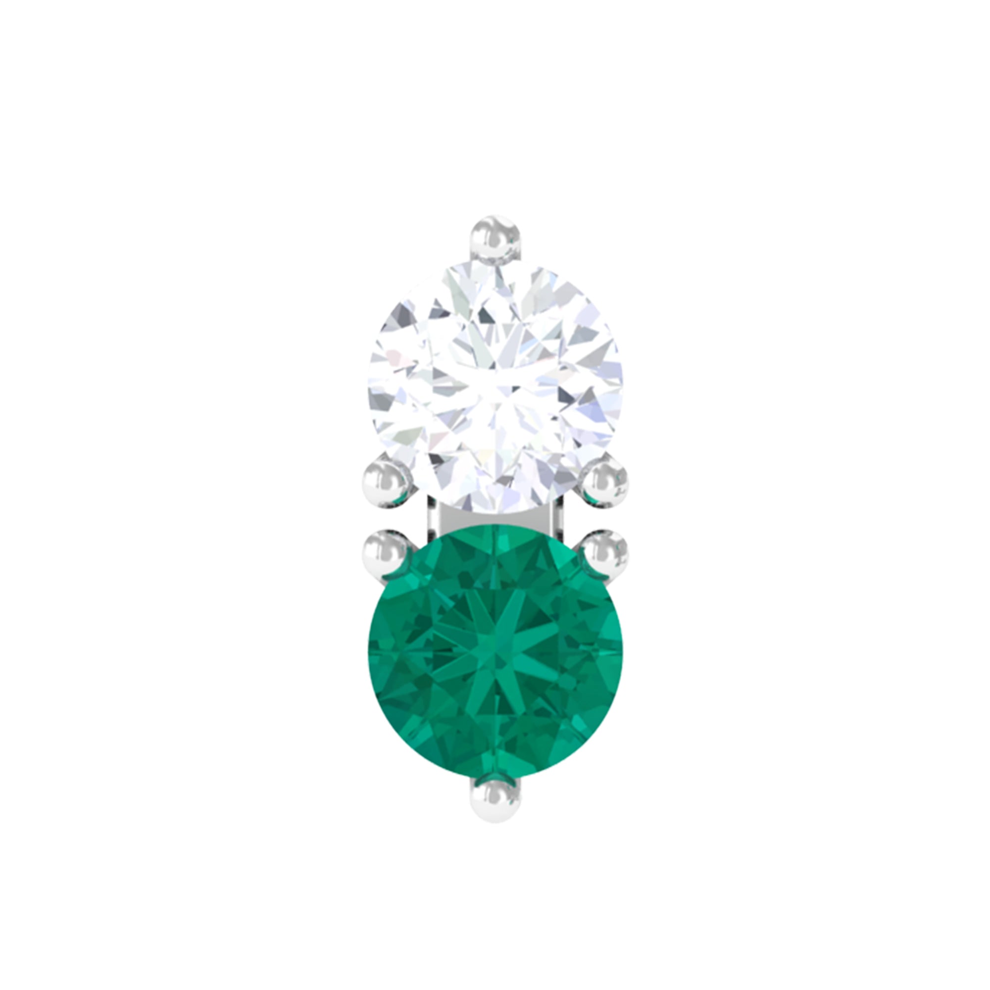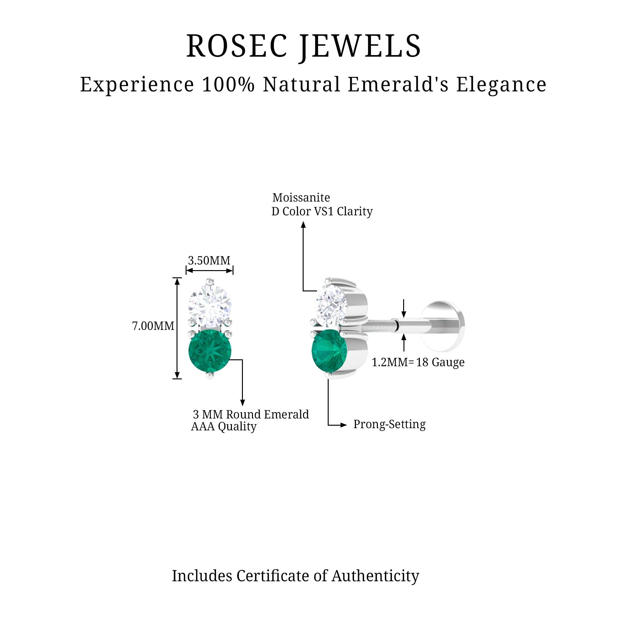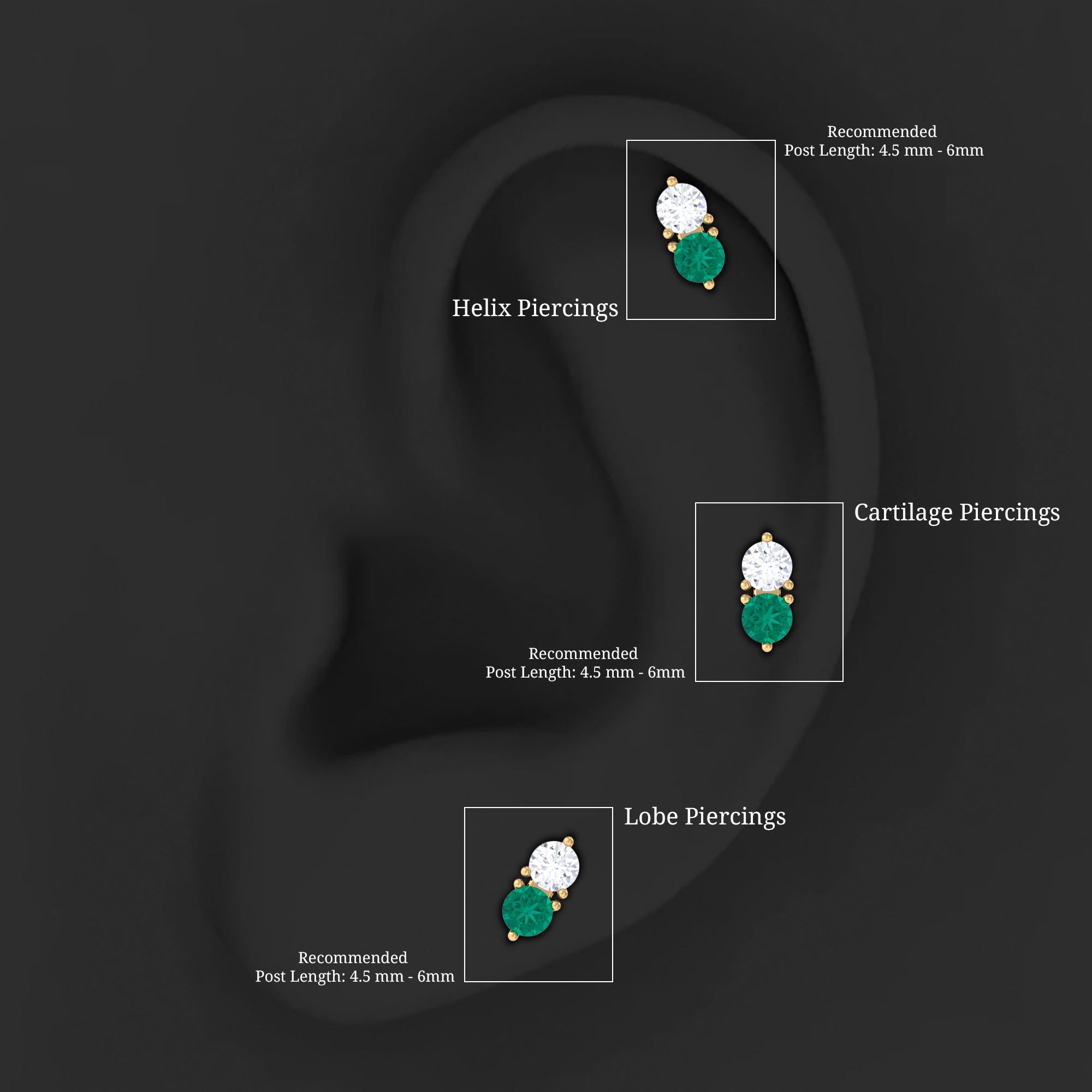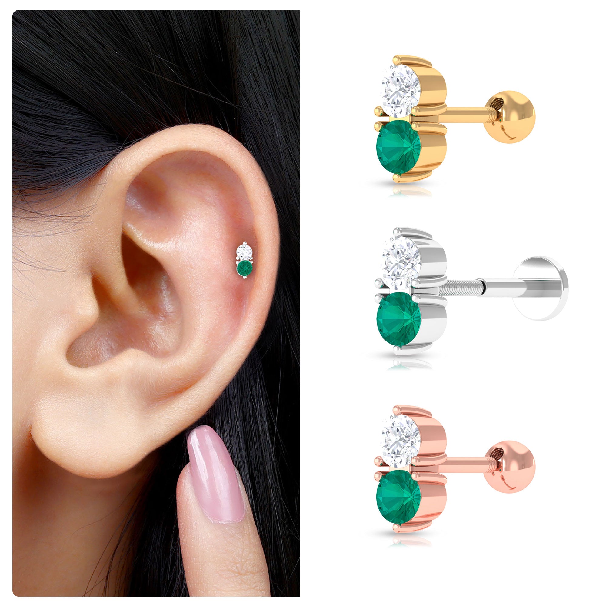 Dainty Emerald and Moissanite Two Stone Tragus Earring