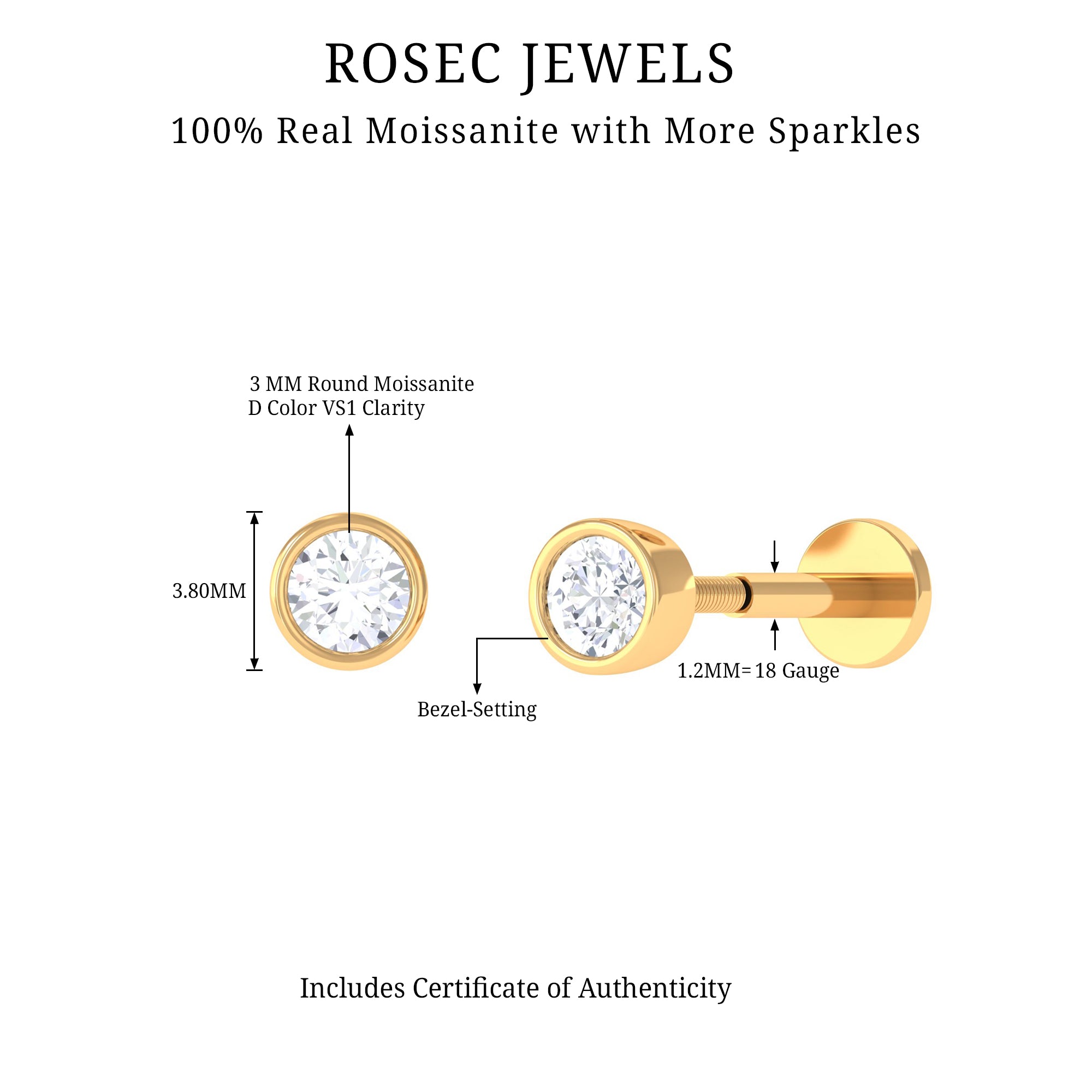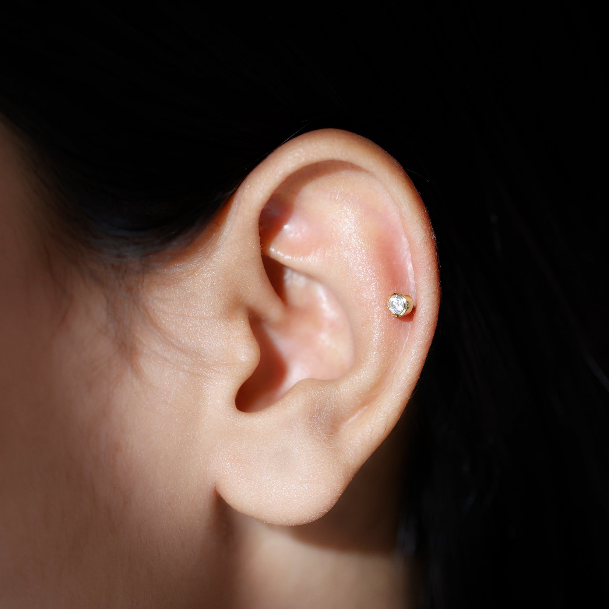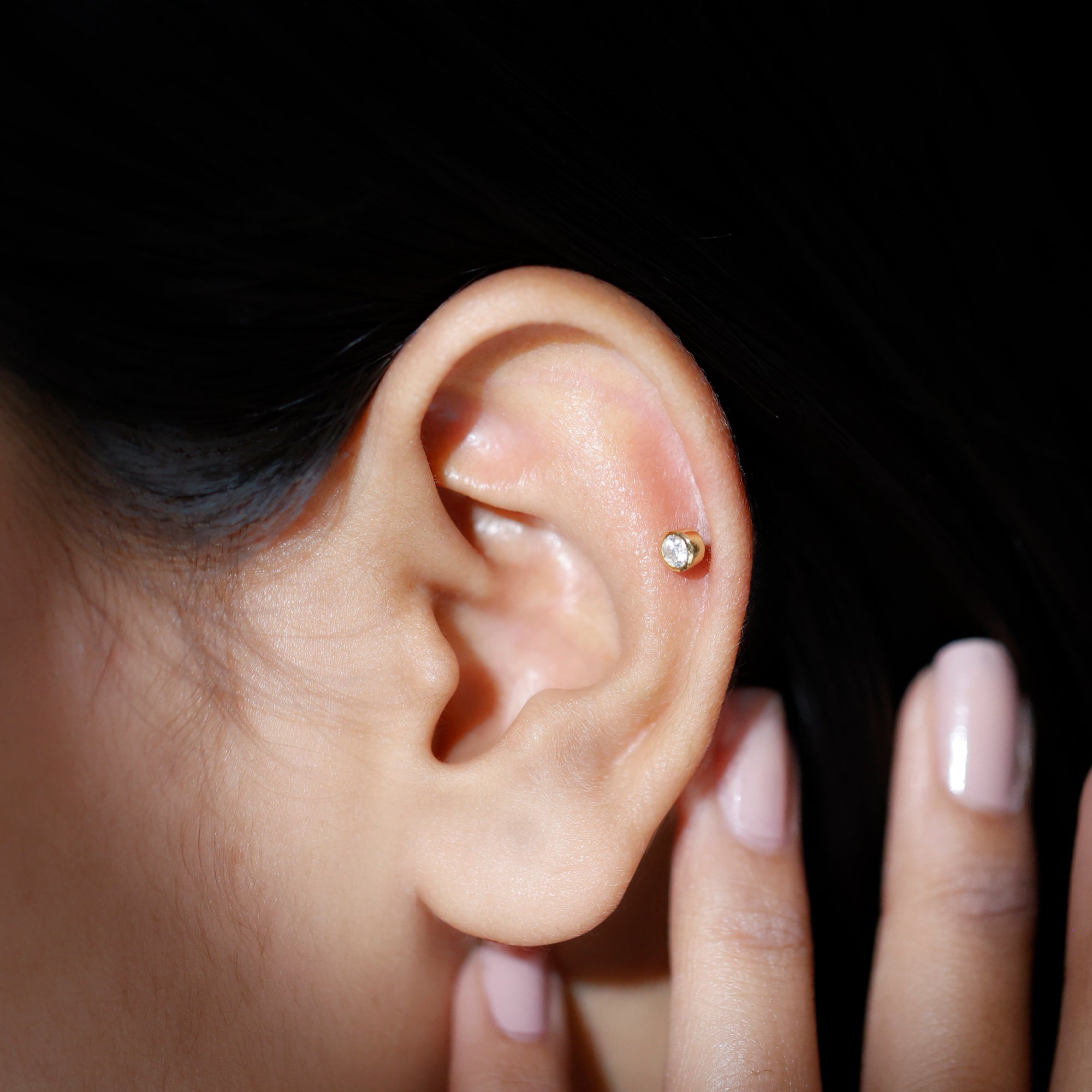 This Moissanite Cartilage Earring features a dazzling Round Cut Moissanite set in Bezel Setting. It can be worn on multiple piercings like Helix, Cartilage, Tragus, Conch, or Upper Lobe Piercing. Whether youre dressing up or keeping it casual, our Piercing Earring is the perfect accessory to enhance your look.