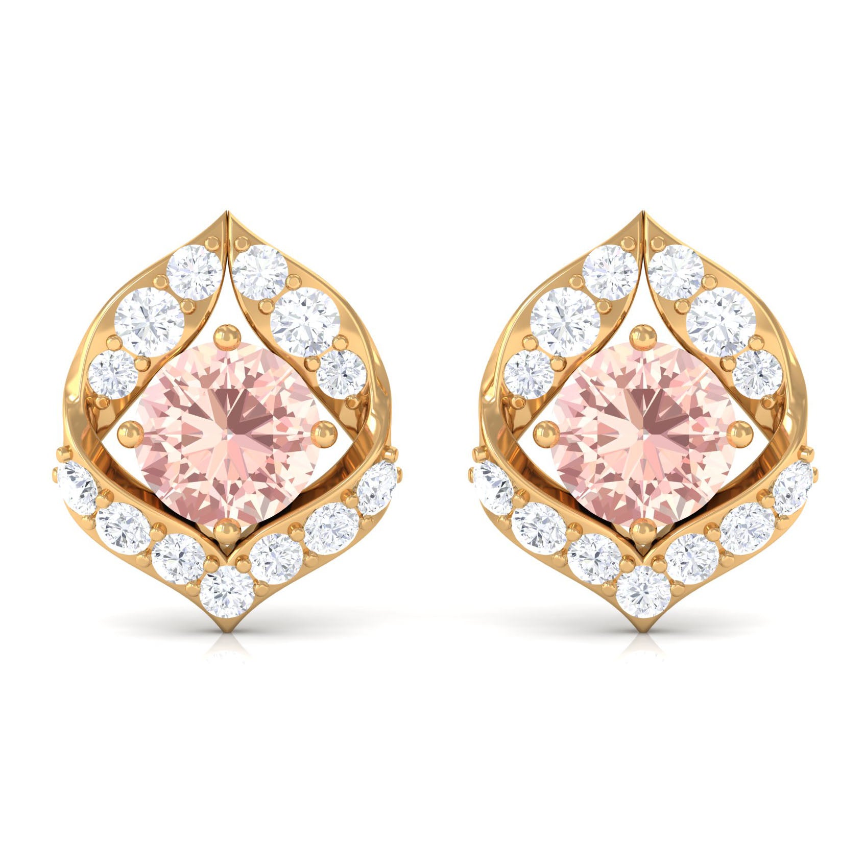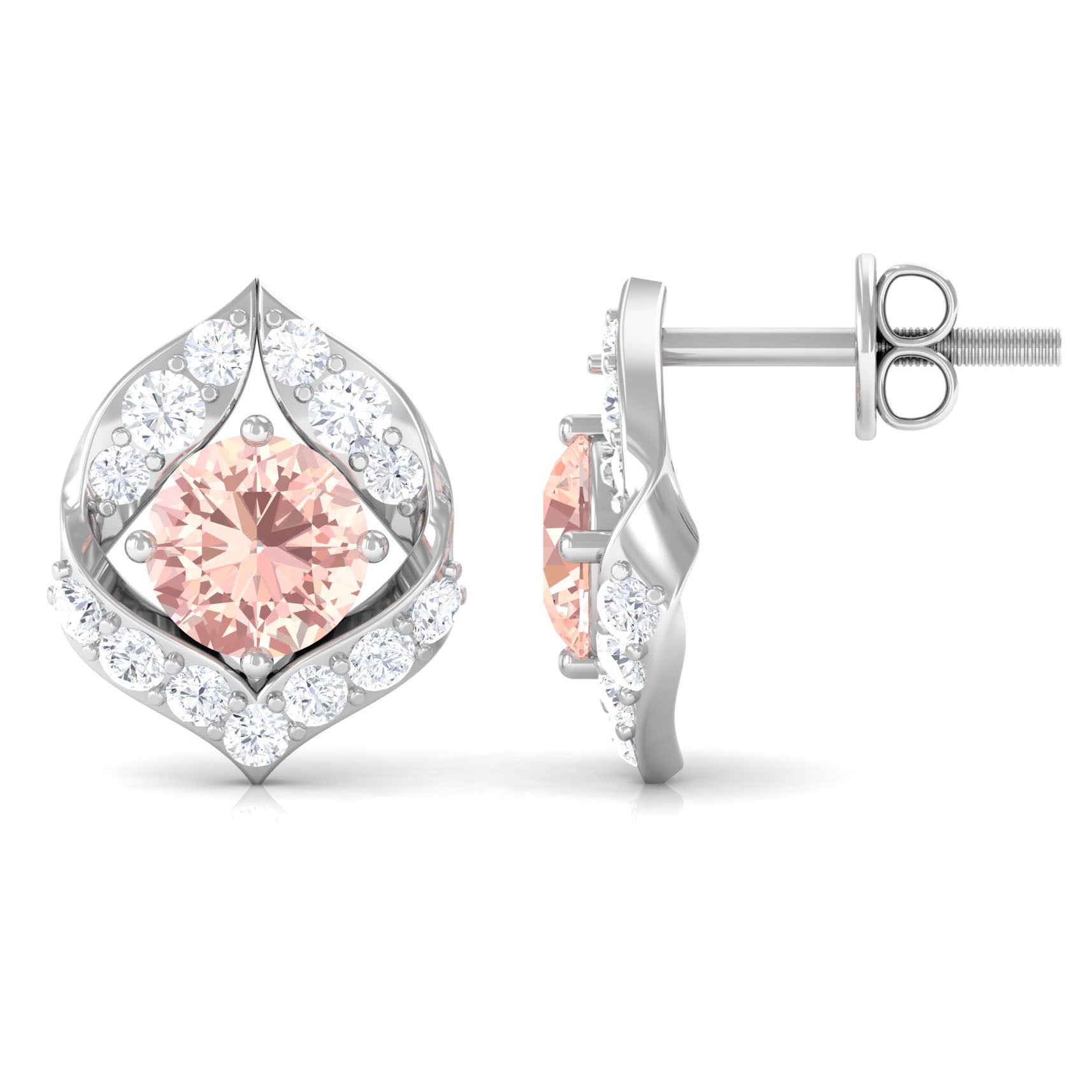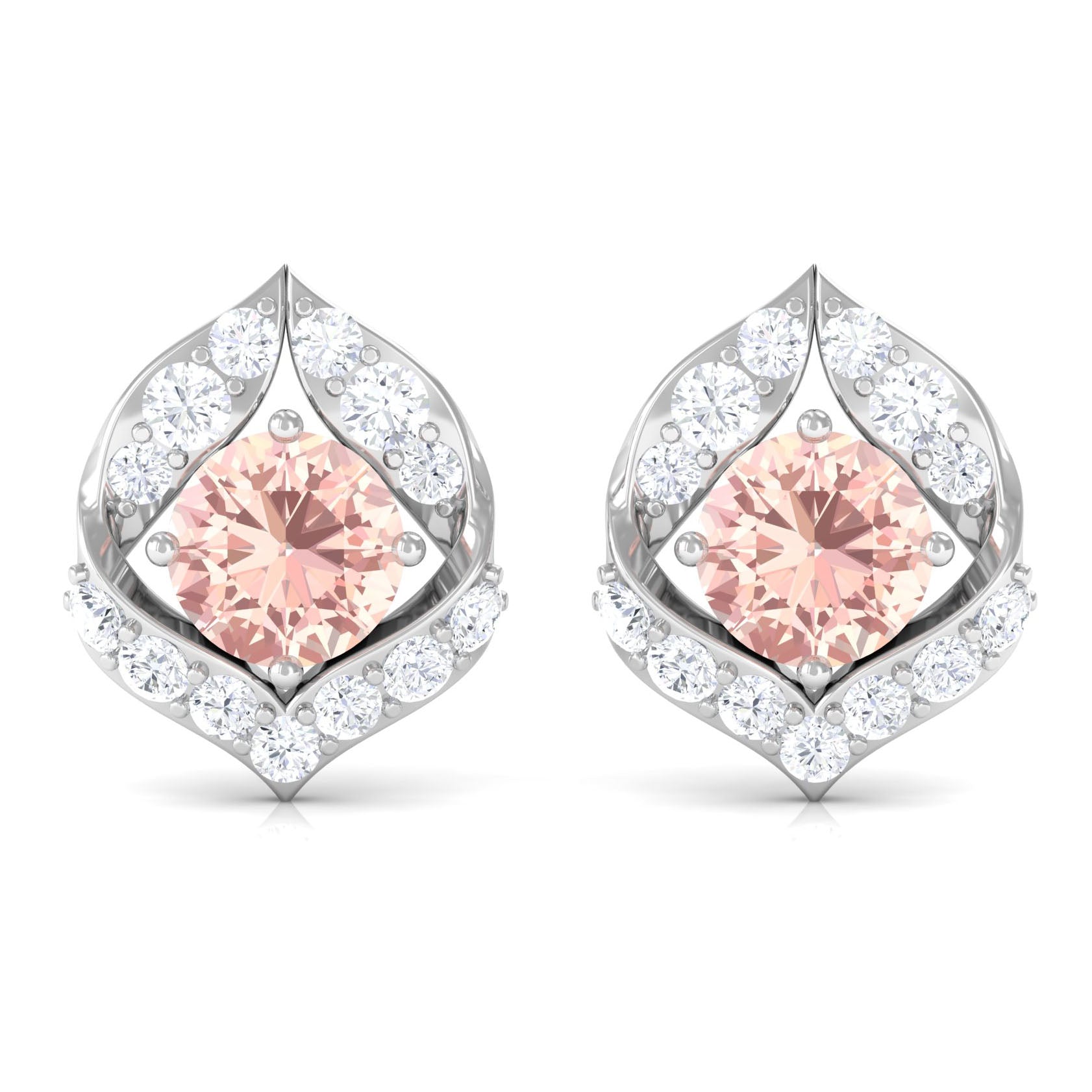 Dainty Morganite Petal Stud Earrings with Diamond