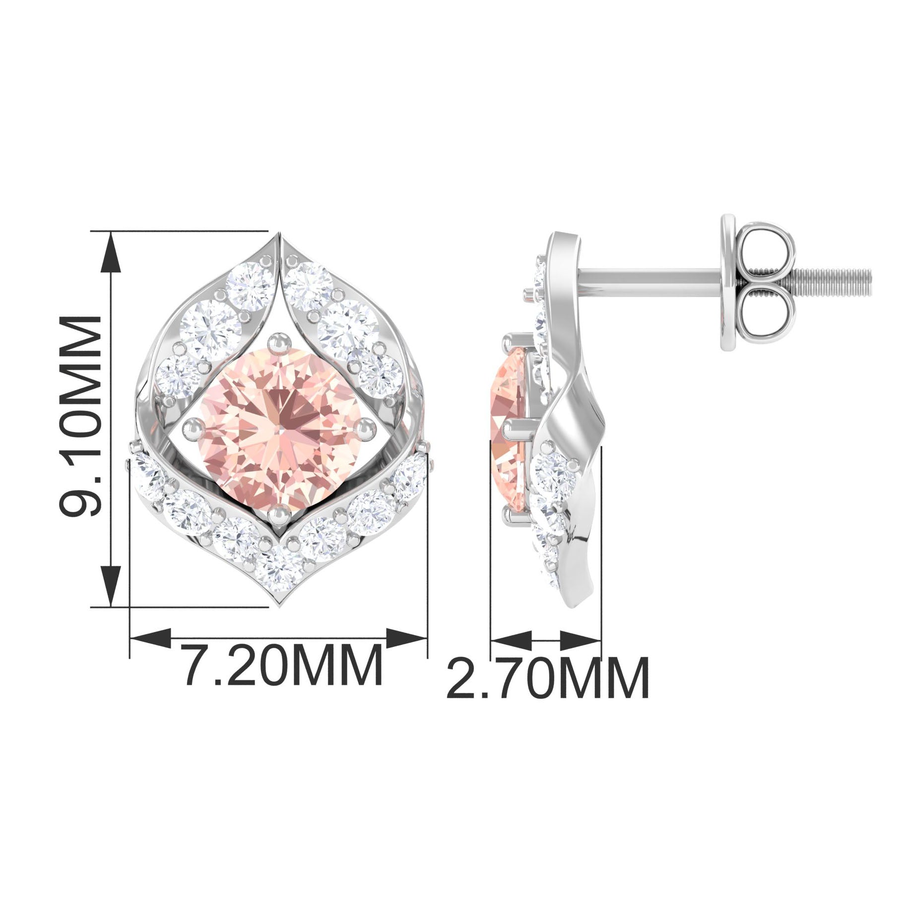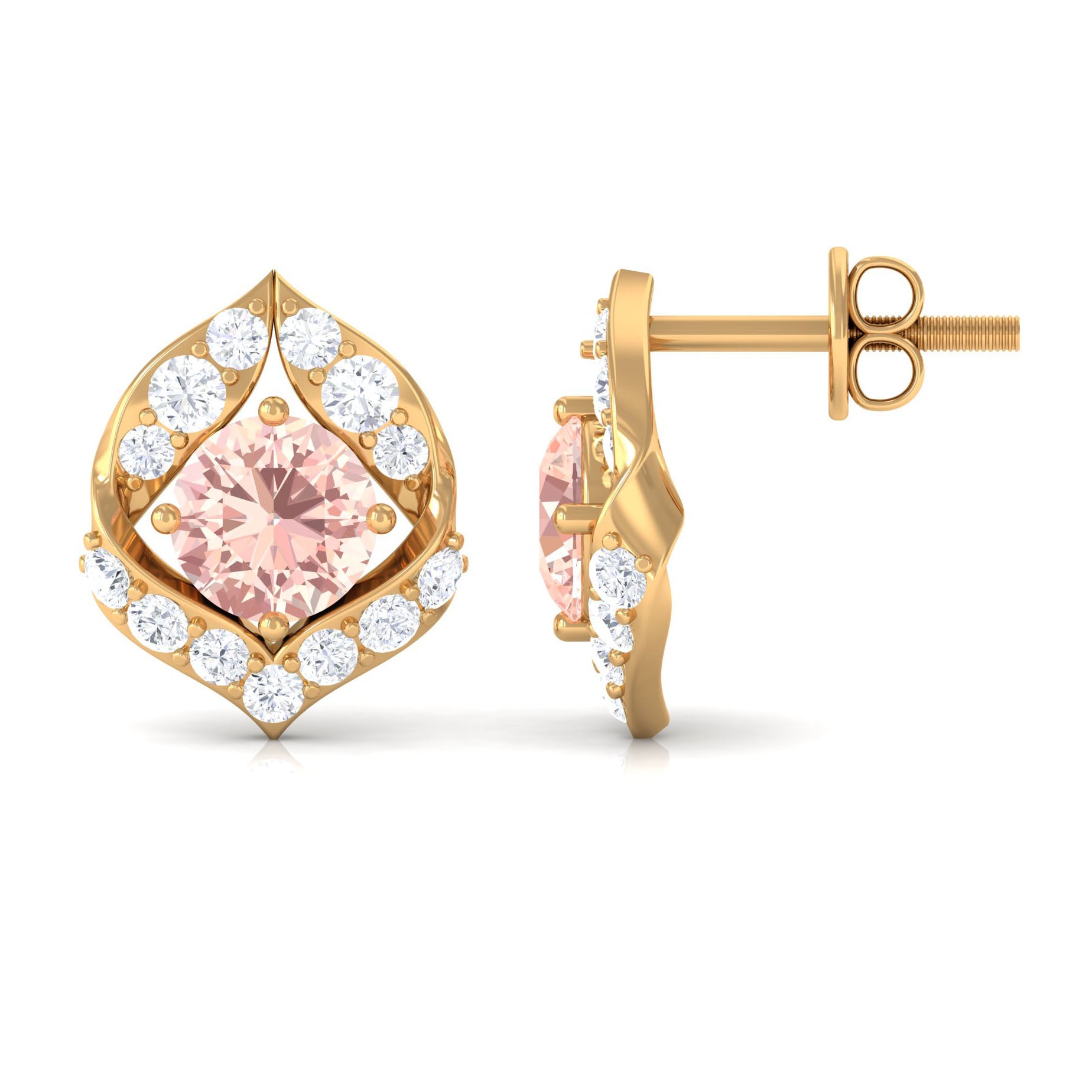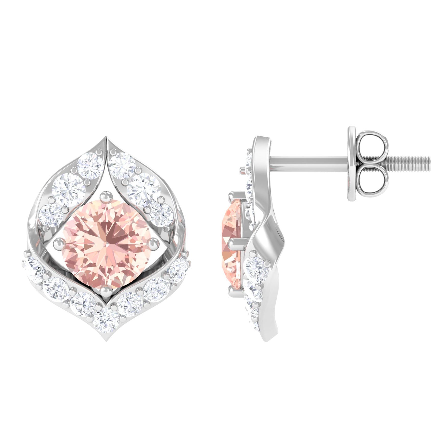 Dainty Morganite Petal Stud Earrings with Diamond