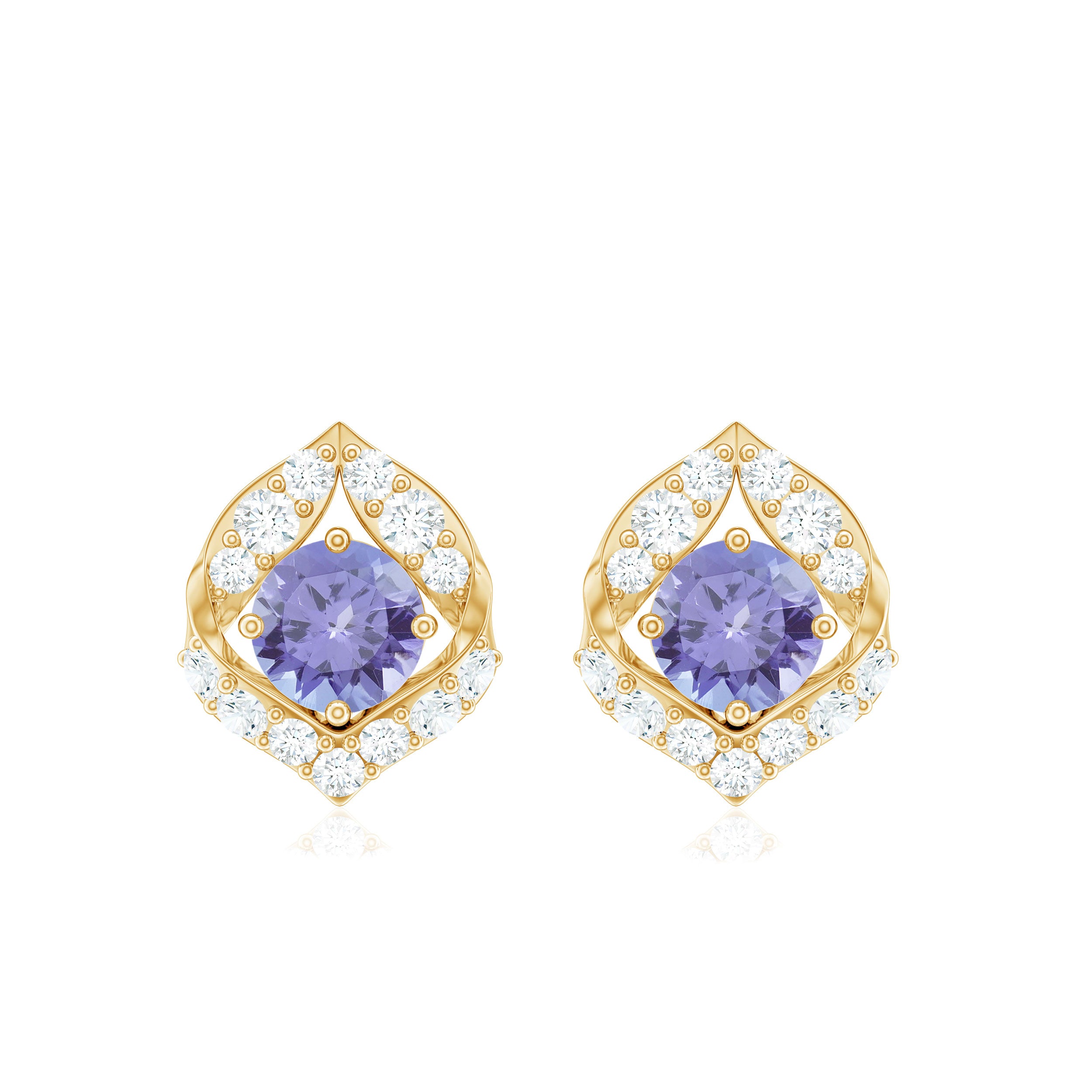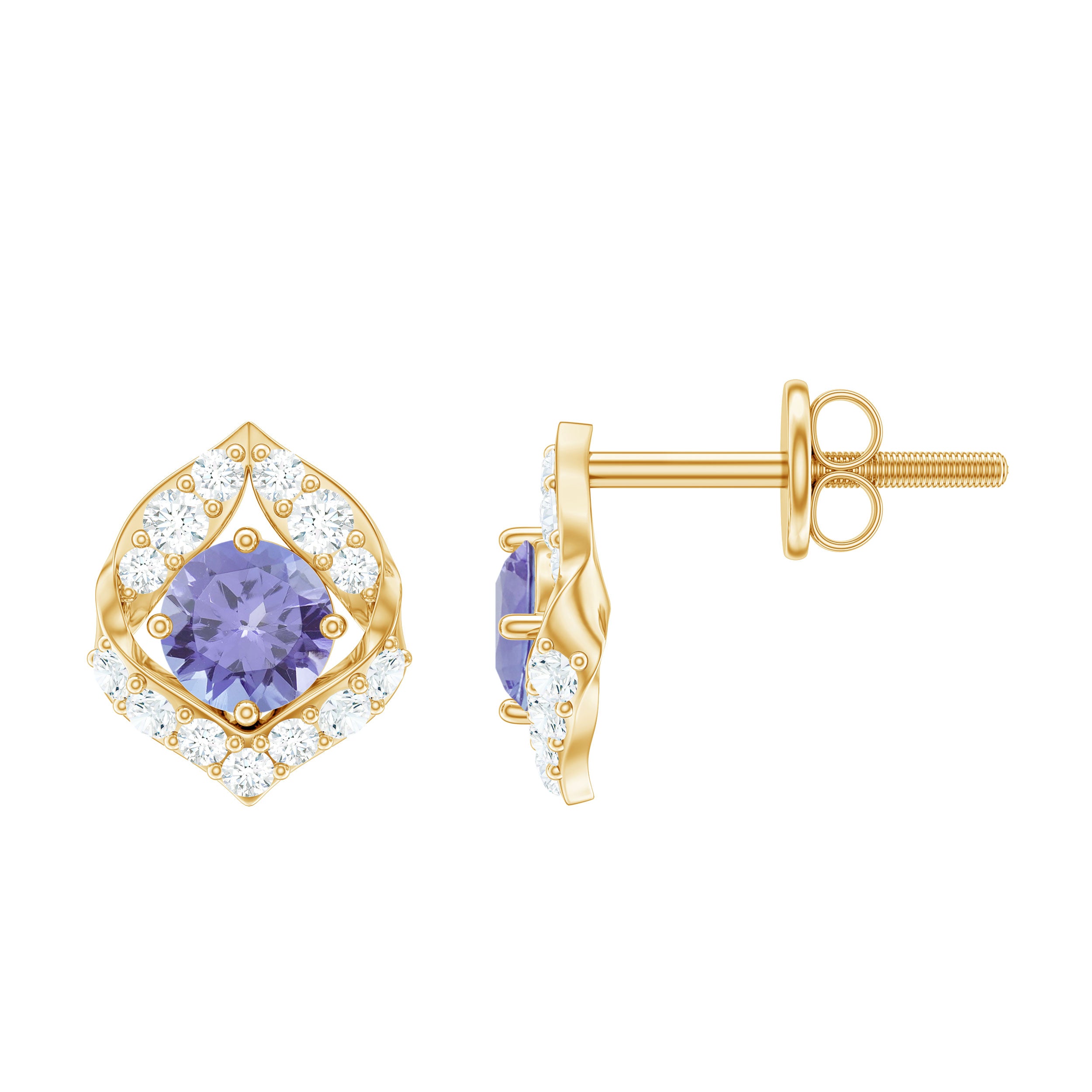 Dainty Tanzanite and Diamond Petal Stud Earrings