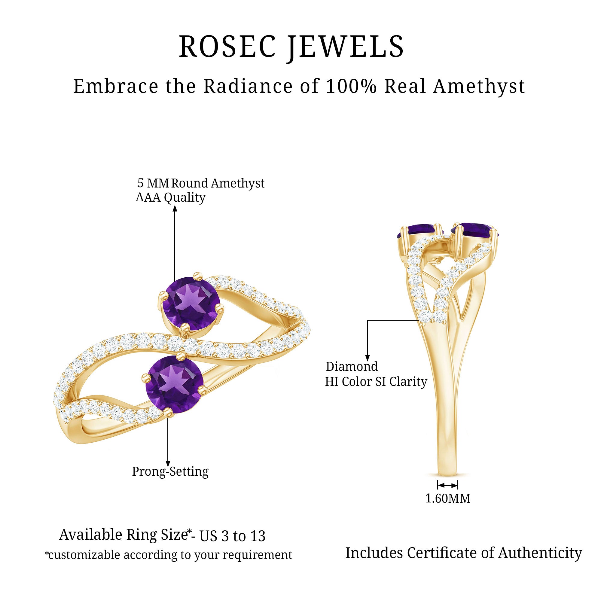Radiate glamour with this Infinity Cocktail Ring, showcasing two Amethyst gemstones and Diamond gemstones. A symbol of eternal elegance and style.