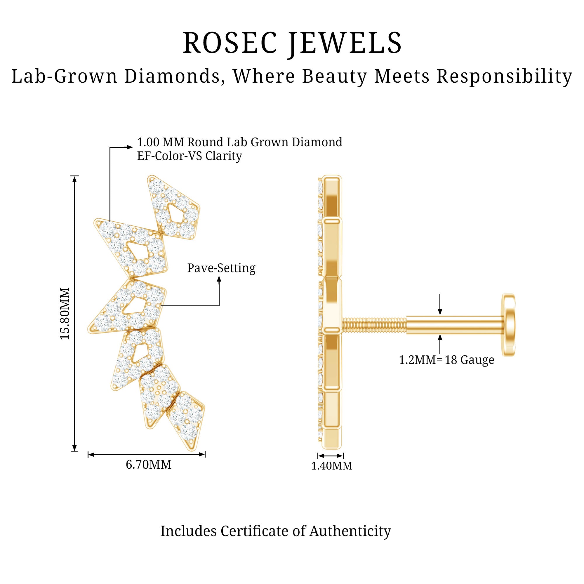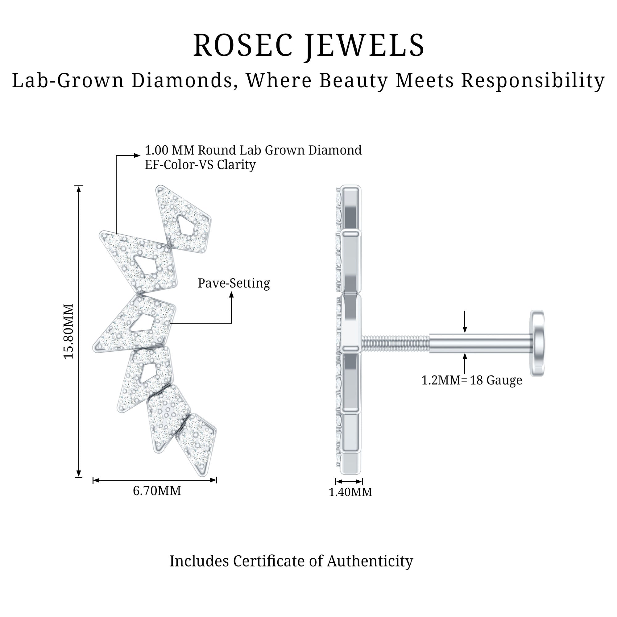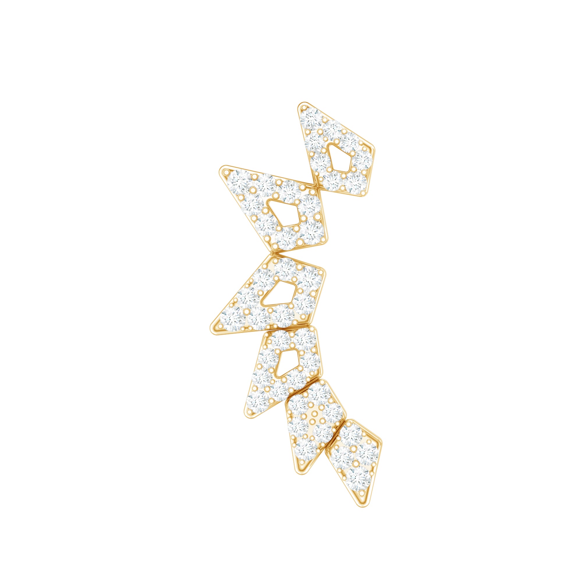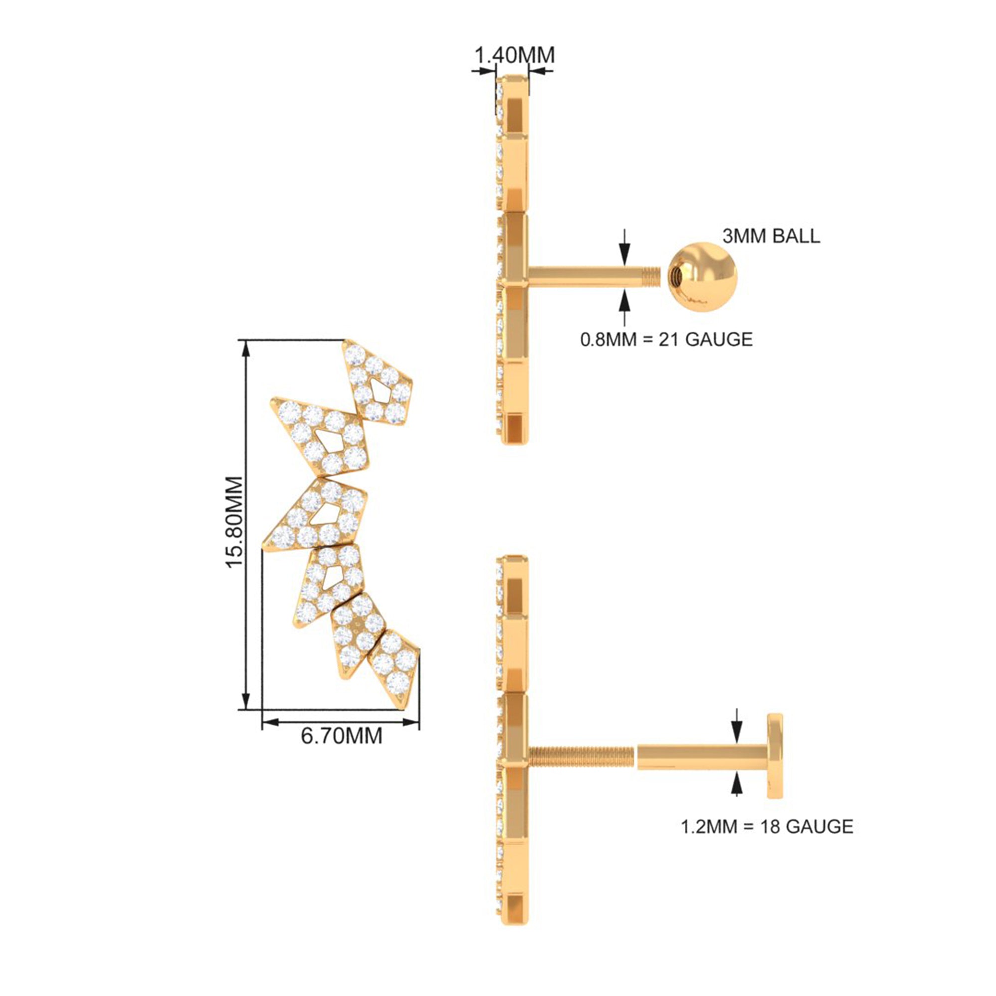 As you stroll around the town wearing this exquisite Diamond Ear Crawler Earring, you will leave everyone mesmerized. Featuring a curved design with sparkling Round Shape Diamonds secured by Pave Setting studded on the unique design, the Crawler Earring makes a style statement. You can style this Diamond Earring on your Helix, Cartilage, or Upper Lobe Piercing as it comes with a Flat Back Closure providing it a comfortable fit. Look chic and classy for every occasion with this charming Body Jewelry for Women. Whether you are wearing a party outfit or a casual one, this Unique Crawler Earring will make you look phenomenal every day.