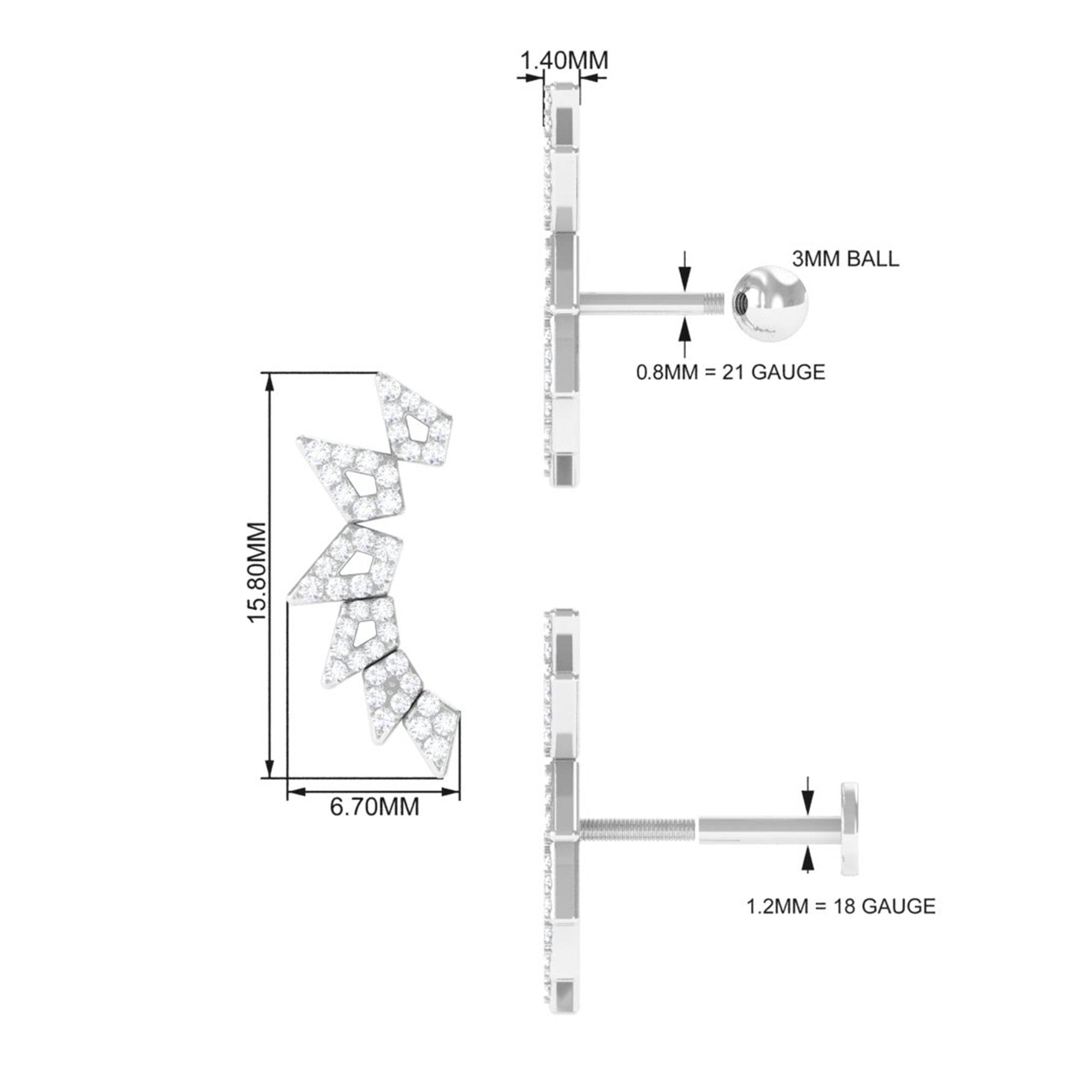 Designer Diamond Ear Crawler Earring for Helix Piercing