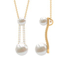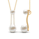 Treat yourself with this alluring Dangle Pendant Necklace, showcasing Round Shape Freshwater Pearl secured in Bead Setting while dainty Round Shape Diamonds studded on a unique design. Style this Freshwater Pearl Pendant with your favorite attires and shine like a diva. You can present this Pearl Pendant Necklace to your best friend.