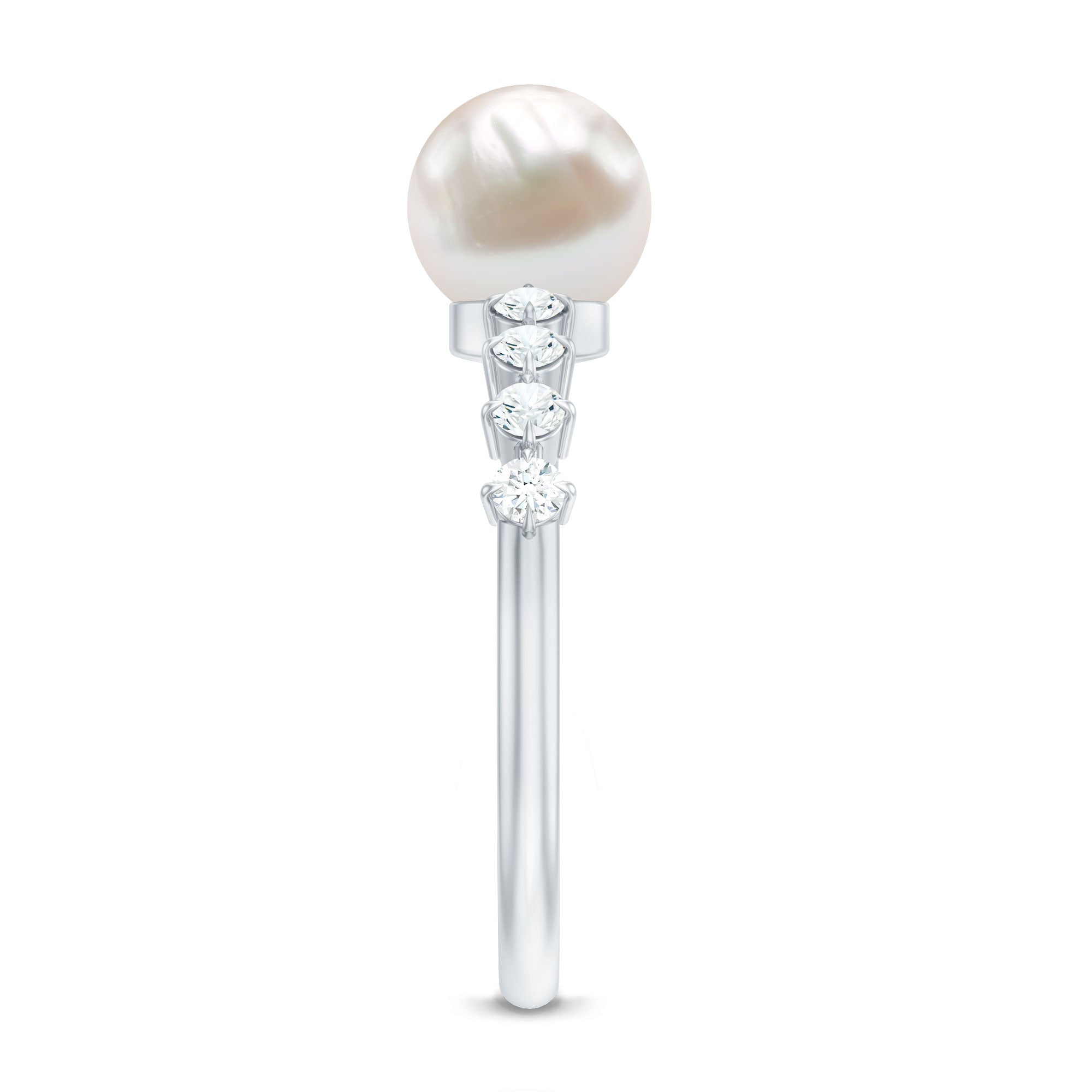 Uniquely designed Freshwater Pearl Engagement Ring features Round Diamond held in a claw setting on one side of the shank to give the ring a creative look. The Exclusiveness of this Pearl Ring will mesmerize your partner.