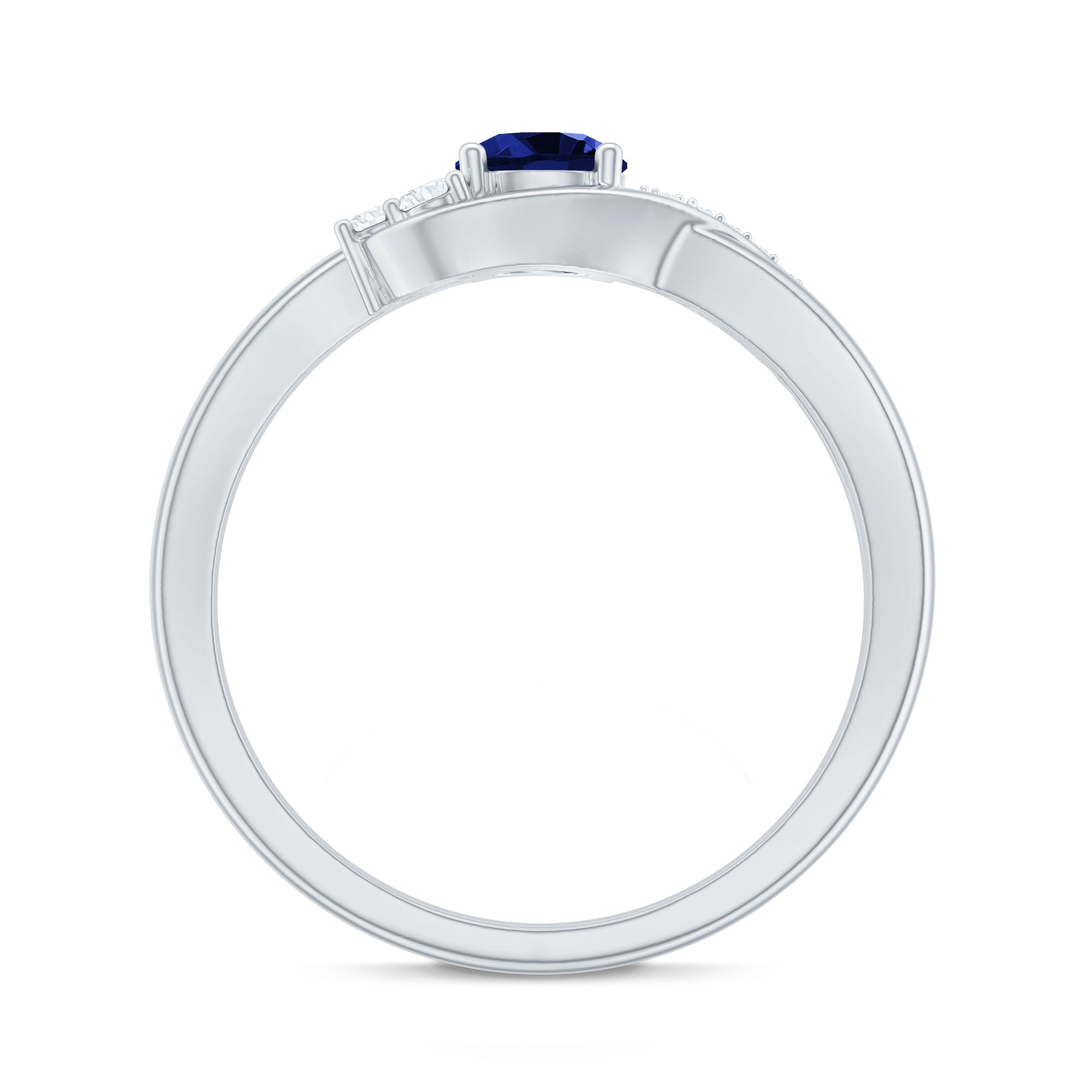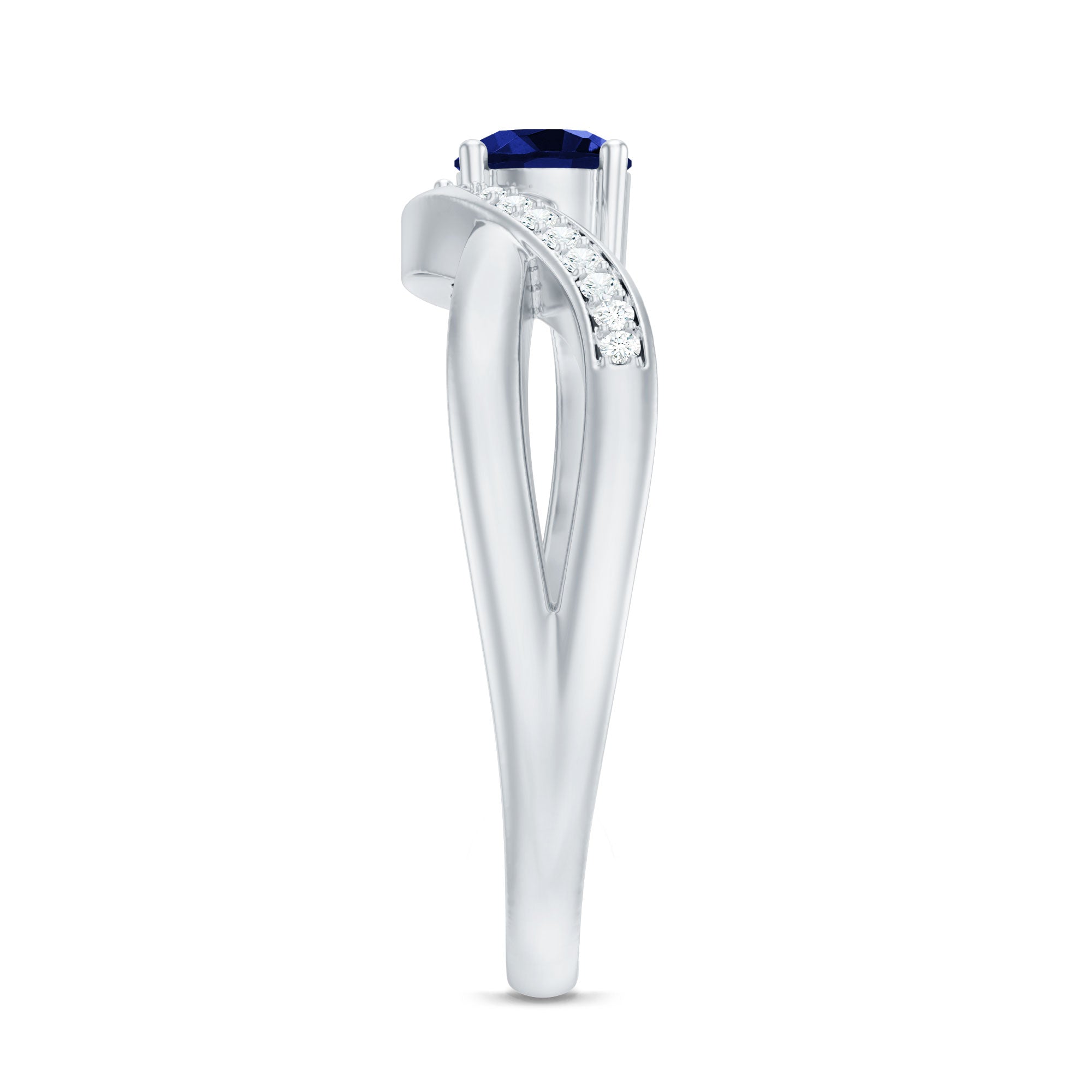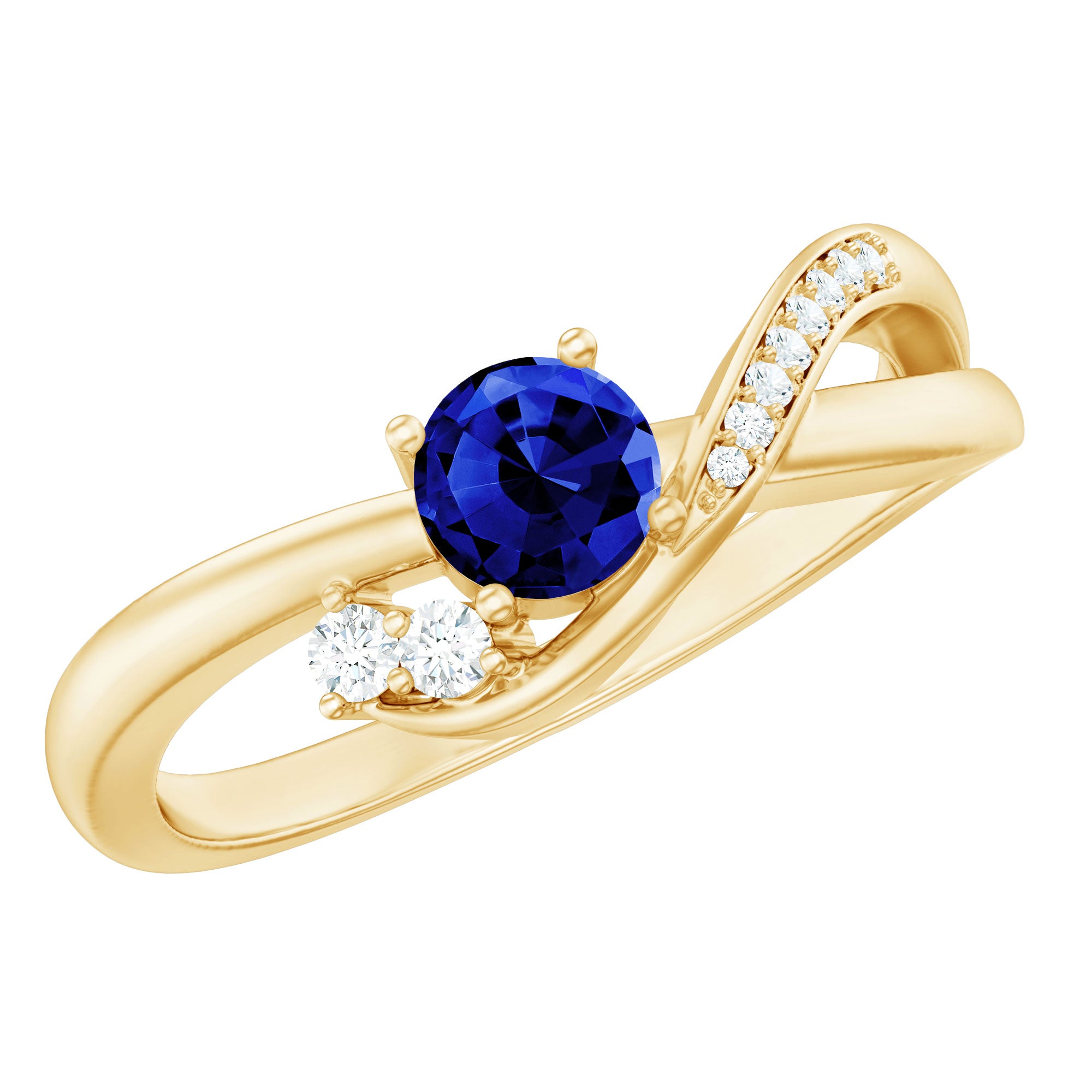 Declare your boundless love with our Minimal Sapphire Ring (Lab Grown Gemstone) as an emblem of enduring affection waiting to adorn your beloved finger. Every moment becomes a cherished memory when you gift her this Infinity Ring, no doubt about it. The Infinity design showcases a 5 mm Round Shape Synthetic Blue Sapphire at its heart, embraced by a brilliant series of Round Lab Grown Diamonds on one side and two slightly larger Diamonds on the other. Meticulously crafted, the designer placement of Aaaa Quality Sapphire and Ef-Vs quality Diamond on this Promise Ring for her ensures an astonishing radiance and spark. At Rosec Jewels, we specialize in crafting extraordinary designer jewelry, featuring the brilliance of Lab Created Gemstones. Order Now to make it yours.