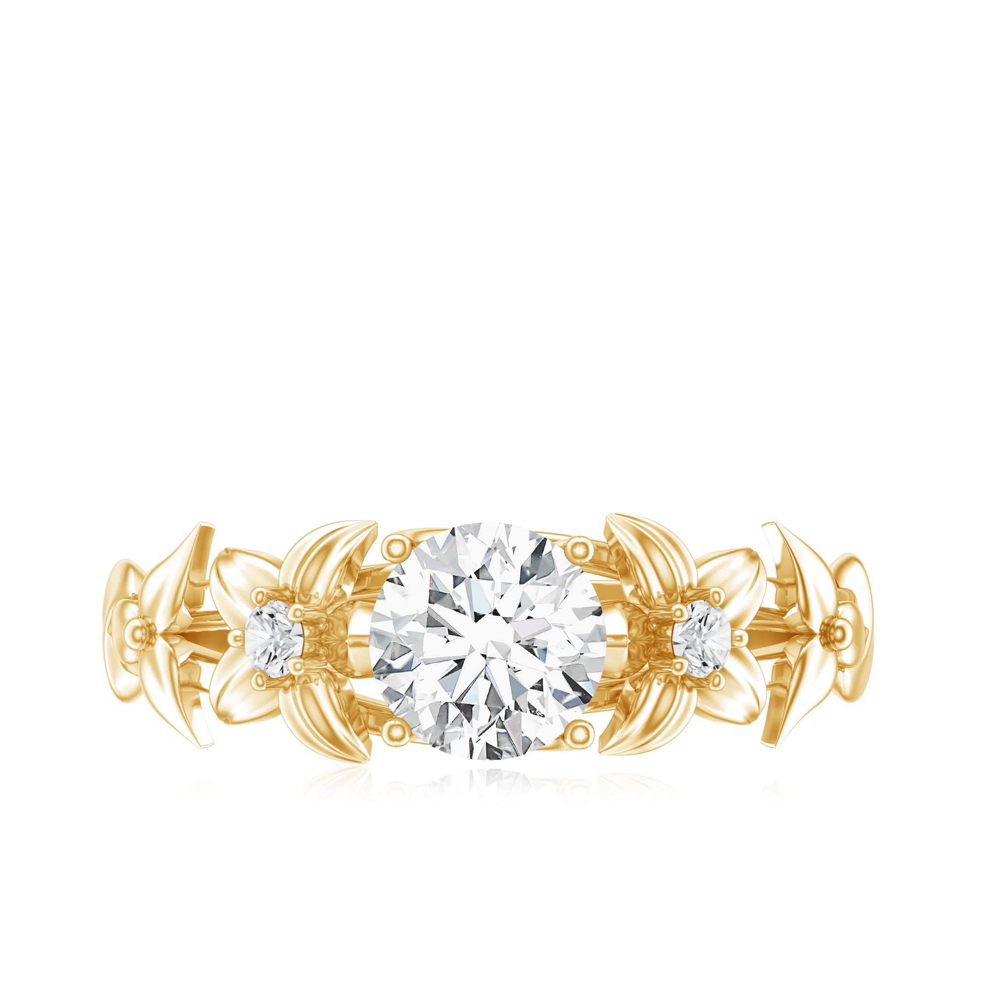 This Moissanite Engagement Ring offers a daring take on romance, ideal for someone who desires their ring to embody personality, passion, and an abundance of sparkle. At its heart lies a stunning 6 MM round Moissanite, reflecting light with every movement like a star caught in a twinkle. Surrounding the central stone are intricate floral designs embellished with petite stones that contribute a gentle shimmer, crafting a whimsical, nature-inspired aesthetic that mirrors your unique love story. The floral motifs lend a soft, feminine essence to the Nature Inspired Engagement Ring, making it a perfect choice for those who value exquisite details and thoughtful design. Wearing this Moissanite Flower Ring feels akin to having a miniature garden on your finger - one that never wilts, never fades, and consistently brings happiness. It is romantic, playful, and brimming with character, just like the individual who adorns it. This Flower Engagement Ring is not meant for the timid. It’s designed for dreamers, free spirits, and those who find beauty in every aspect of life, wishing for their ring to narrate a tale as distinctive as they are. Whether youre proposing or simply indulging yourself, it serves as a sparkling reminder that love, much like nature, always discovers a way to flourish.