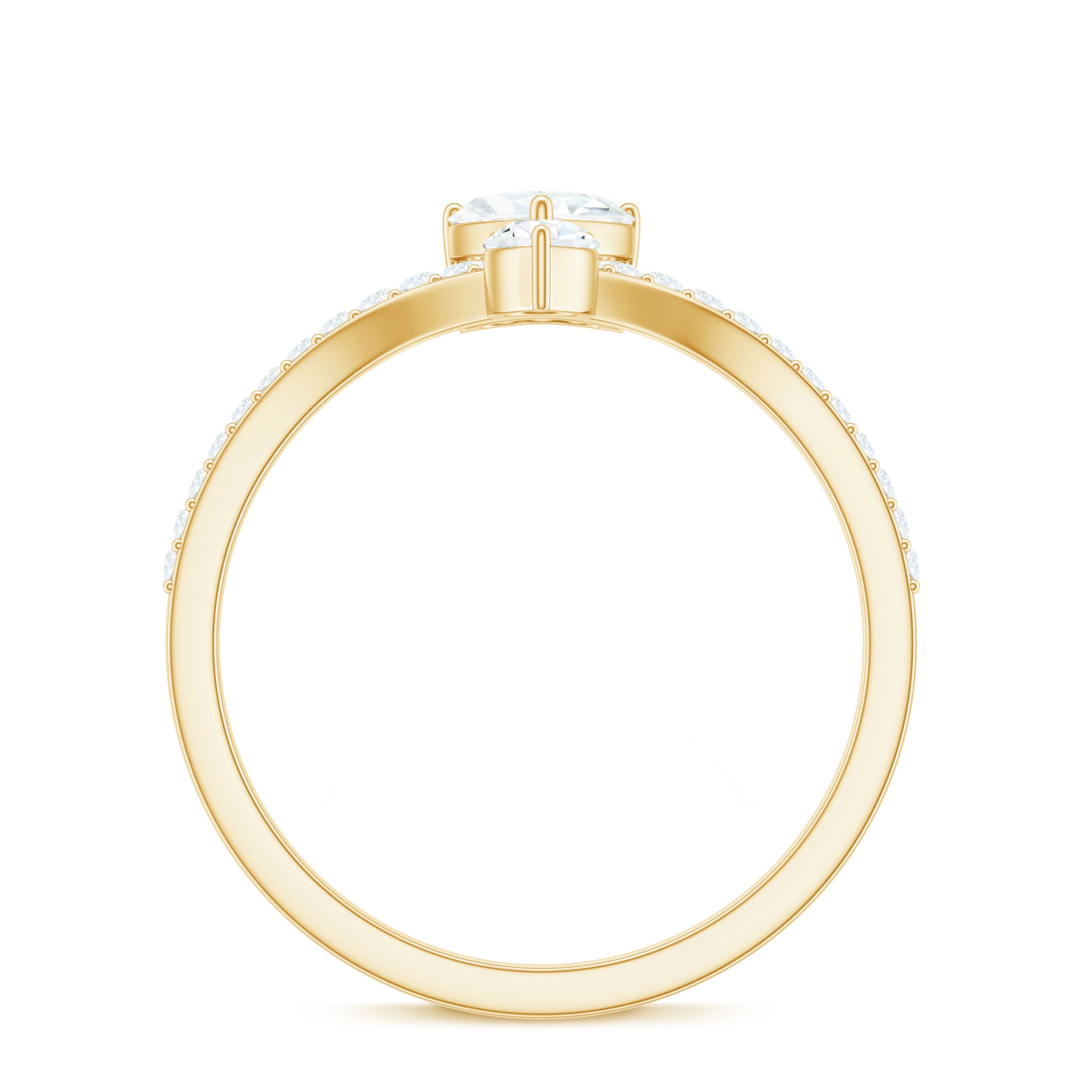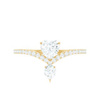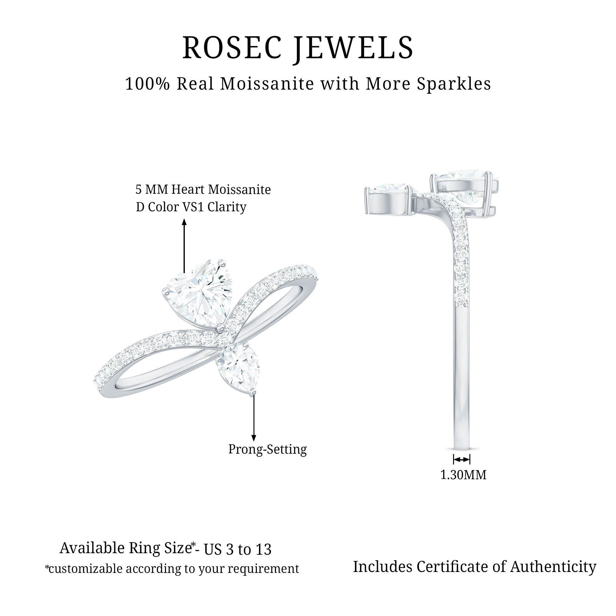 This Designer Engagement Ring is sure to captivate anyone who sees it. At its center sits a stunning 5 MM heart shaped moissanite of D-VS1 quality, carefully set in a secure prong setting to show off its brilliant sparkle. The ring features a unique chevron style band, beautifully decorated with delicate round cut moissanite stones. At the top of the band sits a lovely pear shaped moissanite, adding an extra touch of shine and elegance. The blend of modern design with vintage inspired details gives this Heart Engagement Ring a graceful look that is perfect for both everyday wear and special occasions. More than just a piece of jewelry, this Moissanite Engagement Ring represents deep love and commitment. It is a timeless and gorgeous choice for starting your forever together. What makes this Unique Heart Ring truly special is its versatility. Whether you are searching for an engagement ring that stands out, a proposal ring to make the moment unforgettable, or a thoughtful gift to celebrate your love, this Moissanite Heart Ring fits every occasion perfectly. It is a meaningful, beautiful symbol of your unique love story, one you will treasure forever.