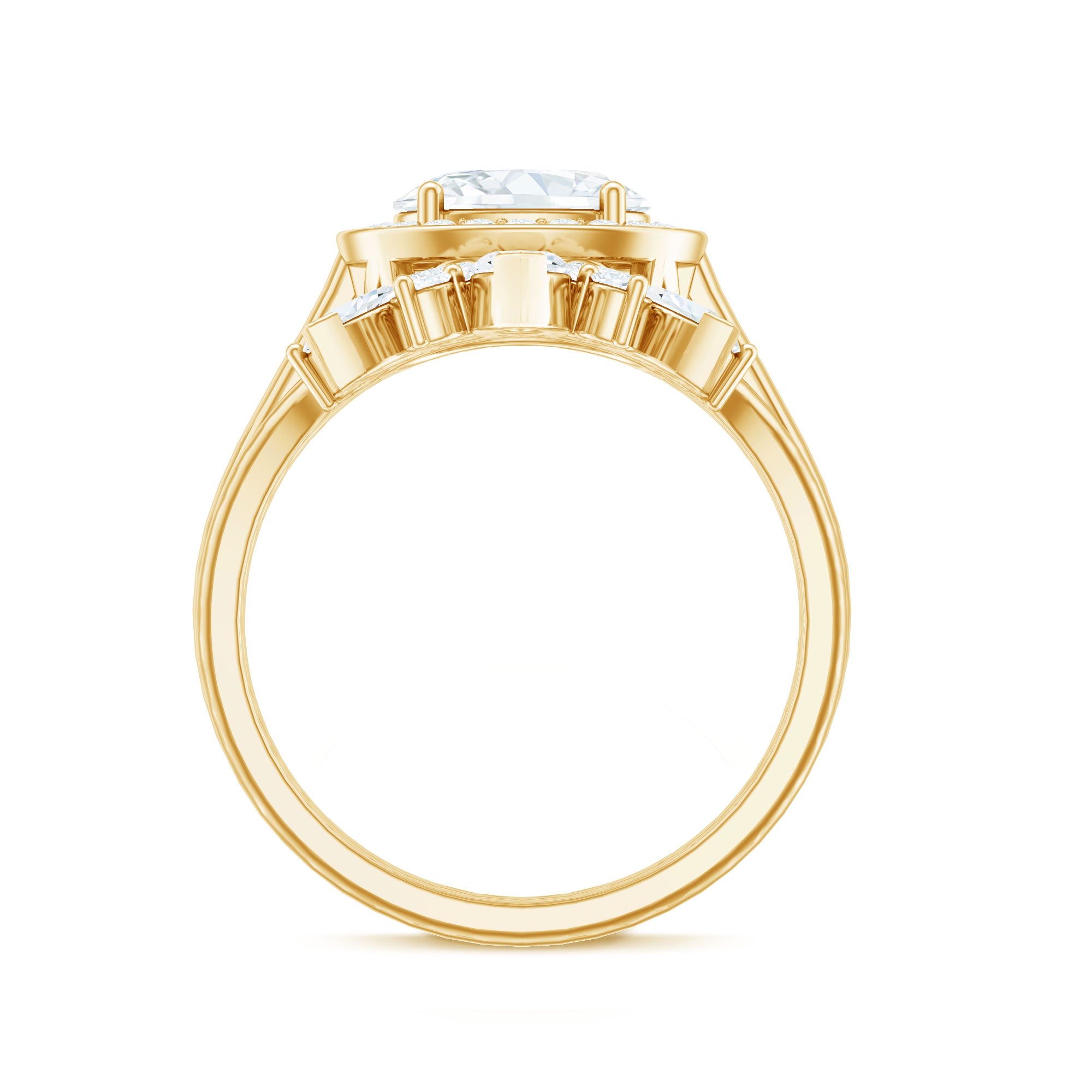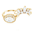 Designer Moissanite Oval Halo Wedding Ring Set with Certificate