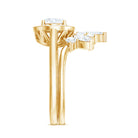 Start your forever with this Moissanite Engagement Ring Set that shines with meaning and beauty. This Oval Wedding Ring Set is made for those who love a mix of modern style and classic charm. At the center of the engagement ring is a stunning 6X8 MM oval shaped moissanite, placed in East West style for a unique and eye-catching look. It is surrounded by a sparkling halo of round moissanites, adding extra shine from every angle. All stones are of D-VS1 quality, offering top clarity and brilliance. The curved wedding band is carefully designed to fit alongside the engagement ring, creating a perfect set. It is decorated with a classic mix of marquise and round shaped moissanite stones, giving it an elegant touch. This Halo Bridal Ring Set is available in US sizes 3 to 13 and can be customized in your choice of metal types and purities from the available options. Simple and full of sparkle, this East West Wedding Set makes a meaningful gift or personal keepsake. It comes packed in a gift-ready jewelry box, making it easy to surprise your partner or celebrate your love.
