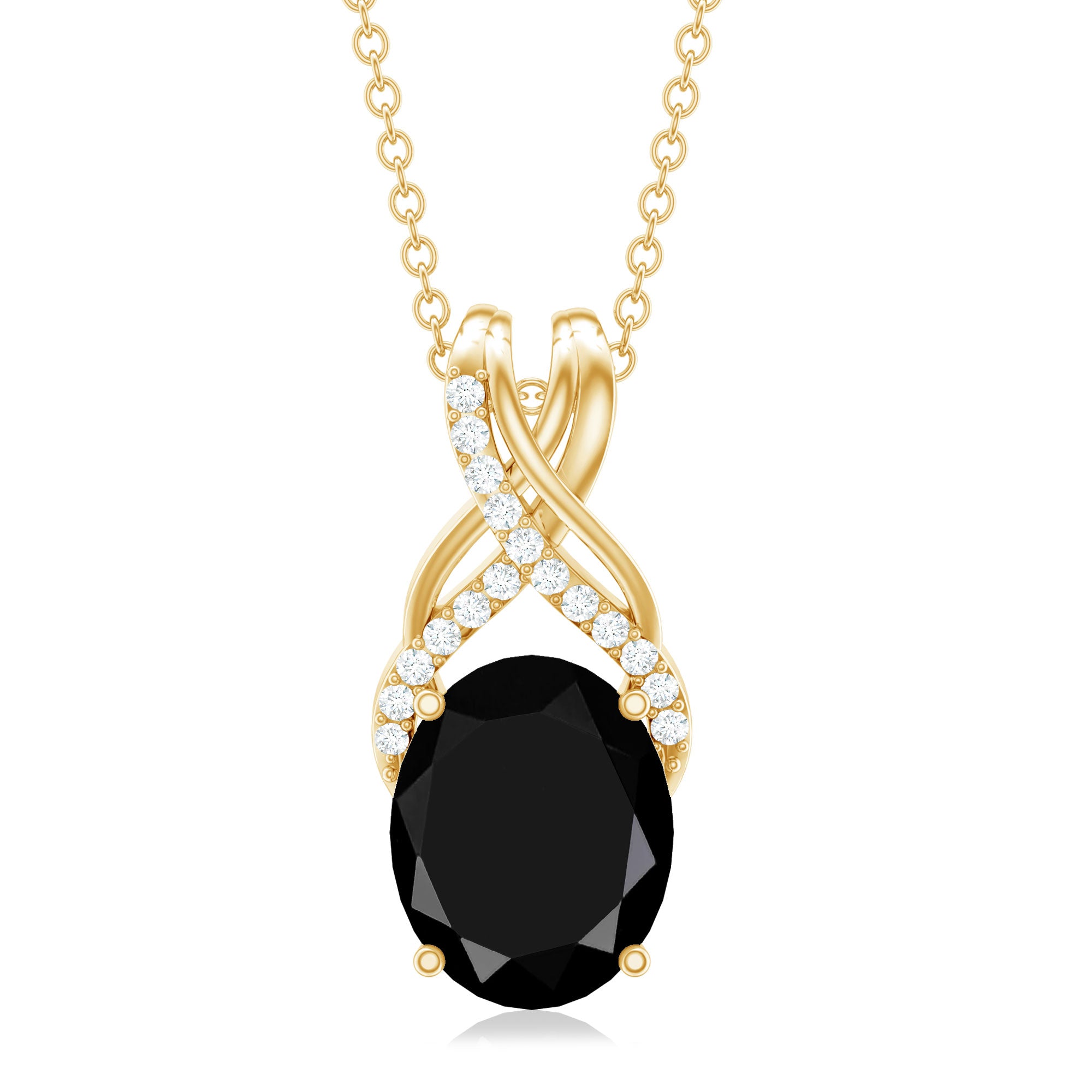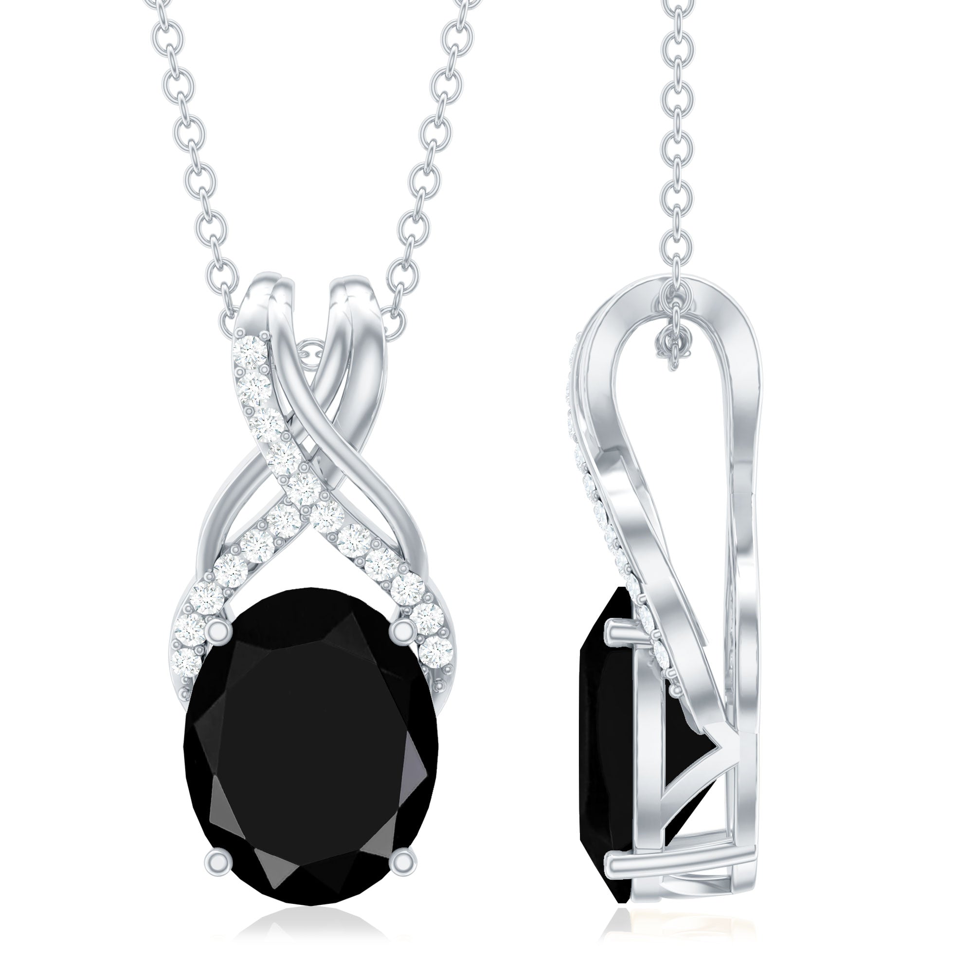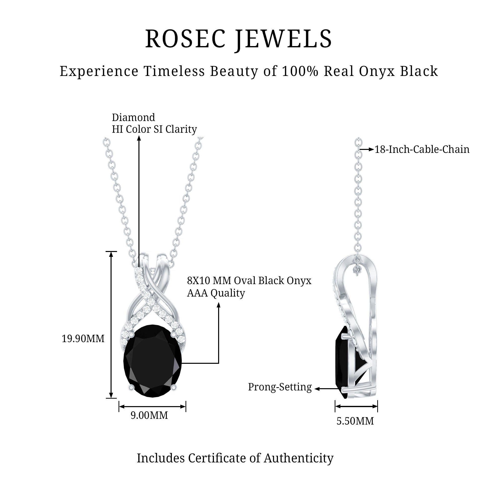 Introducing a one-of-a-kind Black Onyx Pendant Necklace that is both delicate and charming. The 8X10 MM Oval Cut Black Onyx takes center stage in a 4 Prong Setting, with a Twisted Bail adorned with Diamond on a Solitaire Pendant. This Designer Pendant is so beautiful that its likely to become a staple in your collection, one youll never want to take off.