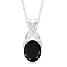 Designer Oval Black Onyx Solitaire Pendant with Diamond Twisted Bail