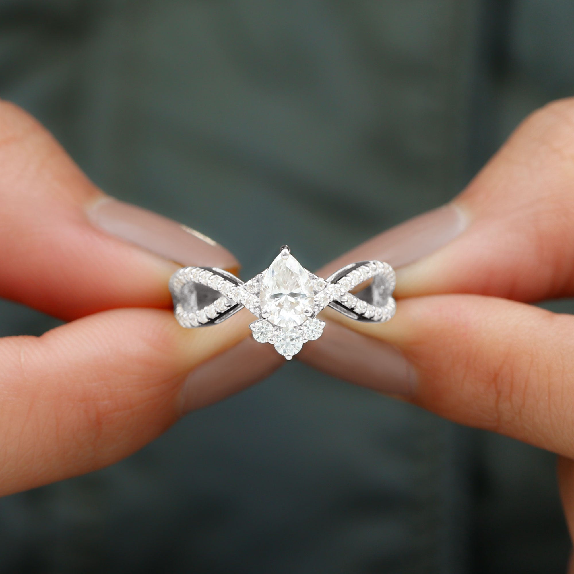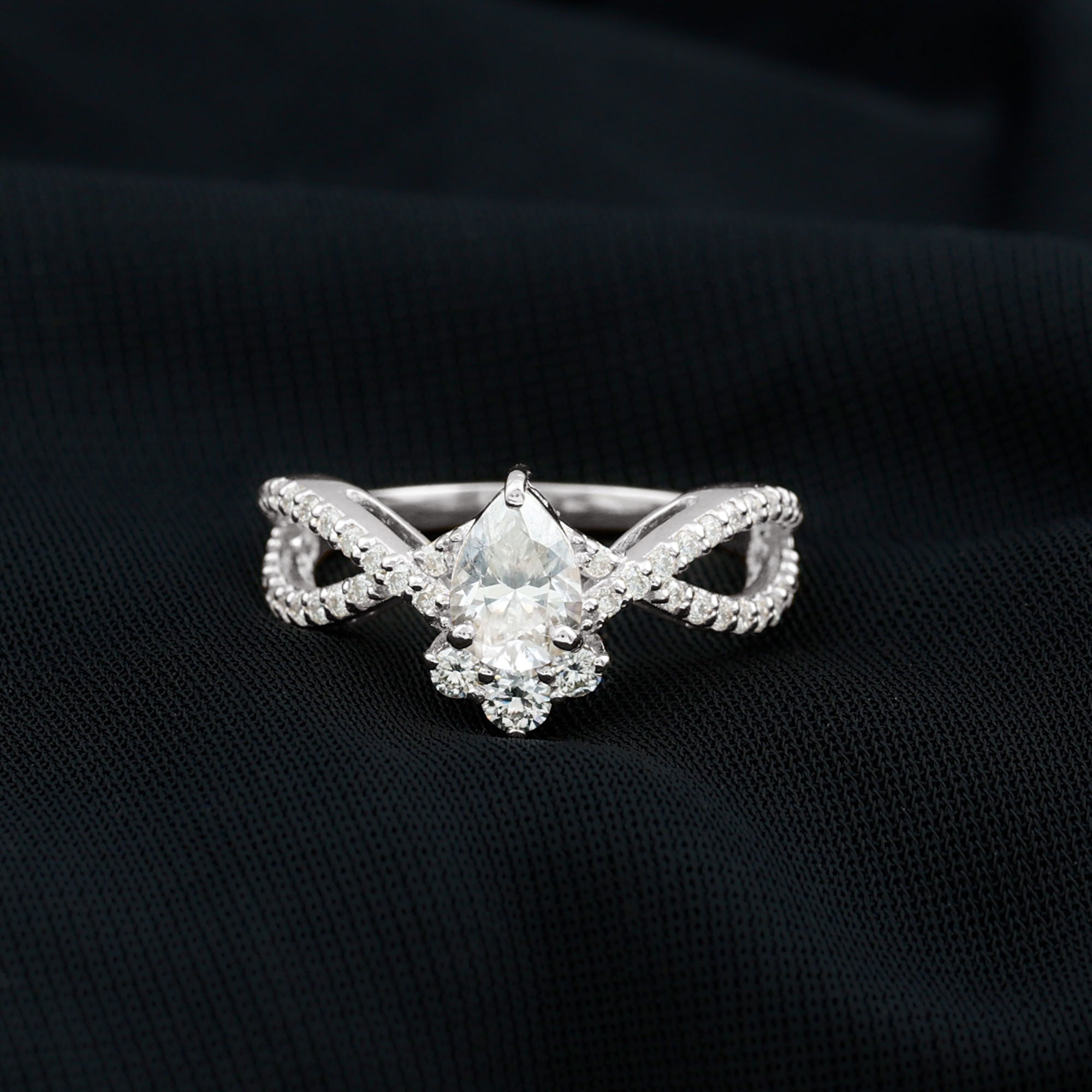 Designer Pear Shaped Moissanite Crossover Engagement Ring